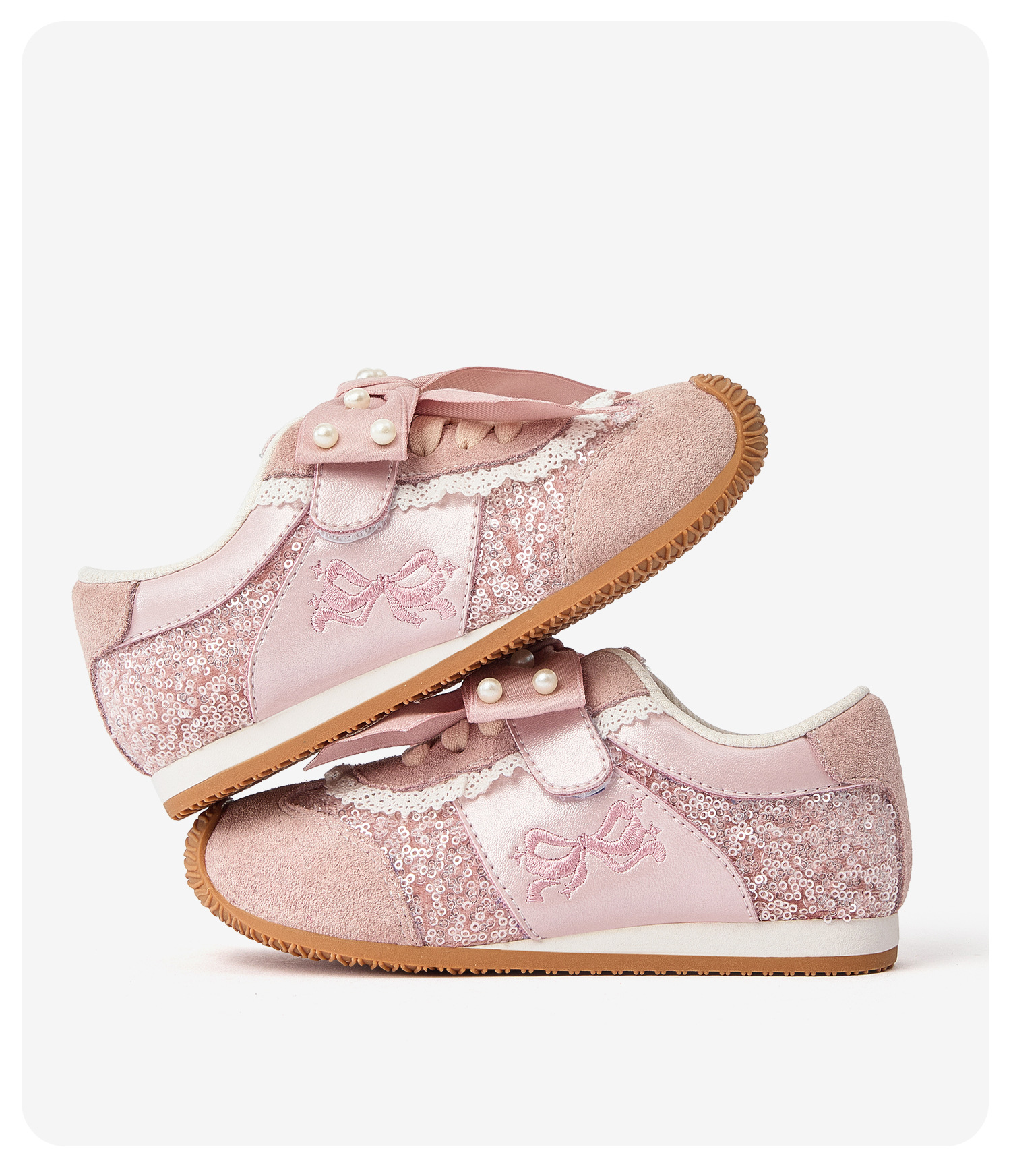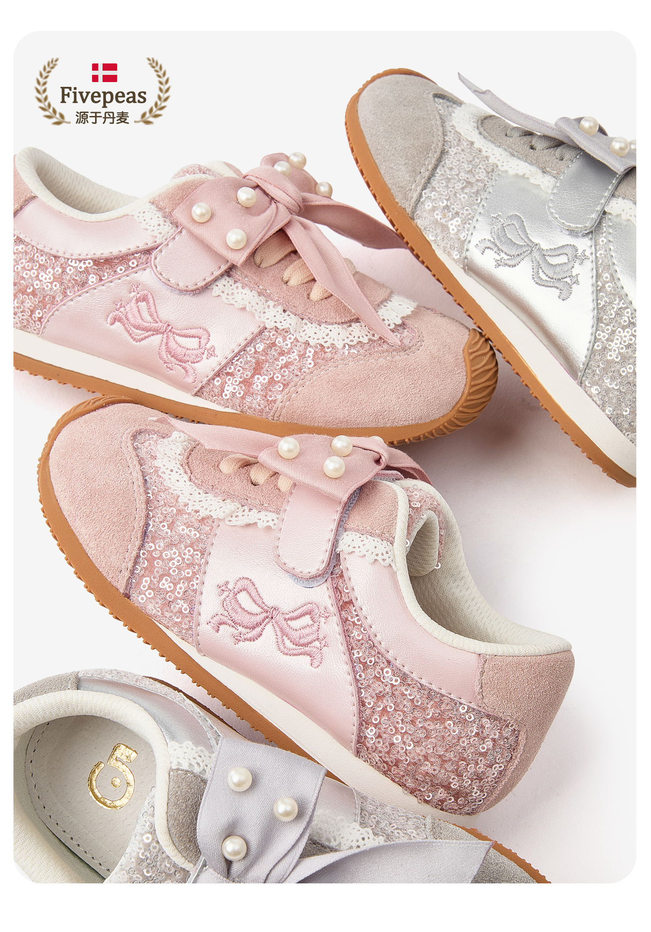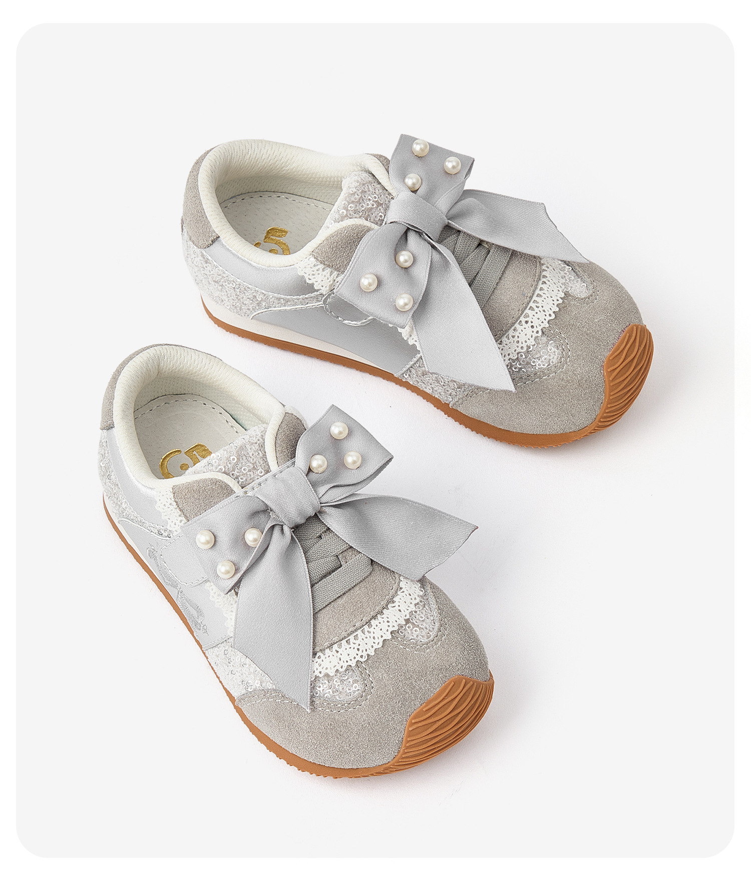 Five Beans 어린이 도덕 훈련 신발 소녀 캐주얼 운동화 달콤한 나비 발레 스타일 운동화 가을 부드러운 신발