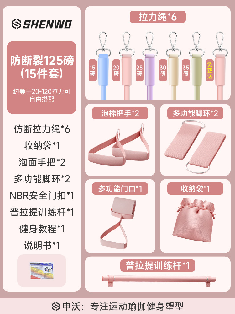 • [추천 + 필라테스 바] 15종 세트/업그레이드된 파손 방지 125파운드 조절 가능/피트니스 85%