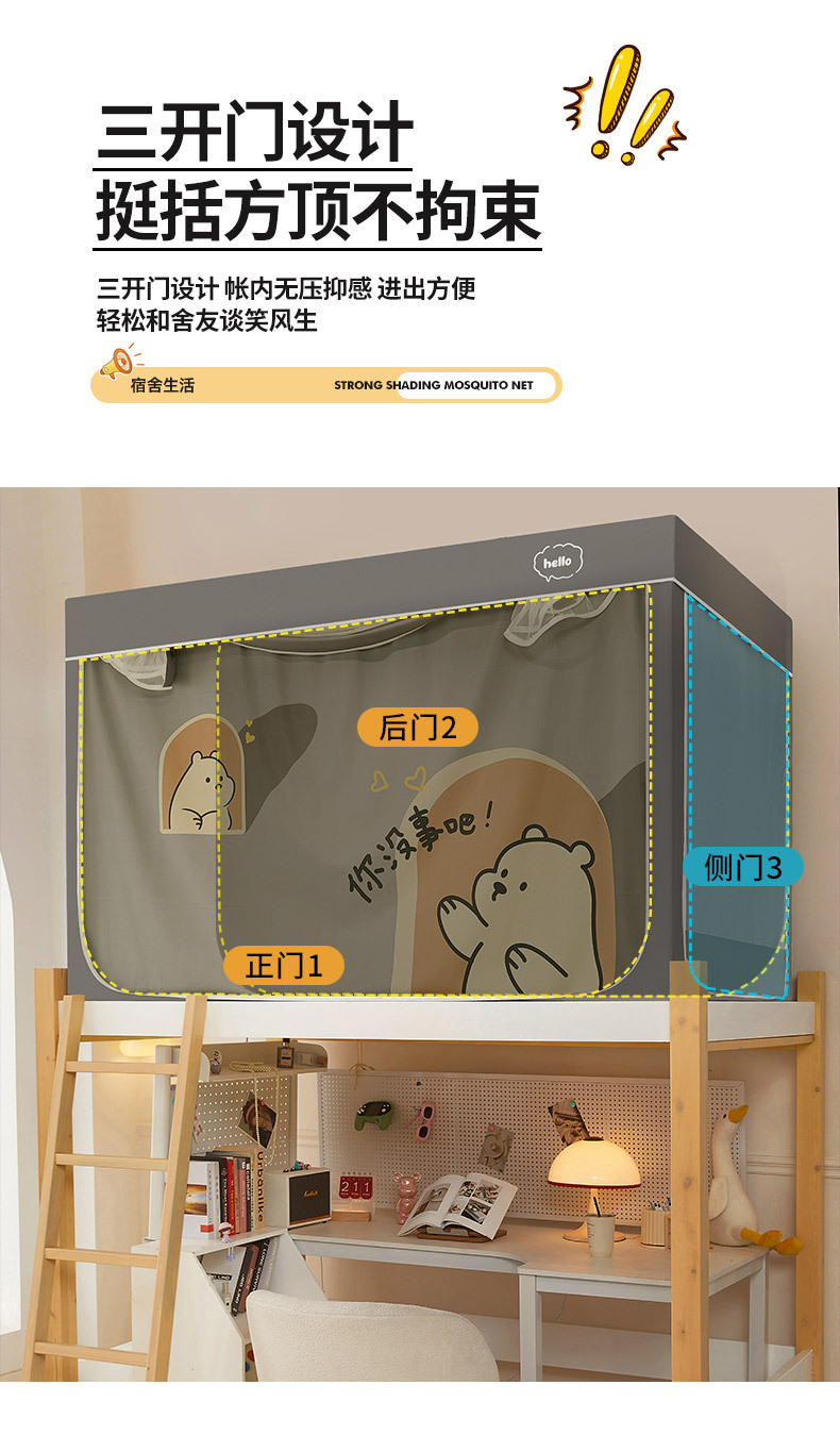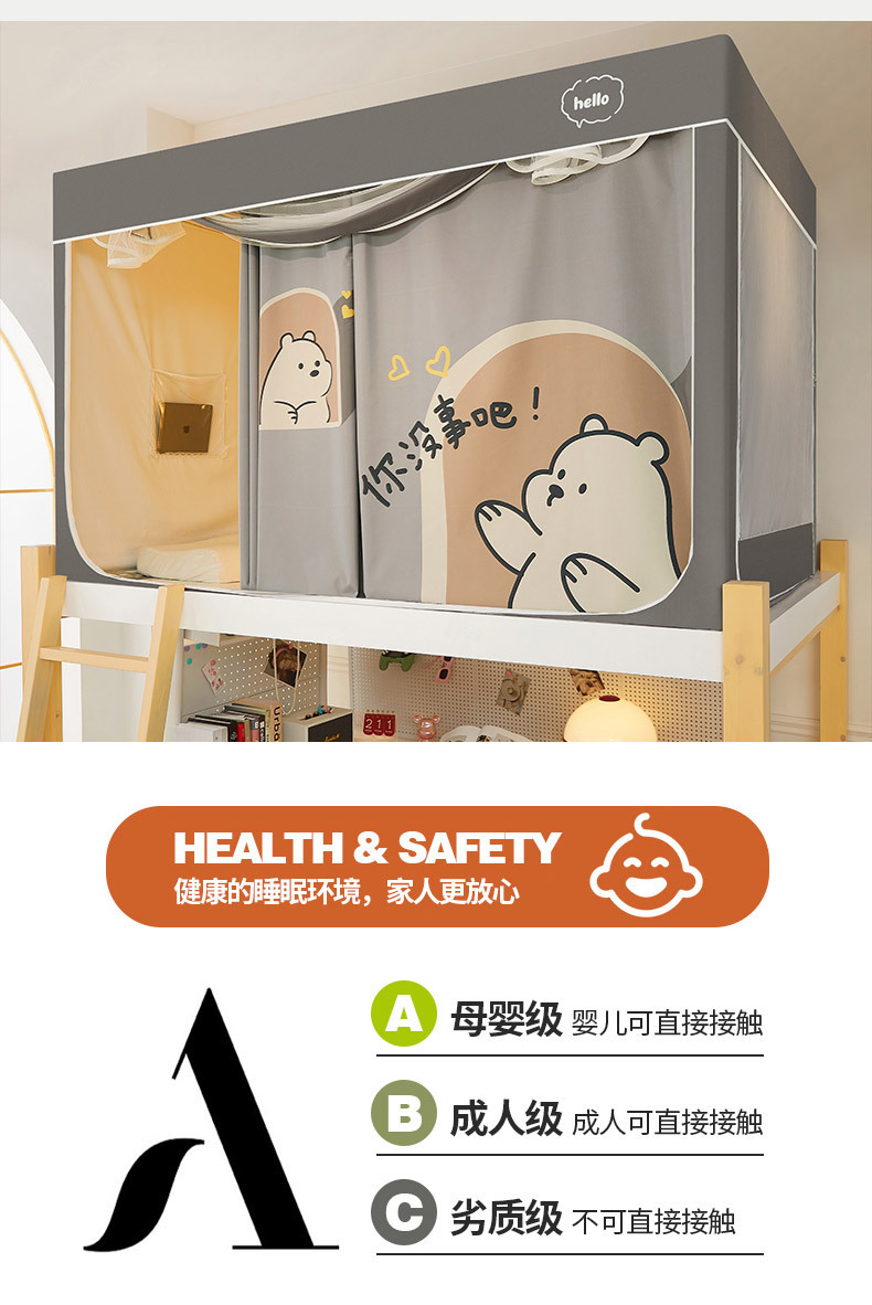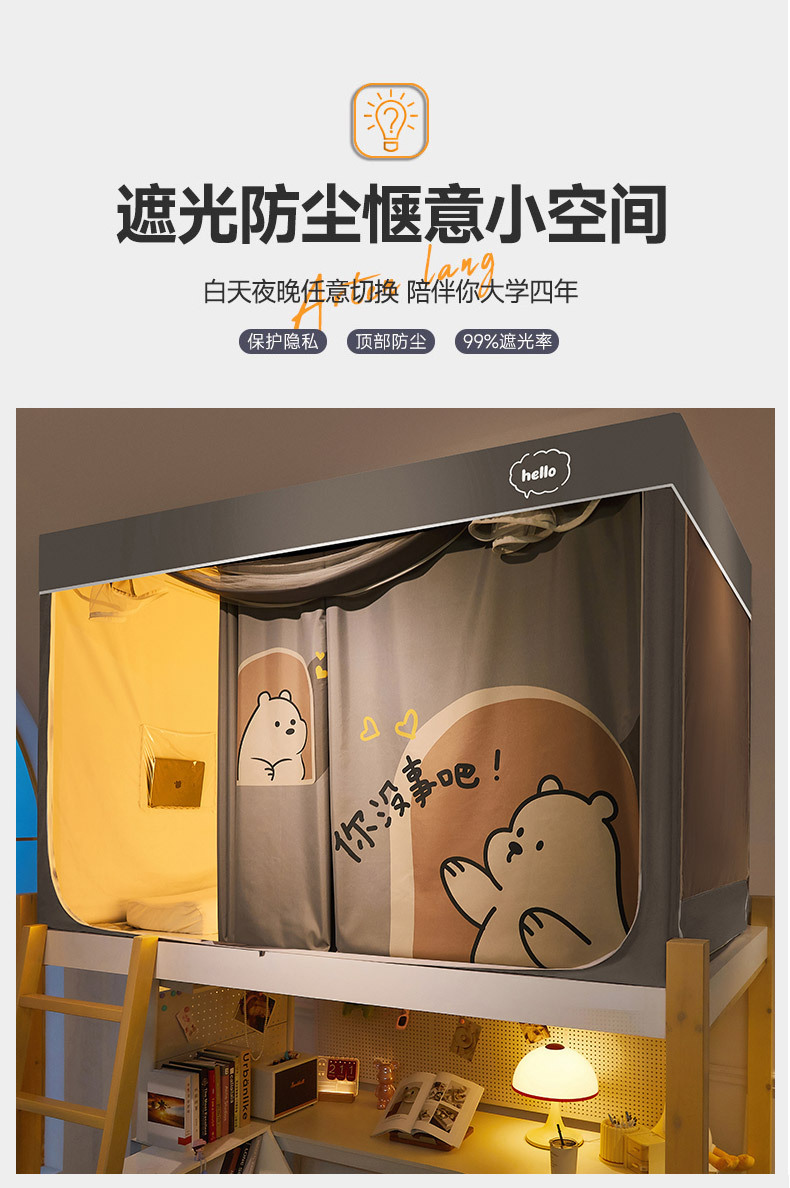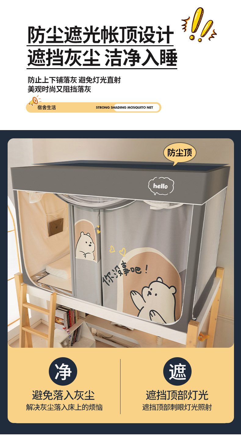 클래스 A 만화 일체형 학생 기숙사 강력한 차광 침대 커튼 모기장 침실 이층 침대 싱글 브래킷 로드 침대 커튼스토어 가기