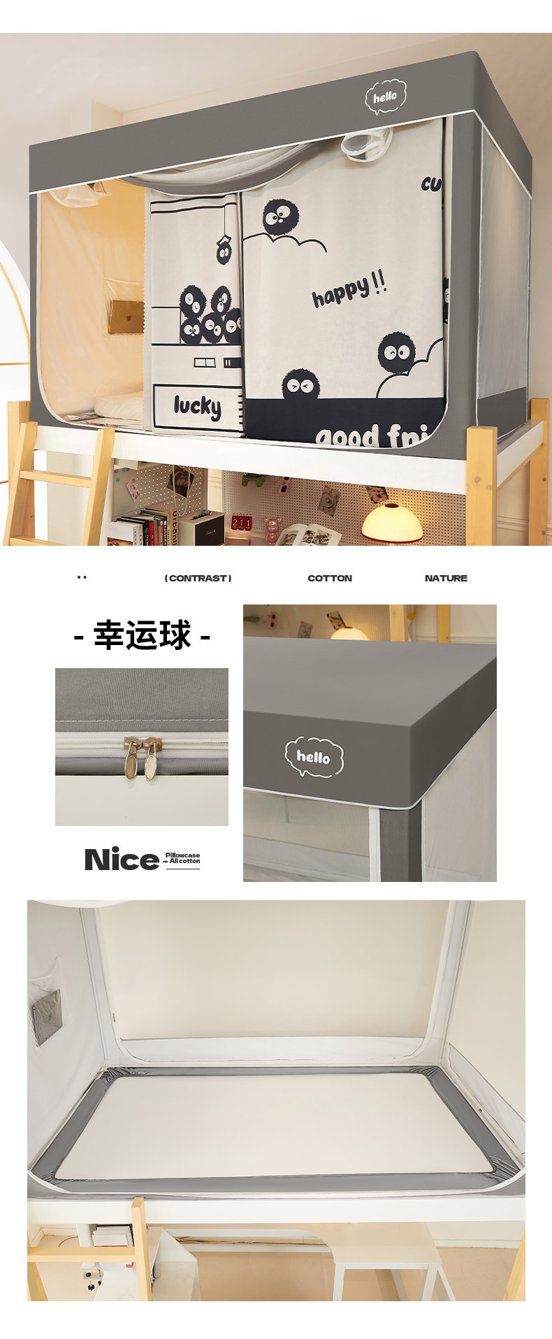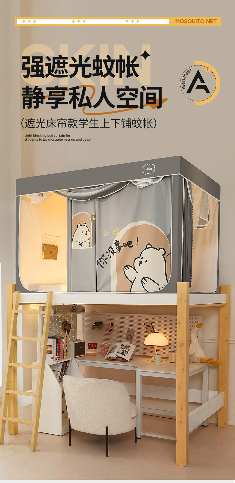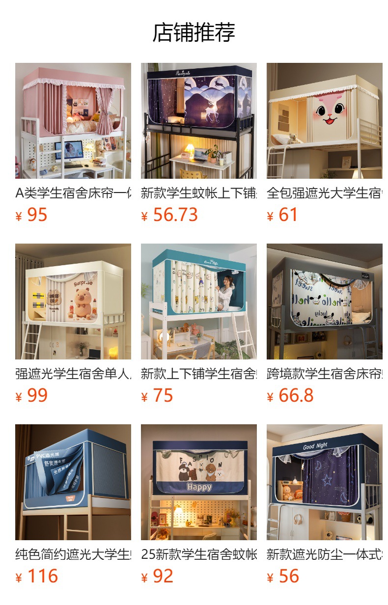 클래스 A 만화 일체형 학생 기숙사 강력한 차광 침대 커튼 모기장 침실 이층 침대 싱글 브래킷 로드 침대 커튼스토어 가기