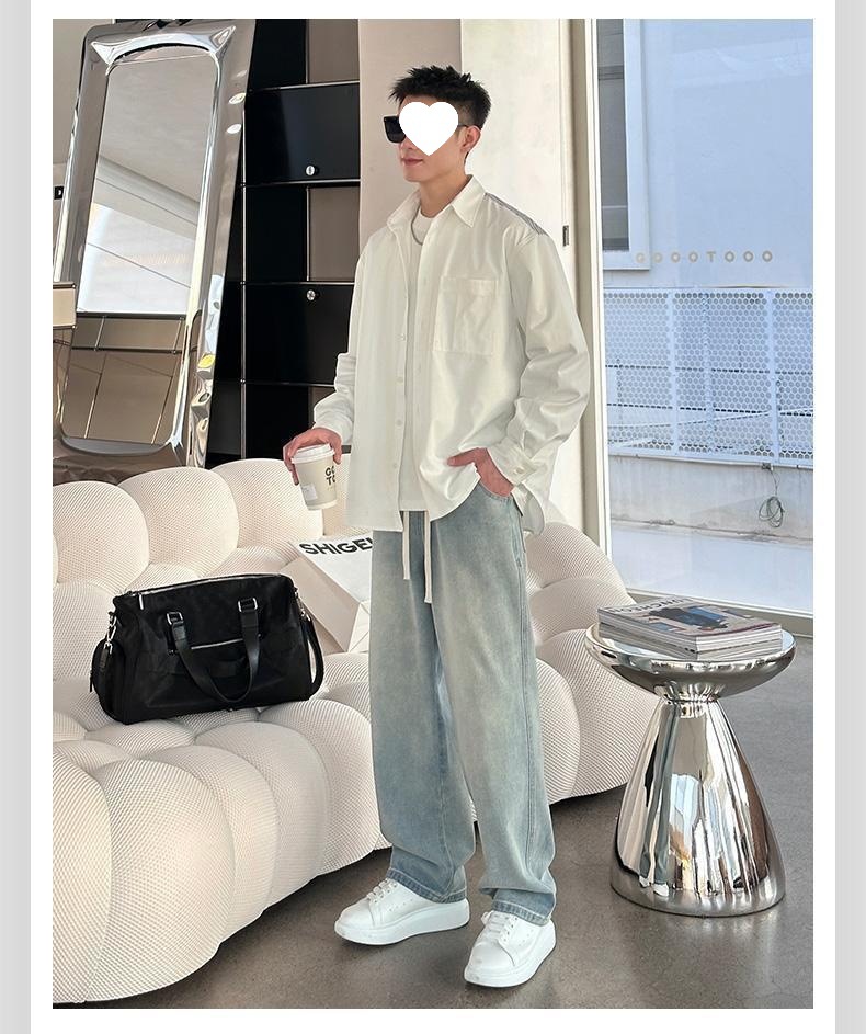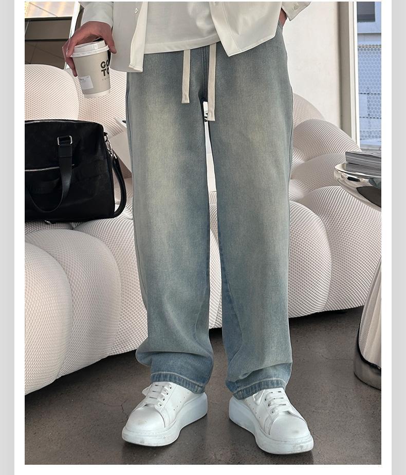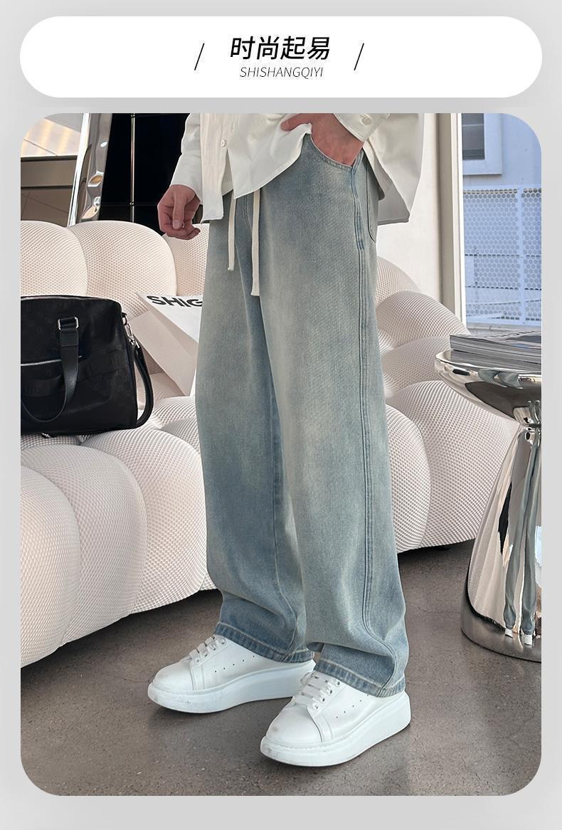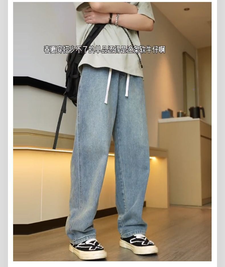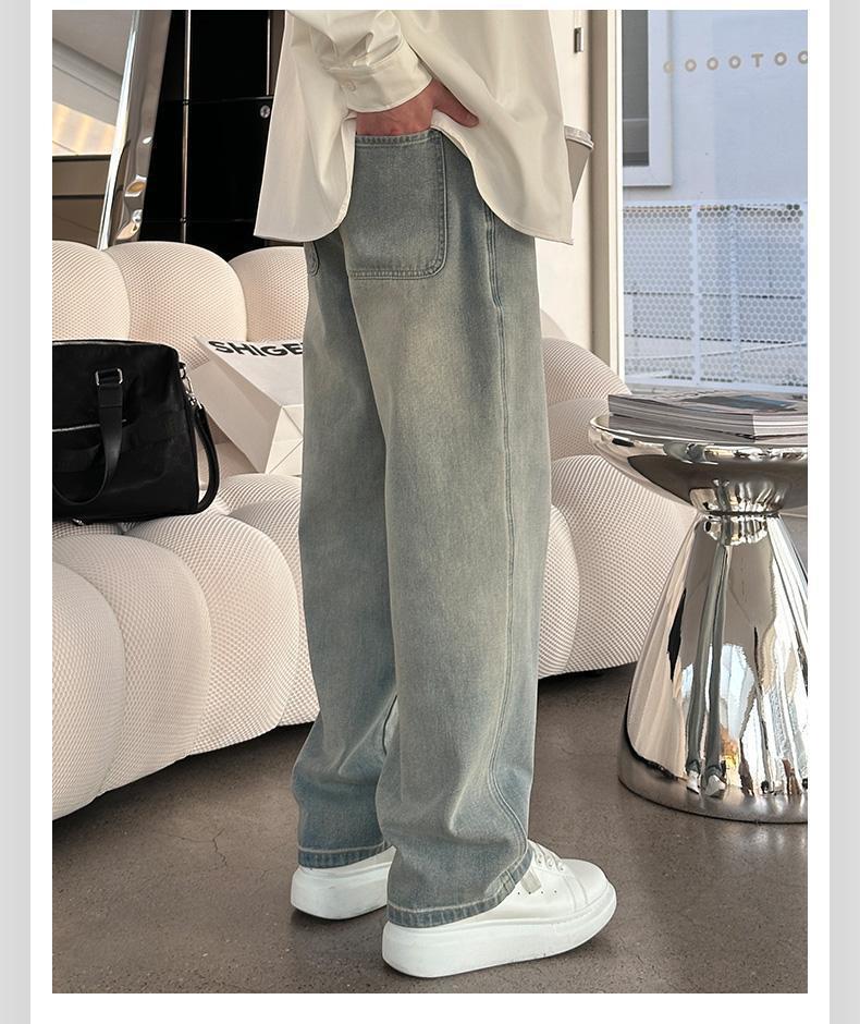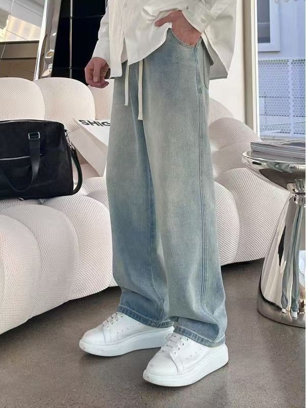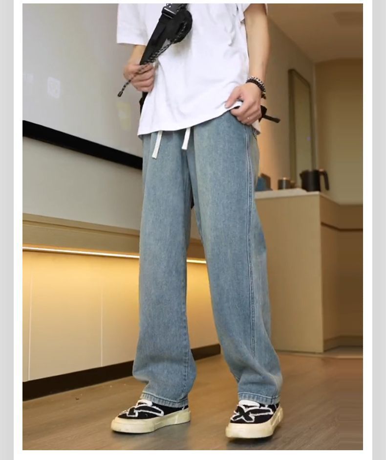 남성용 한국 청바지 여름 남성 트렌드 2025 새로운 루즈 스트레이트 다용도 미국 하이 스트리트 와이드 팬츠스토어 가기