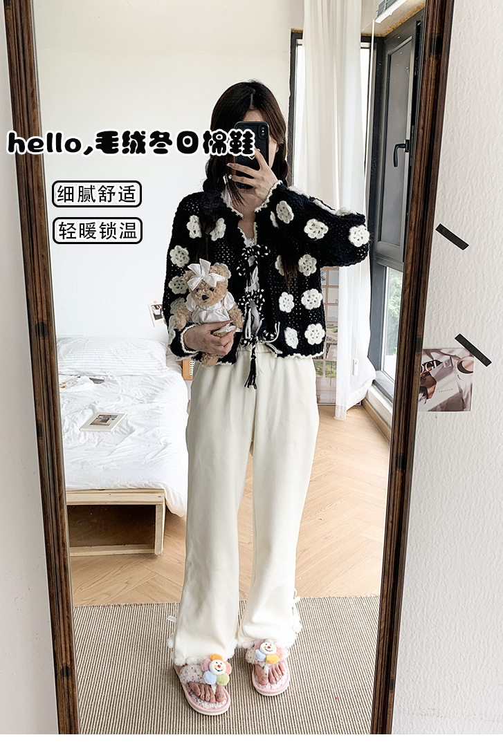 가을 겨울 패션 한국 홈 두꺼운 밑창 편안한 모피 신발을위한 소녀 하트 플러시 헤링본 면화 슬리퍼스토어 가기
