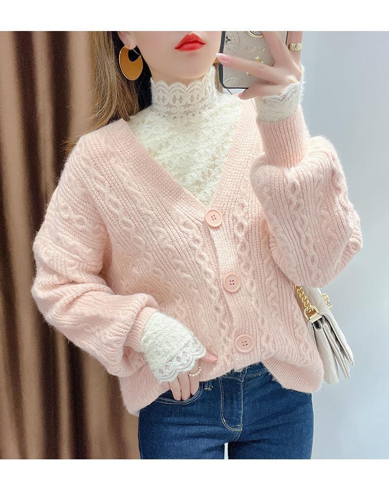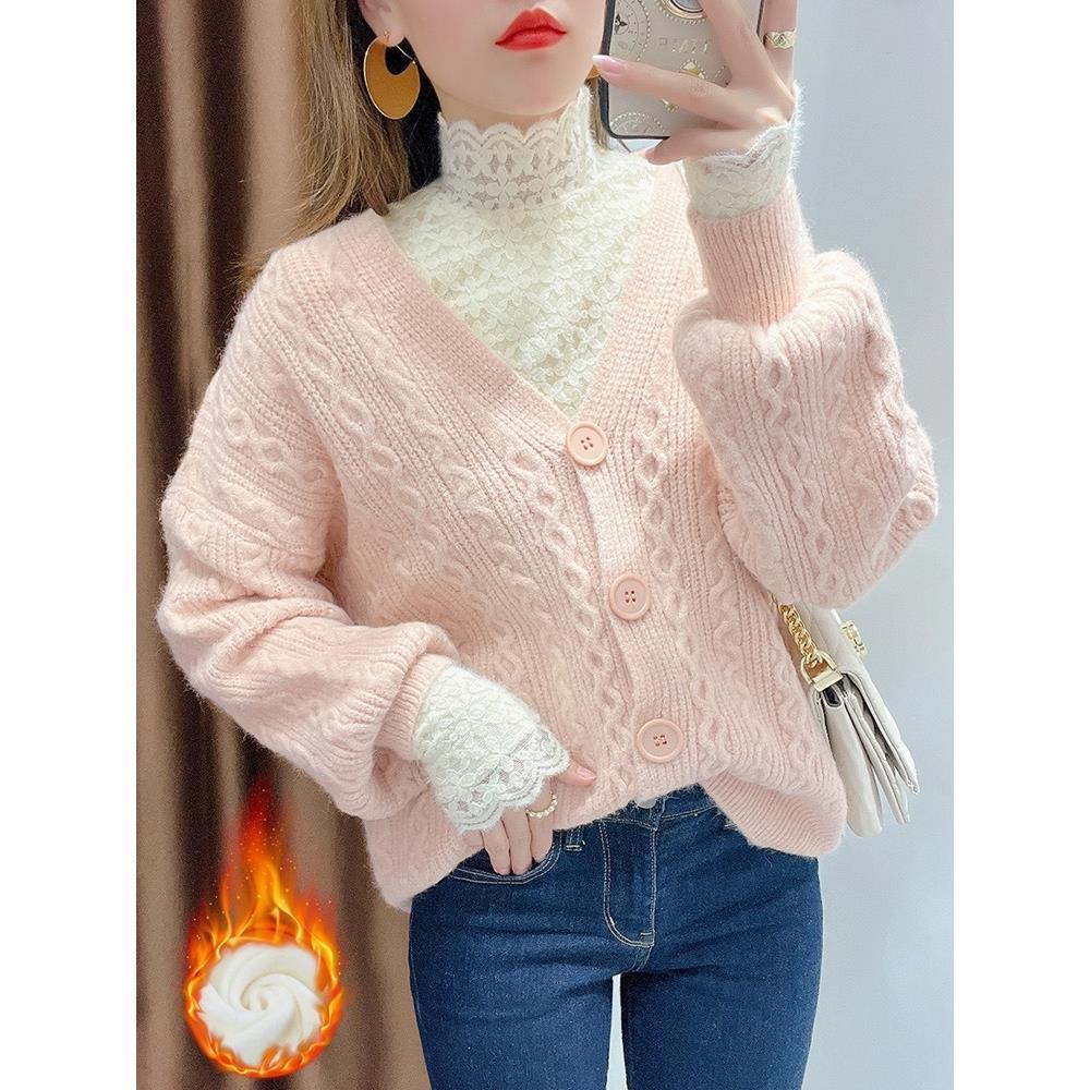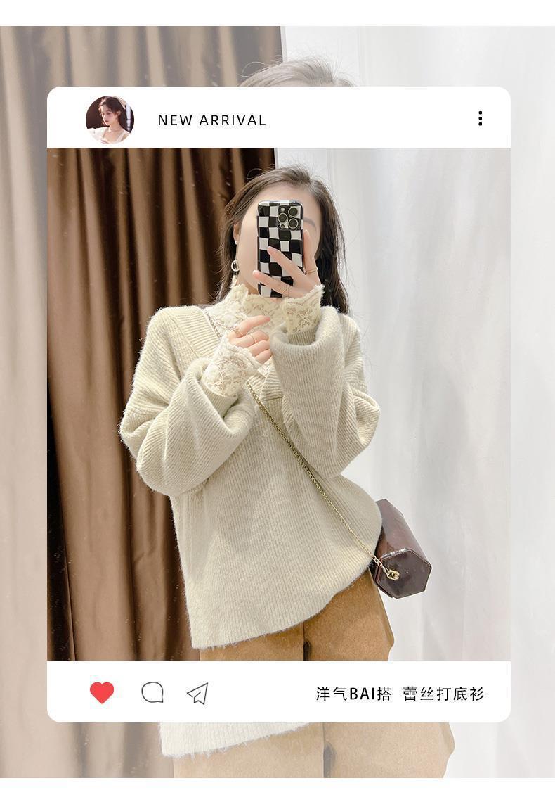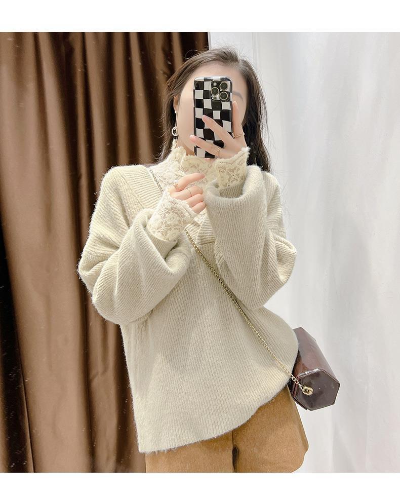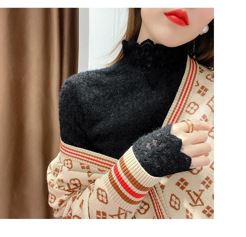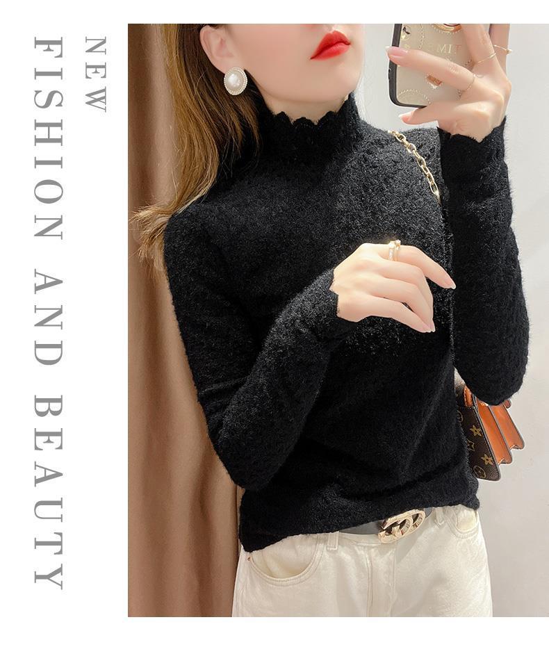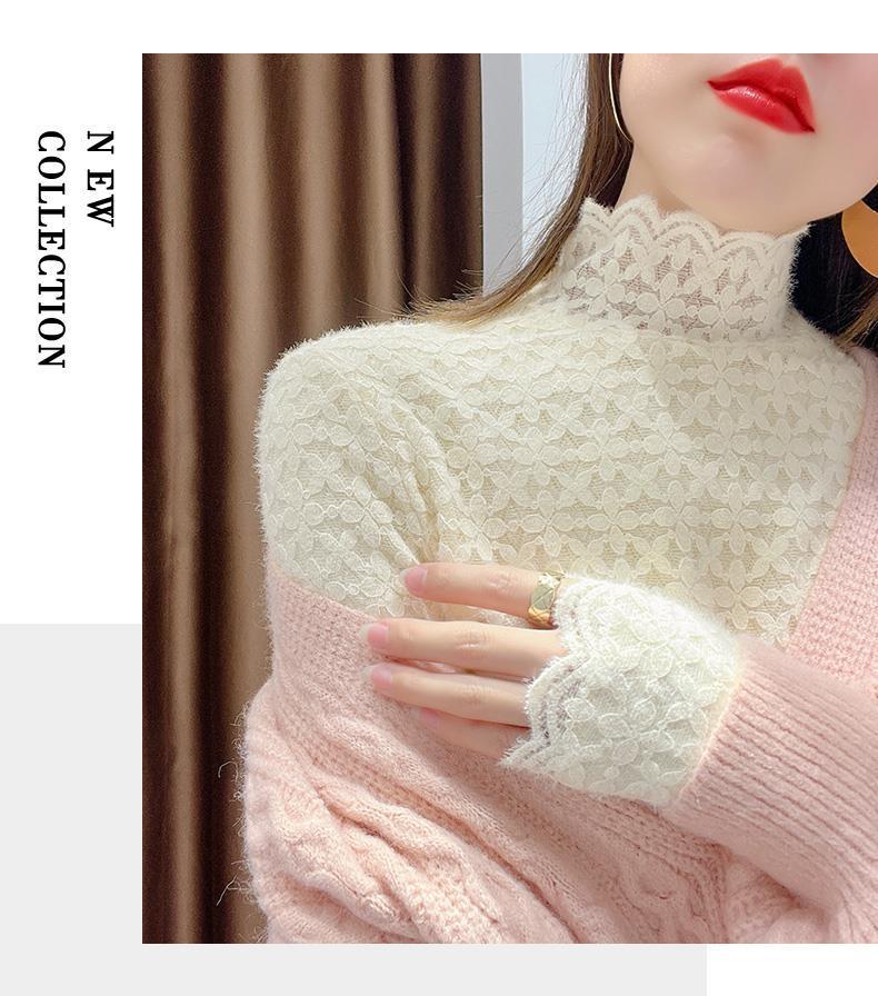 가을 겨울 여성용 벨벳 두꺼운 레이스 바닥 셔츠, 새로운 스타일의 하이 칼라 셔츠, 기모 따뜻한 메쉬 탑