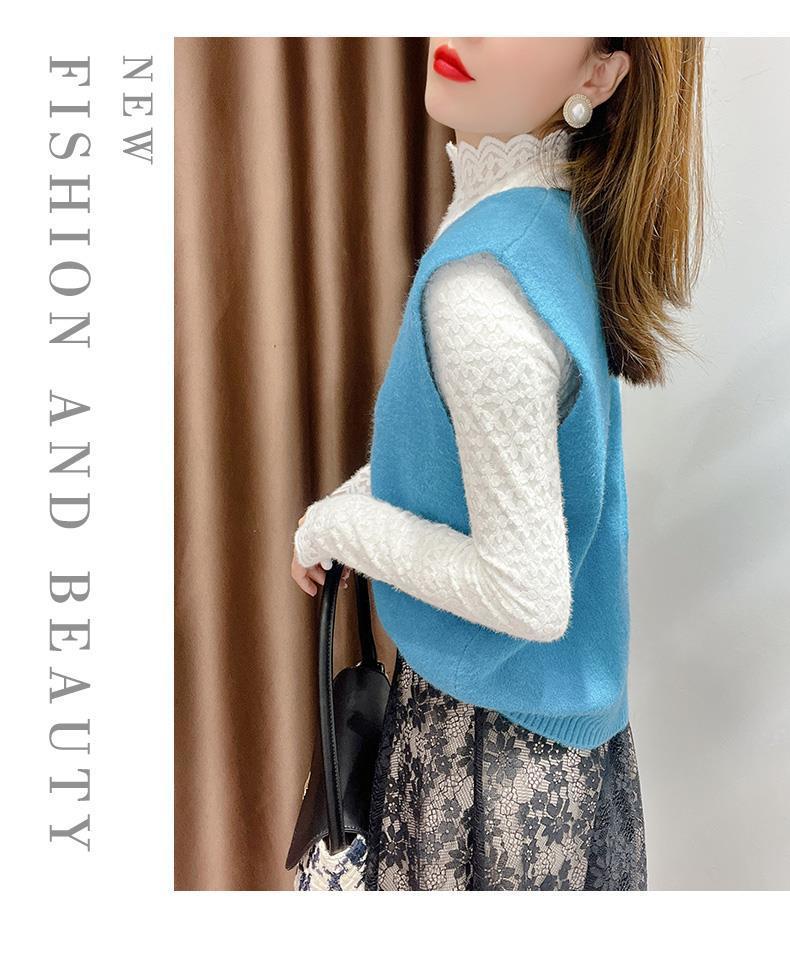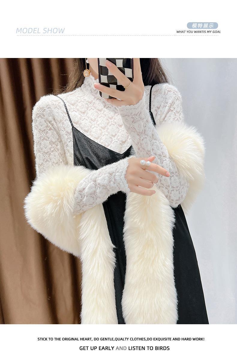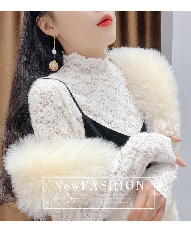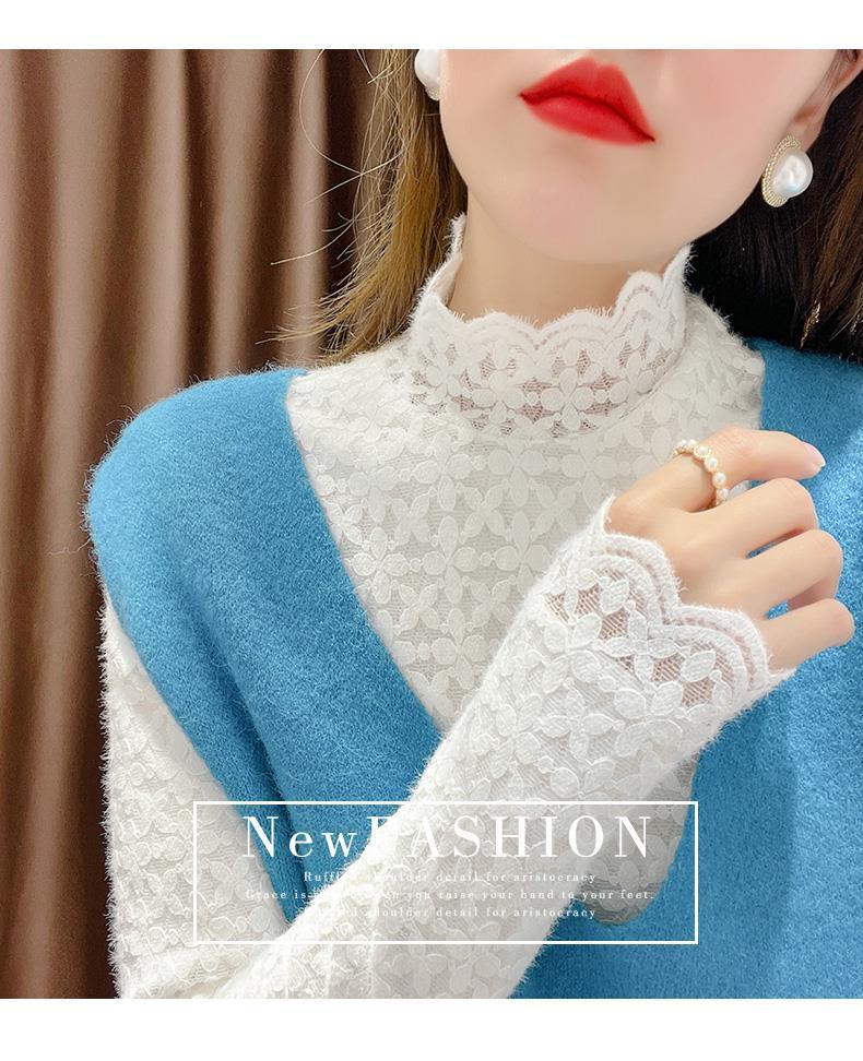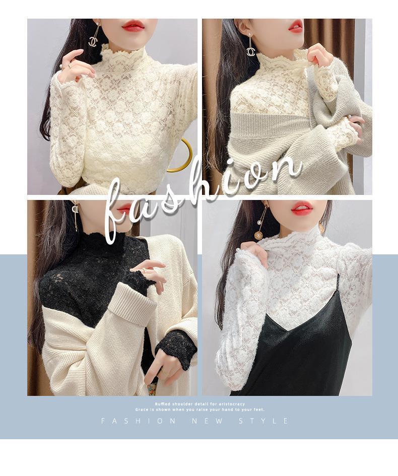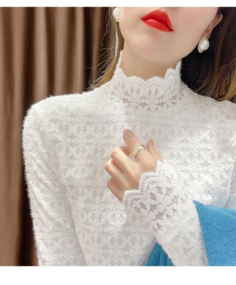 가을 겨울 여성용 벨벳 두꺼운 레이스 바닥 셔츠, 새로운 스타일의 하이 칼라 셔츠, 기모 따뜻한 메쉬 탑스토어 가기