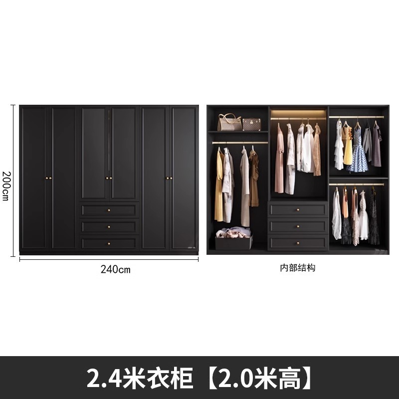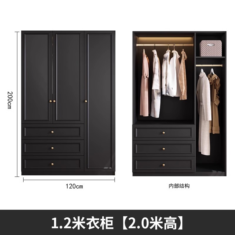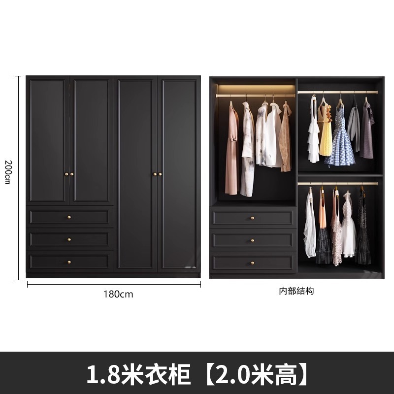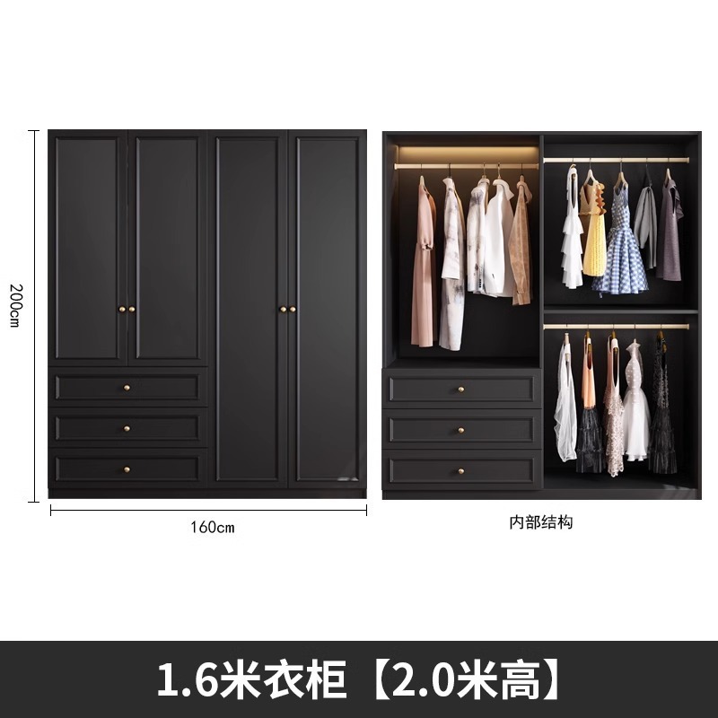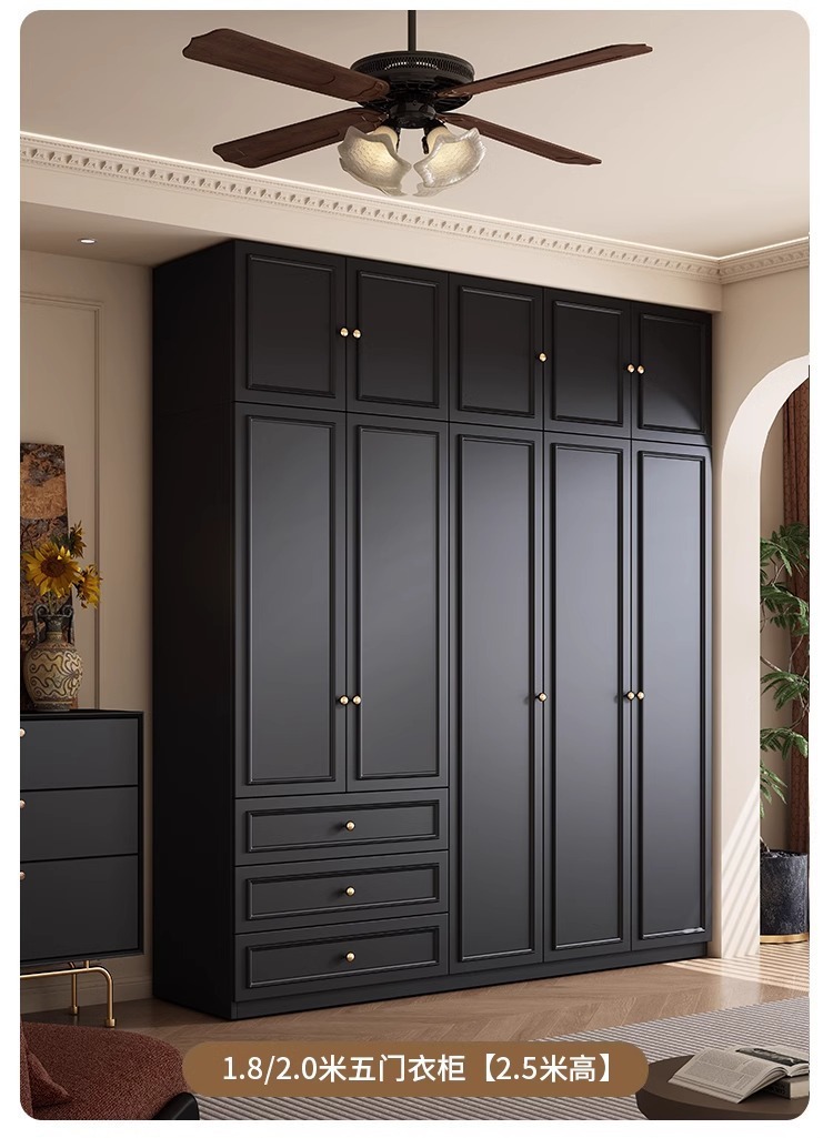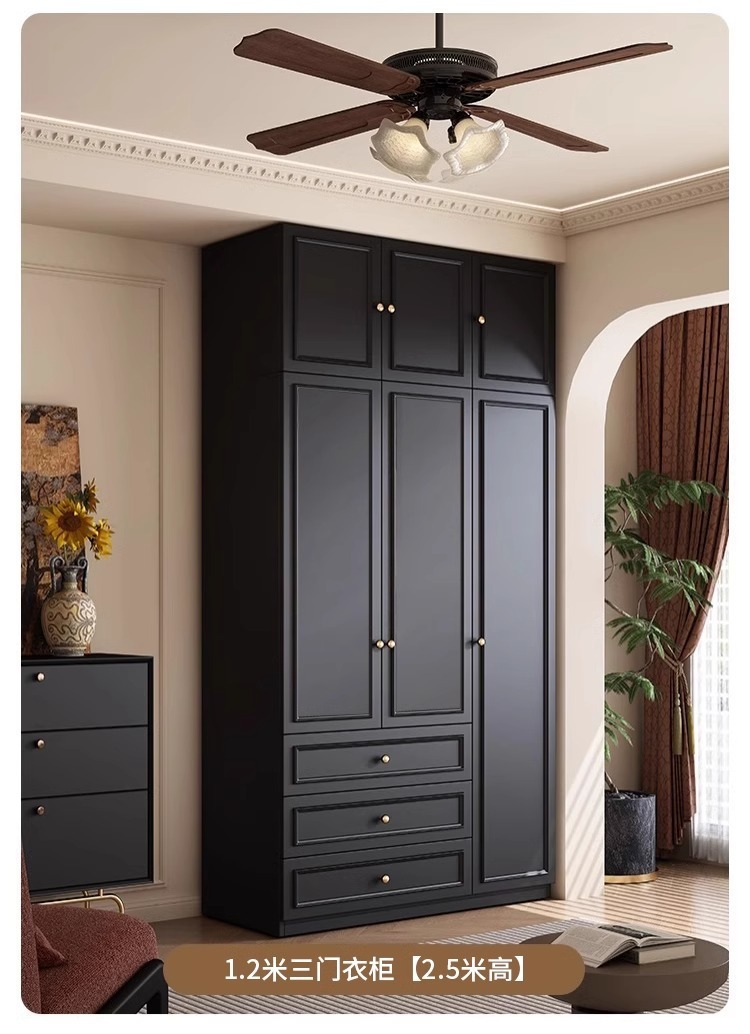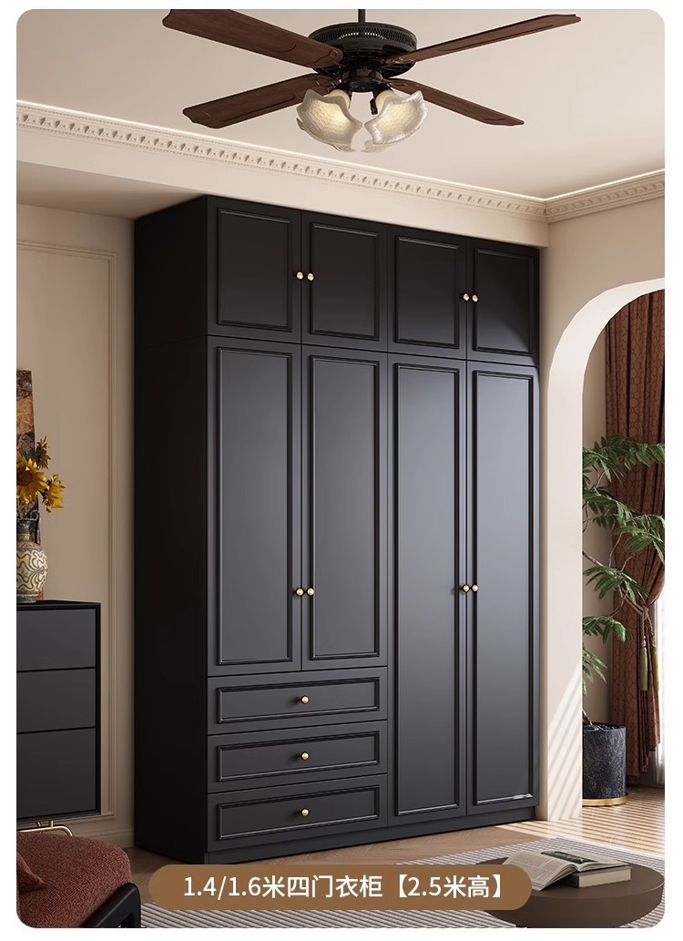 중세 스타일 프랑스 검은 옷장 홈 침실 작은 아파트 미국 클래식 복고풍 스타일 옷장 완제품 대형 옷장