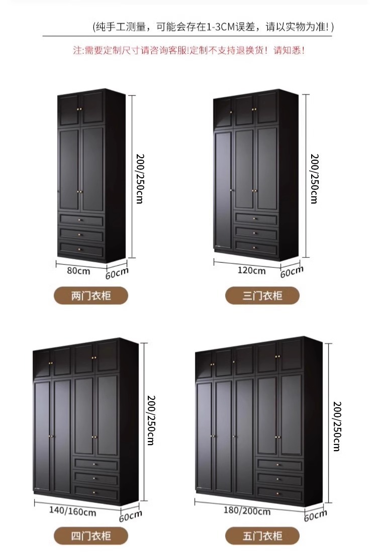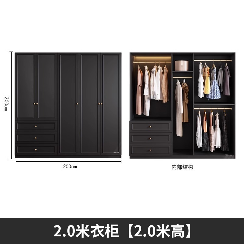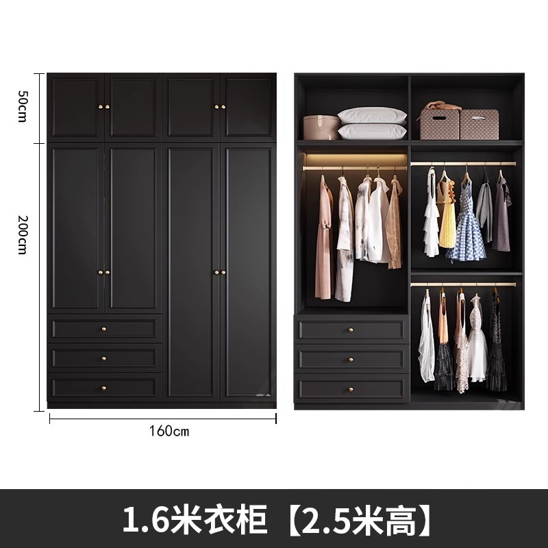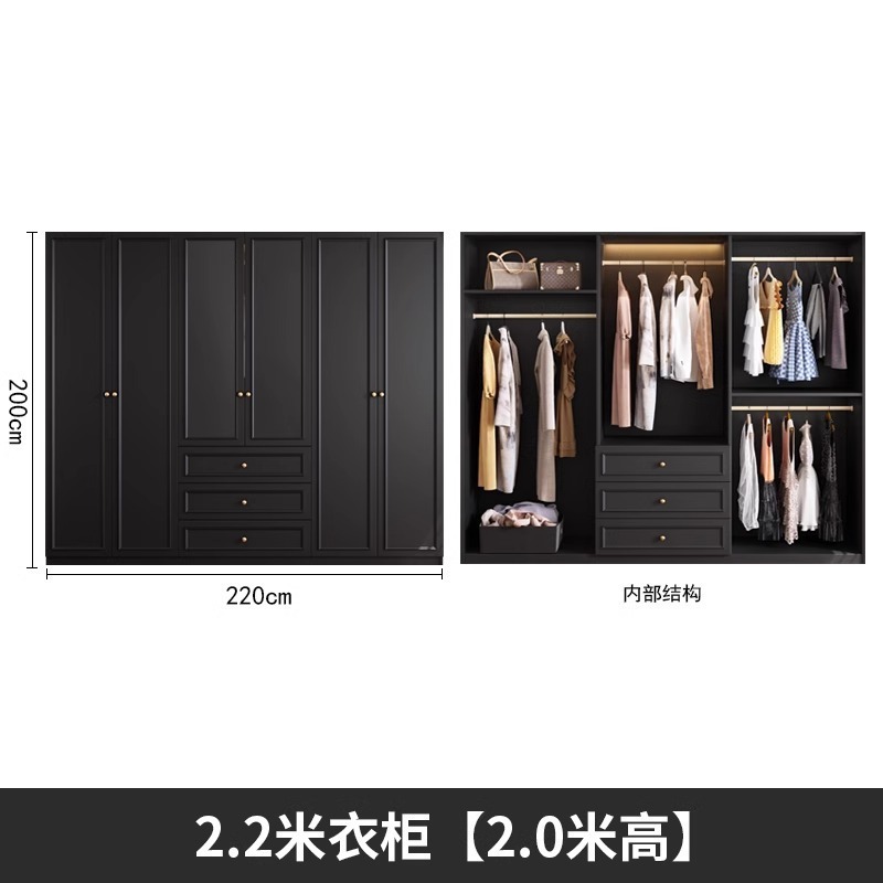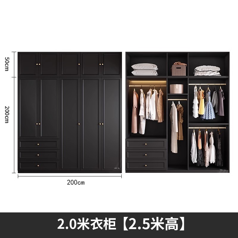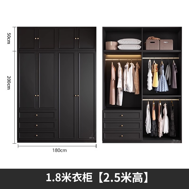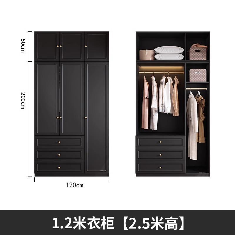 중세 스타일 프랑스 검은 옷장 홈 침실 작은 아파트 미국 클래식 복고풍 스타일 옷장 완제품 대형 옷장