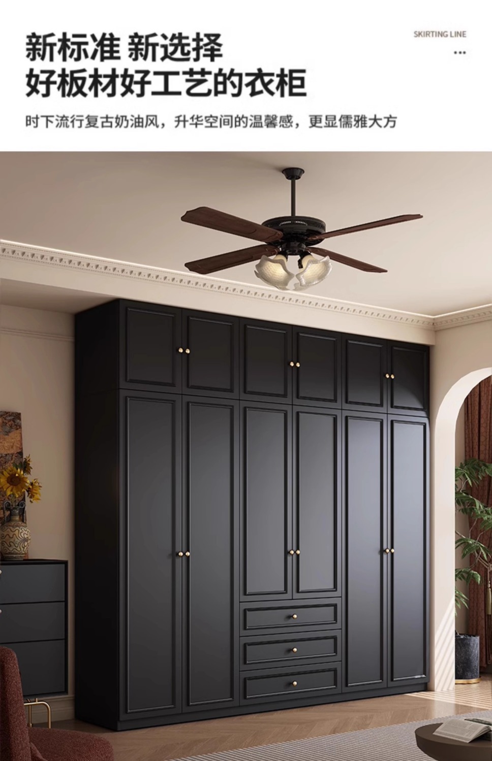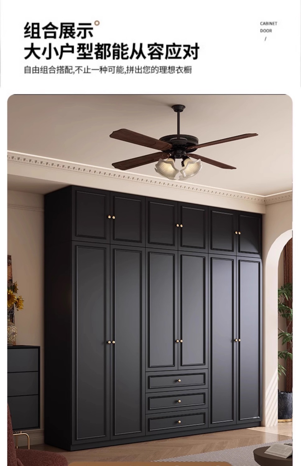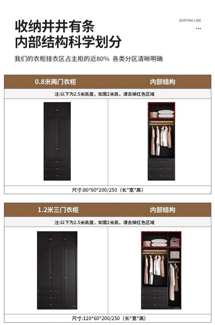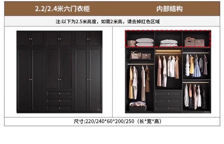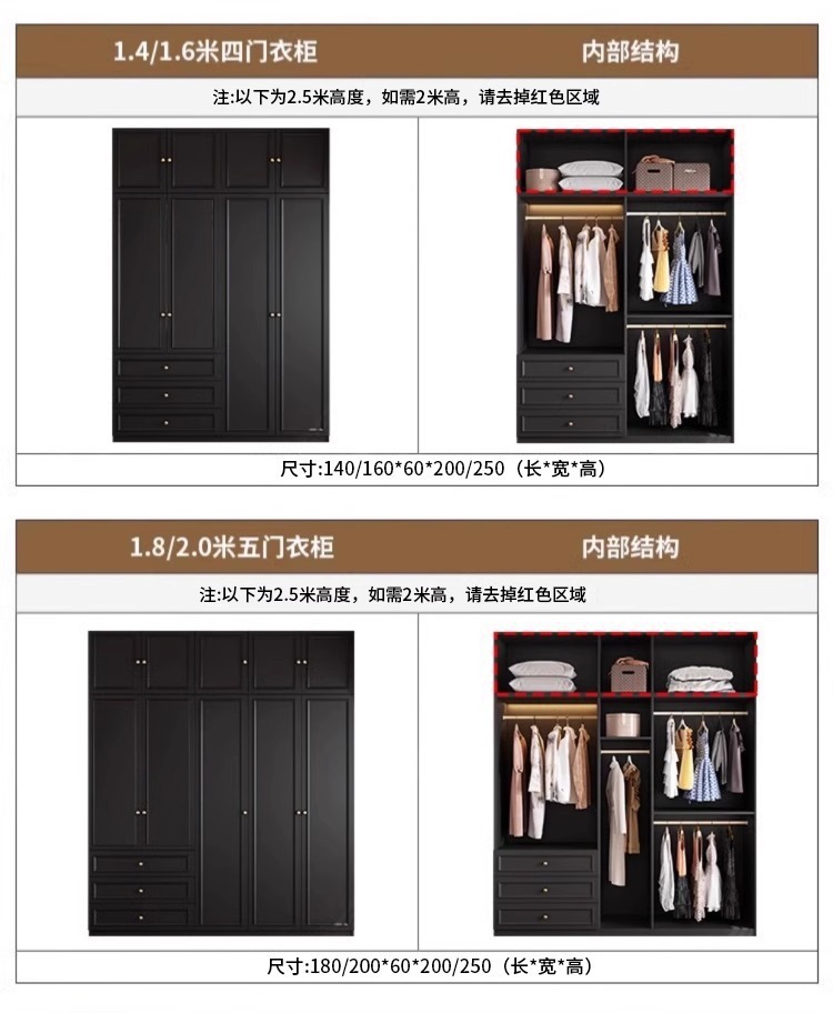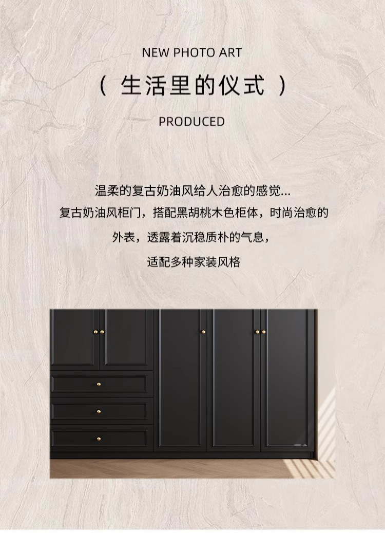 중세 스타일 프랑스 검은 옷장 홈 침실 작은 아파트 미국 클래식 복고풍 스타일 옷장 완제품 대형 옷장