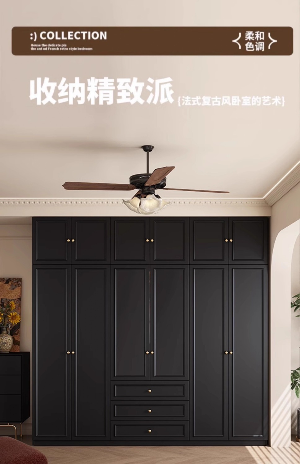 중세 스타일 프랑스 검은 옷장 홈 침실 작은 아파트 미국 클래식 복고풍 스타일 옷장 완제품 대형 옷장스토어 가기