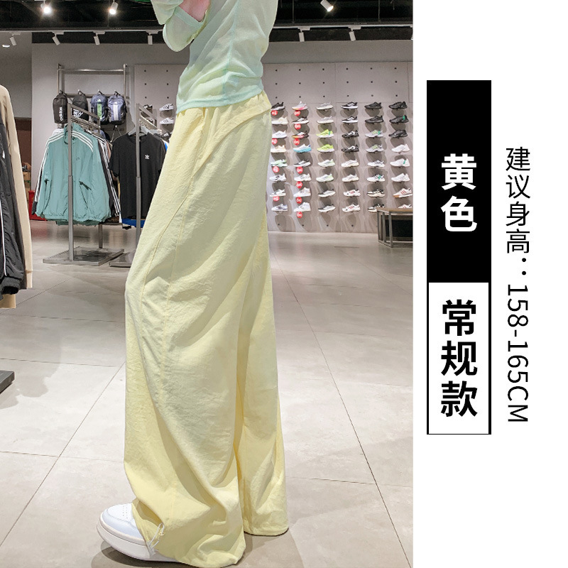여성용 노란색 속건 작업복, 슬림 여름 얇은 2025 신형 등산 와이드 팬츠, 작은 미국 스포츠 바지