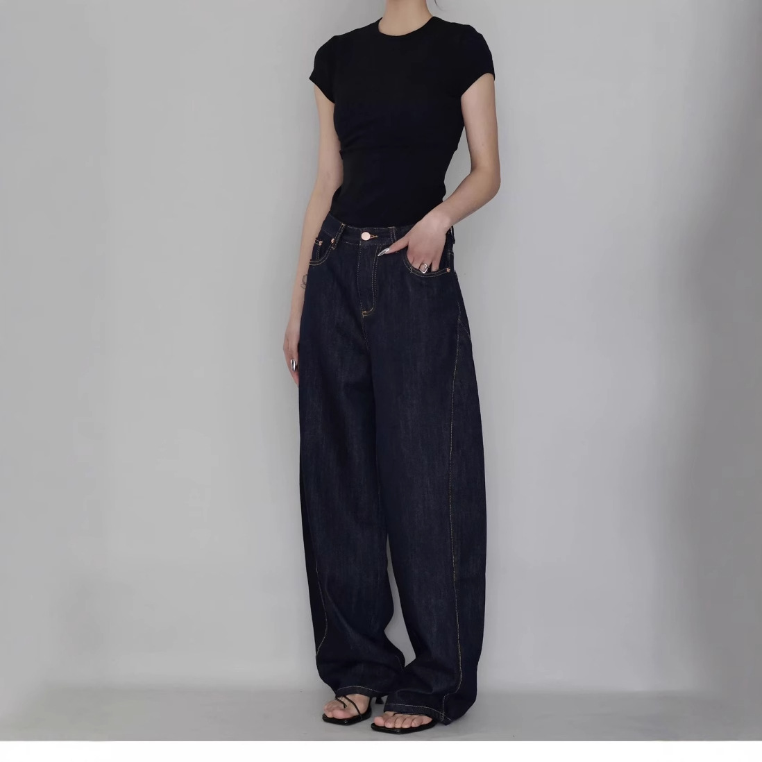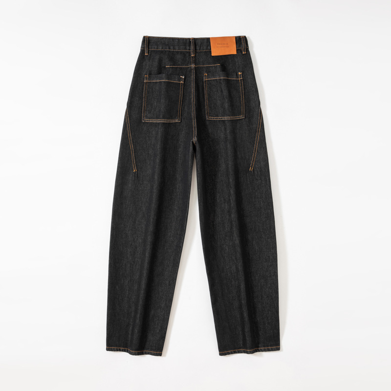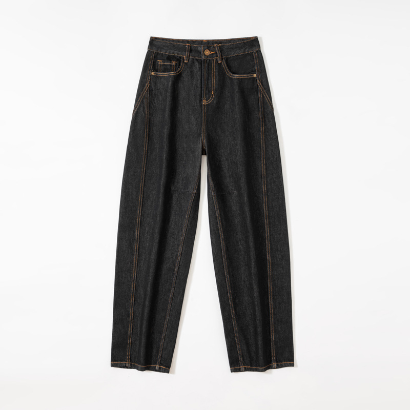 노란 꽃은 퇴색하기 쉽지 않으며 여성용 데님 세이버 팬츠 2025 가을 새로운 스타일 스플라이스 비탄성 트렌디 테이퍼드 팬츠
