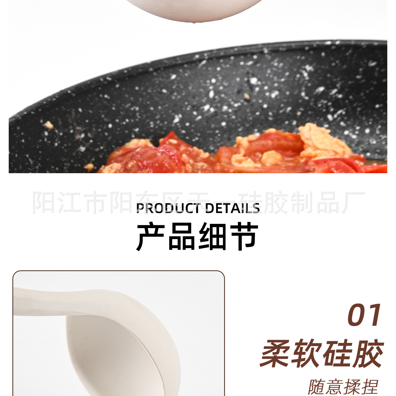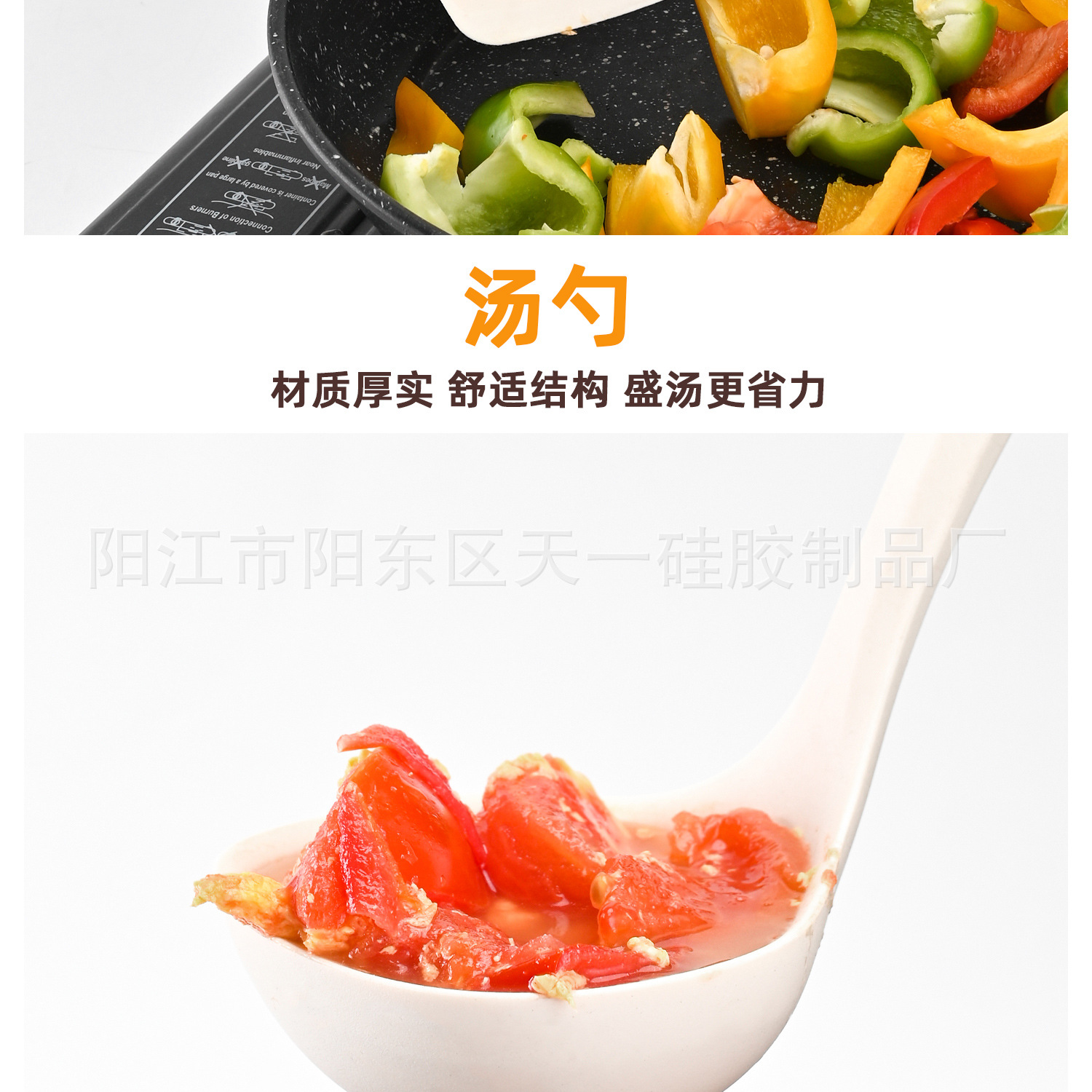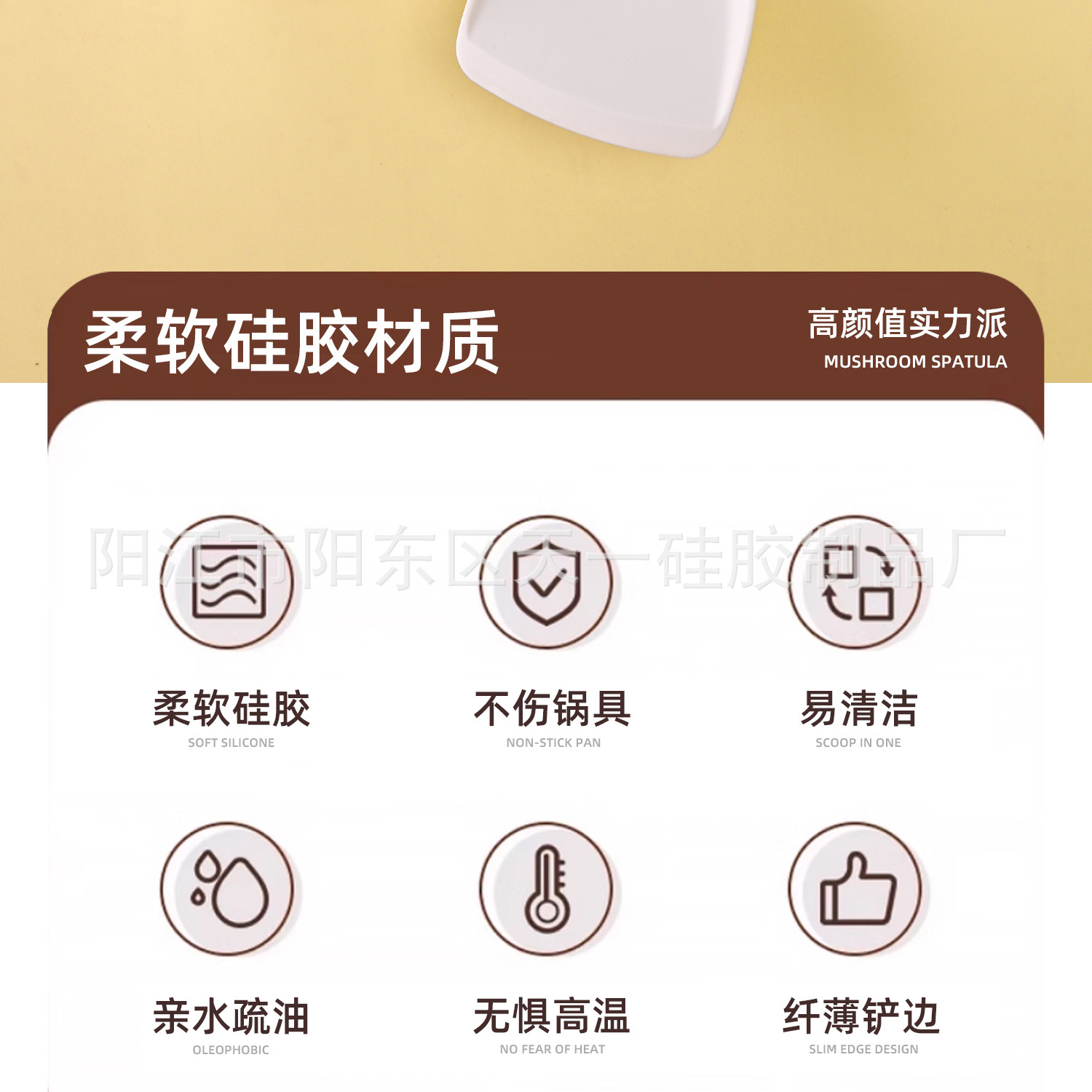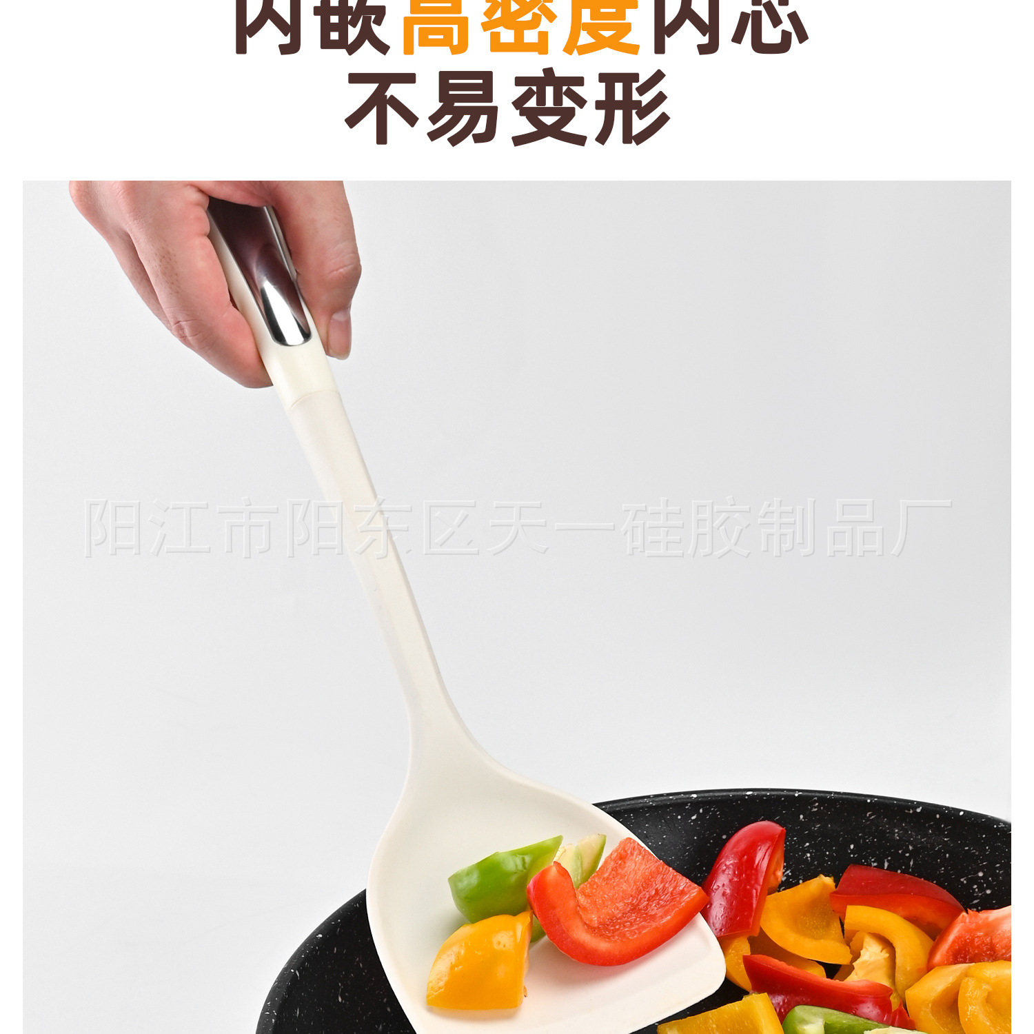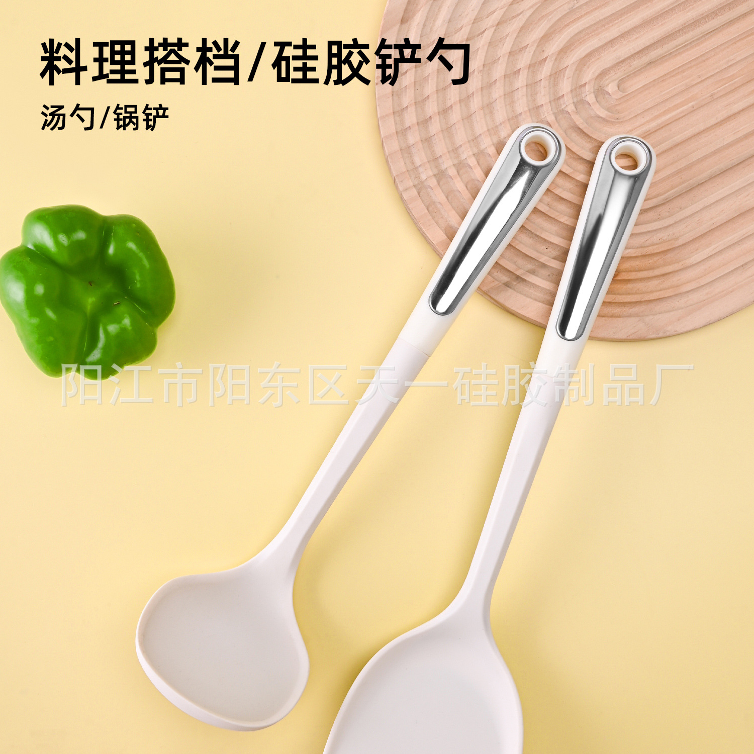 • PP 손잡이 강철 실리콘 스푼 - 황백색