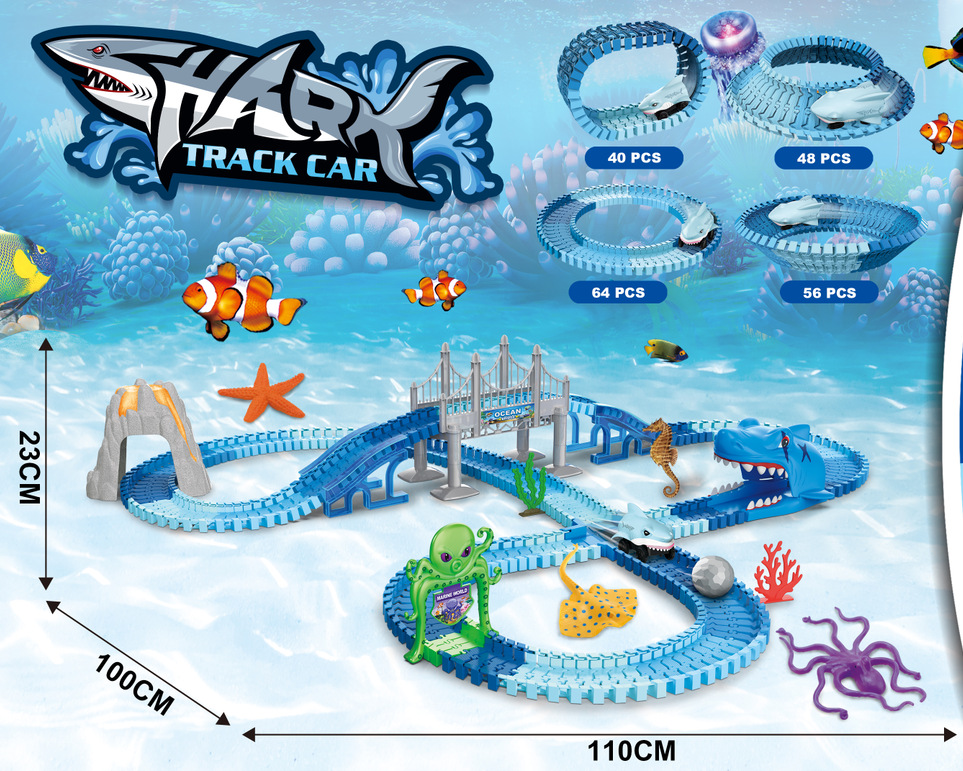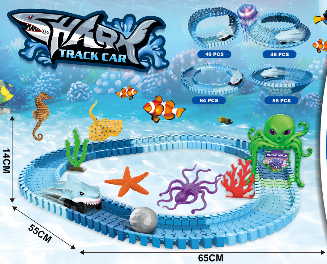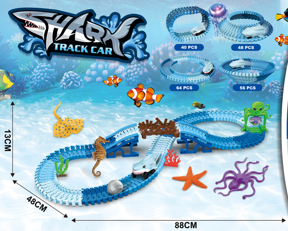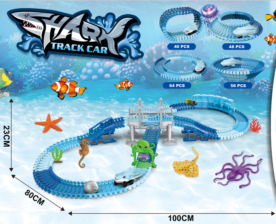 국경 간 전기 상어 트랙 자동차 놀이 공 괴물 자동차 교육 DIY 세트 조립 해양 트랙 어린이 장난감