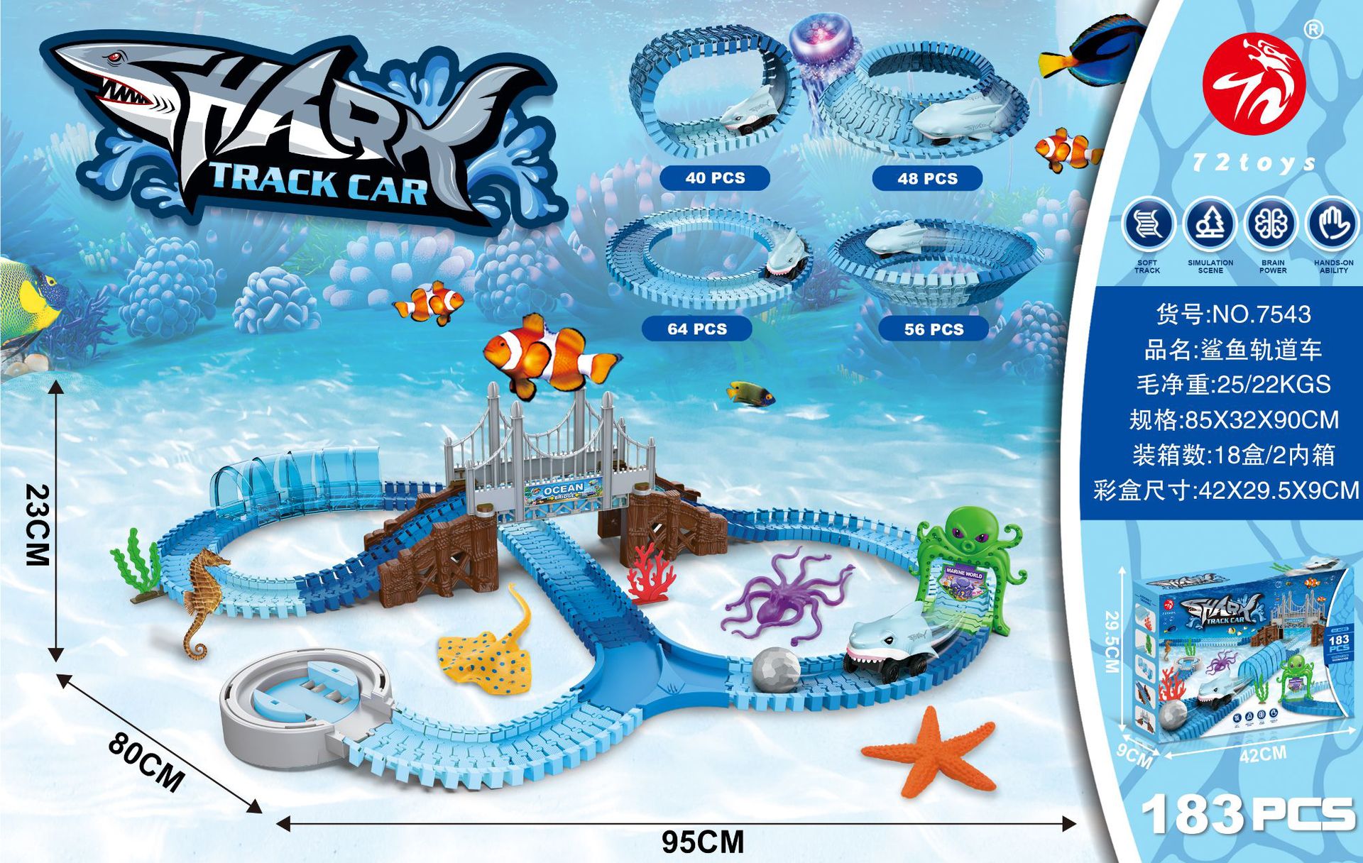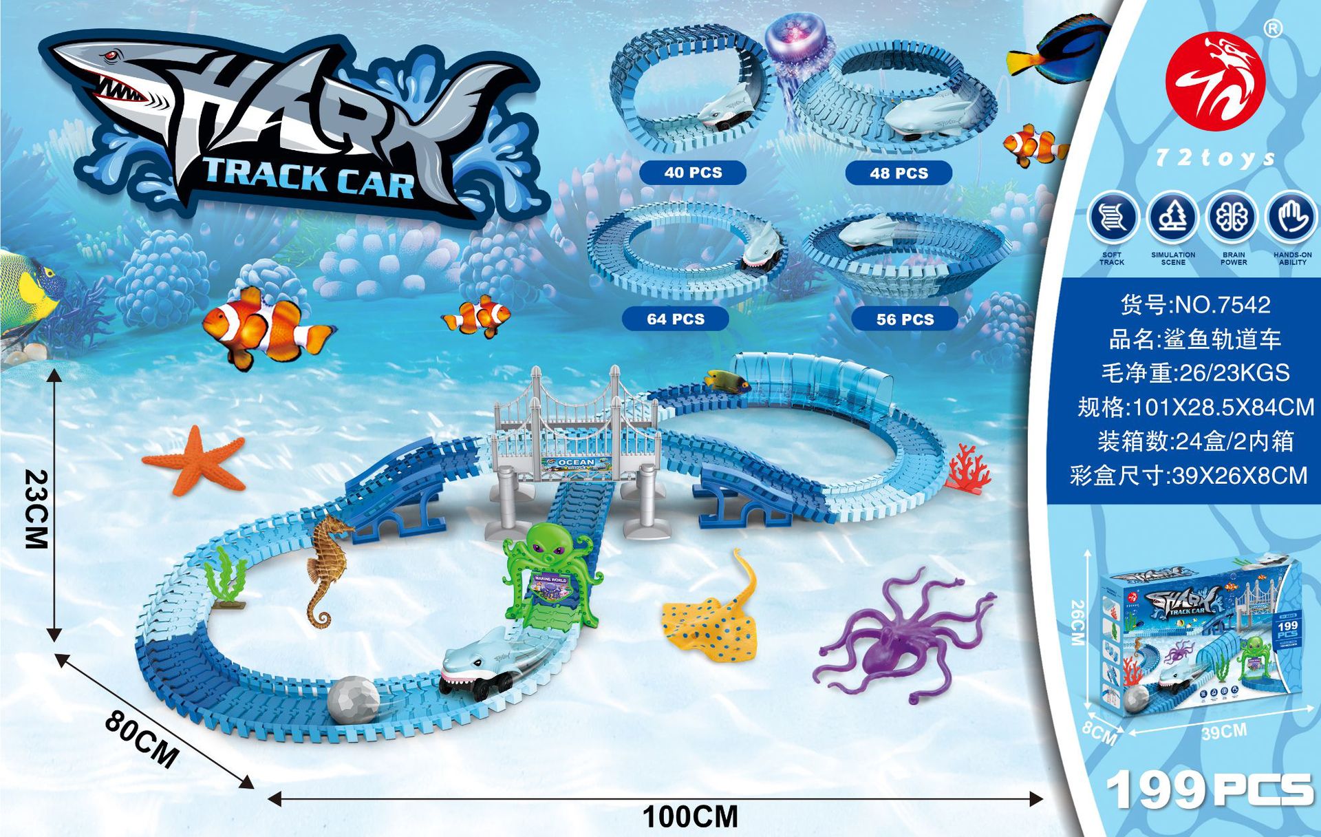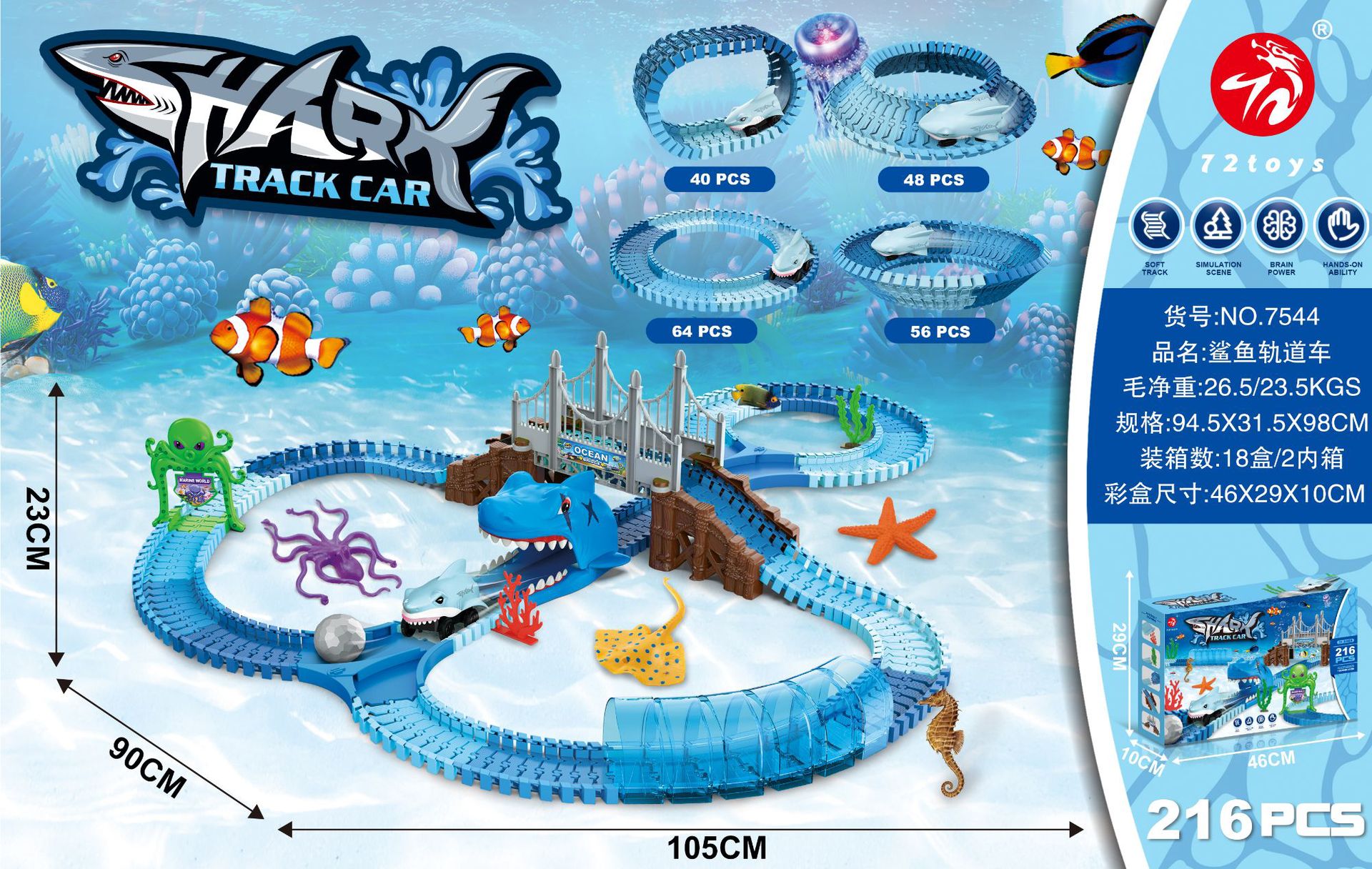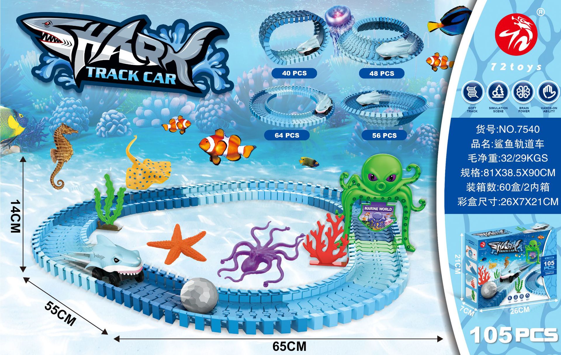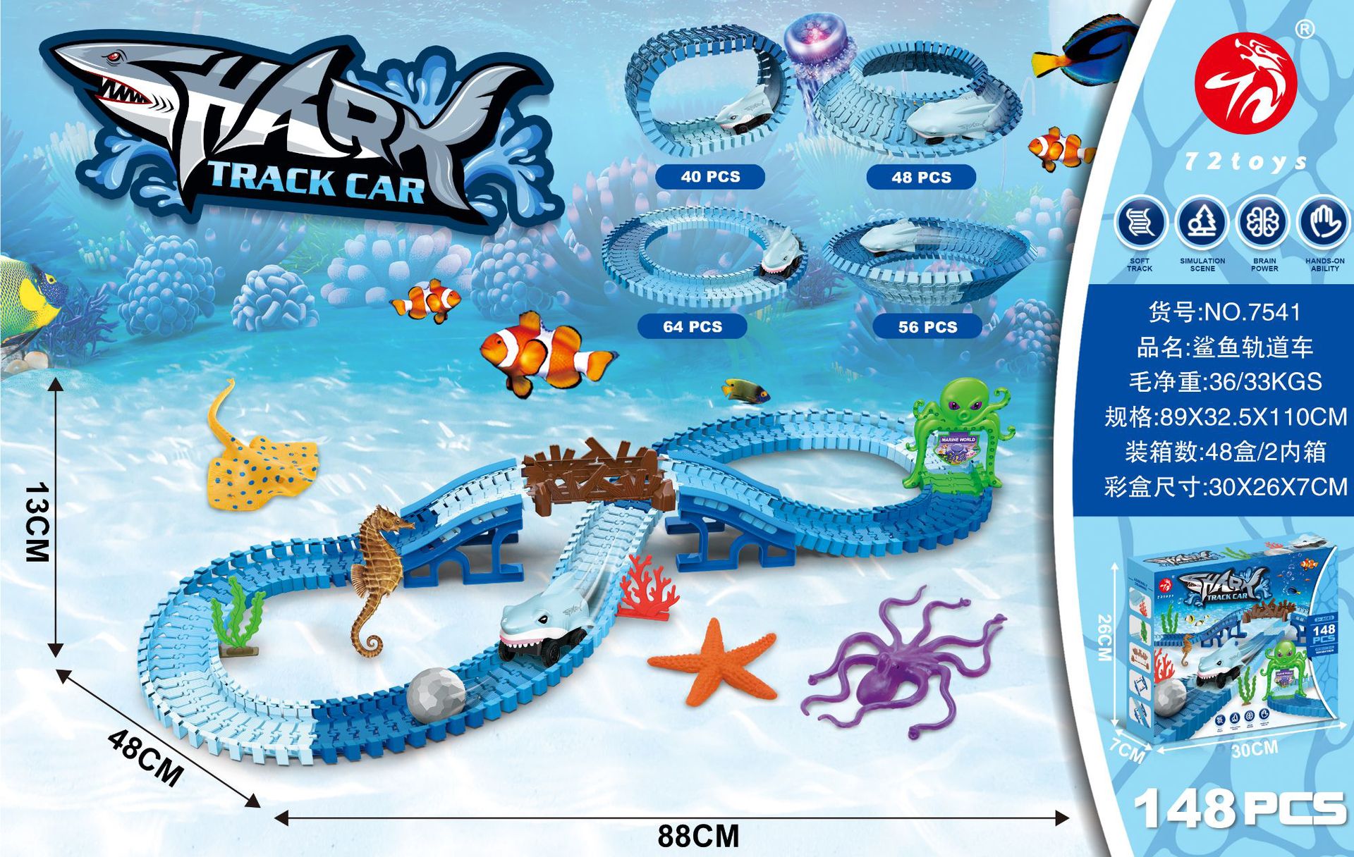 국경 간 전기 상어 트랙 자동차 놀이 공 괴물 자동차 교육 DIY 세트 조립 해양 트랙 어린이 장난감스토어 가기
