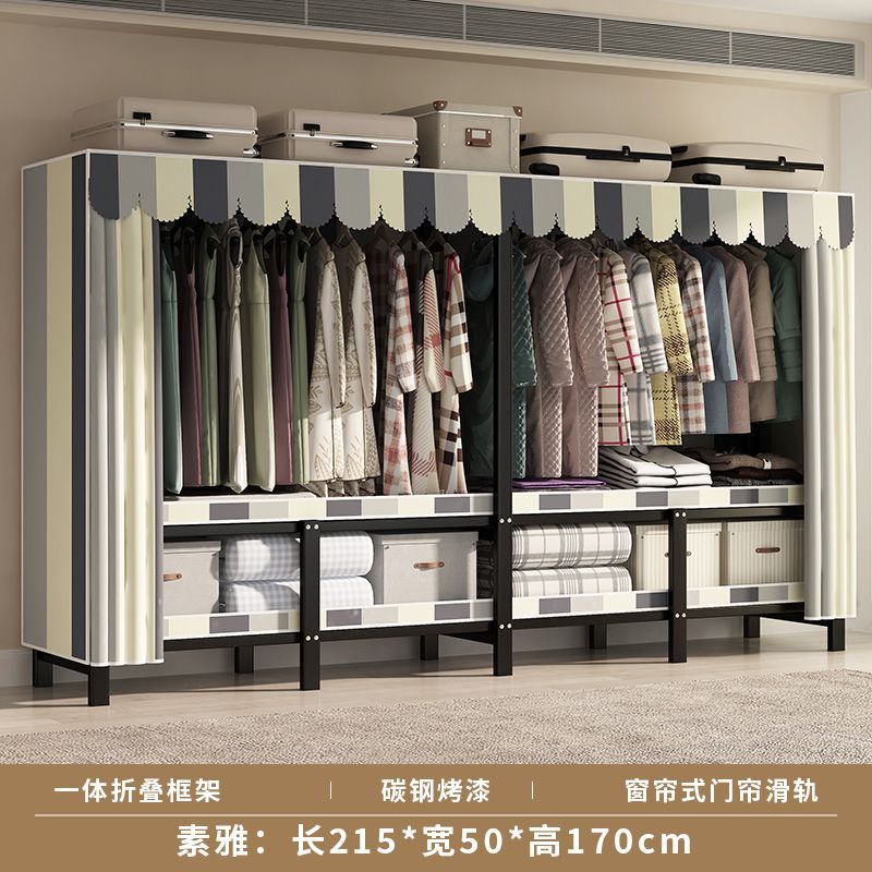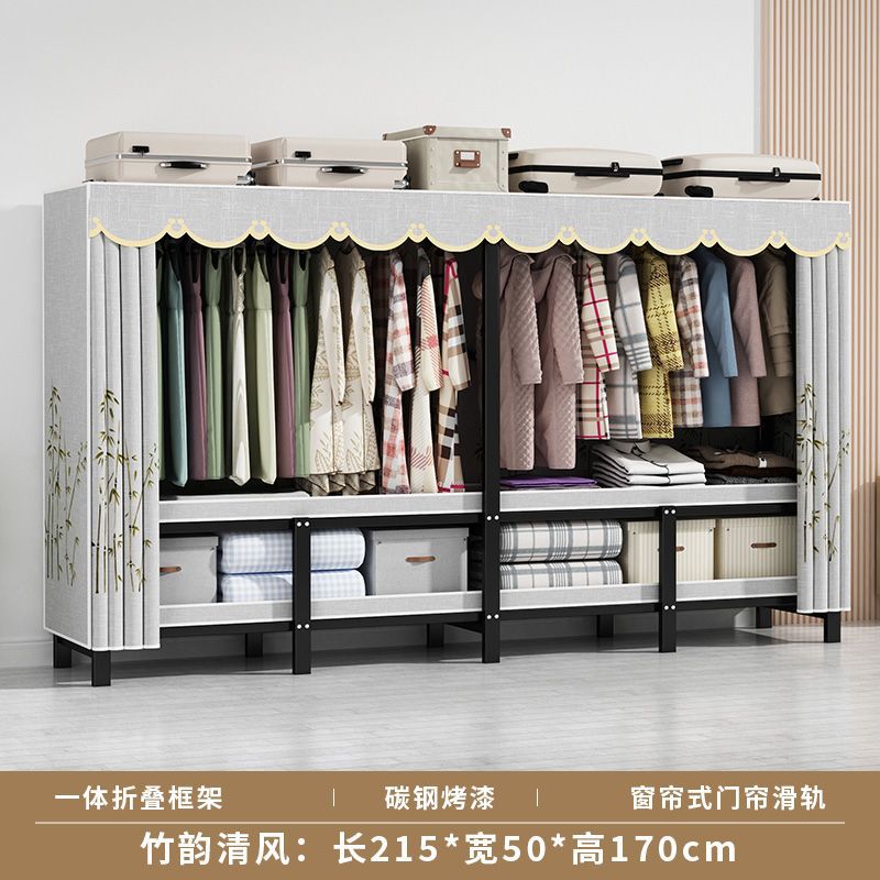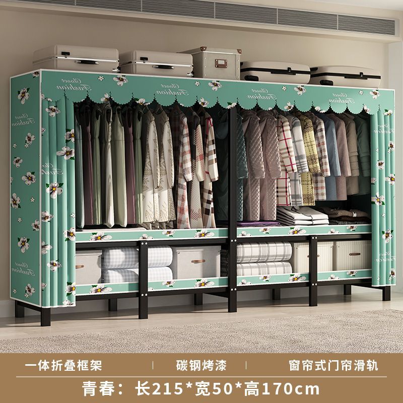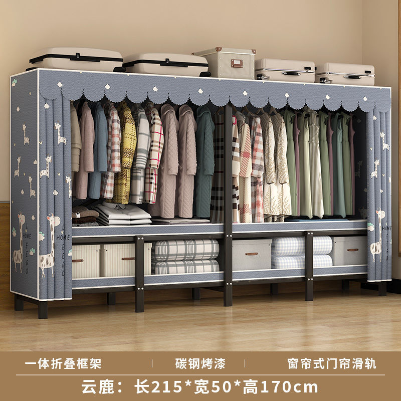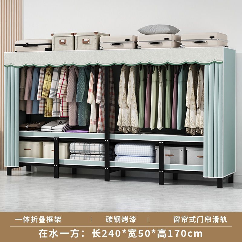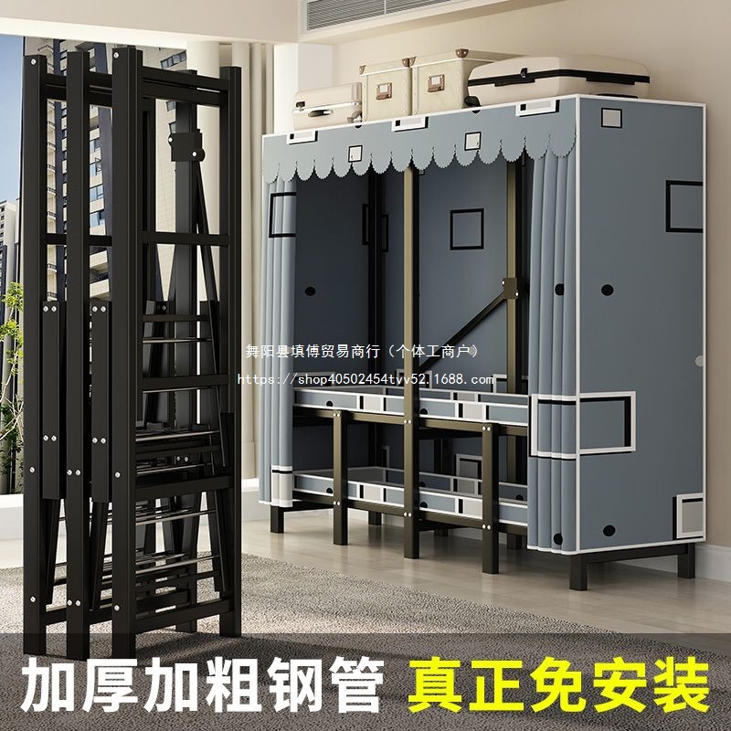 침실 가정용 천 옷장 강철 파이프 두꺼운 강화 접이식 옷장 임대 주택 간단한 옷장