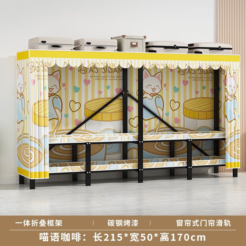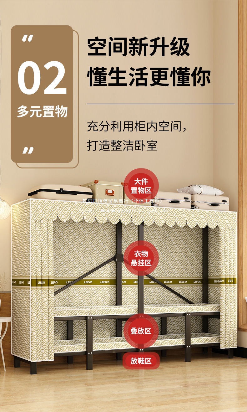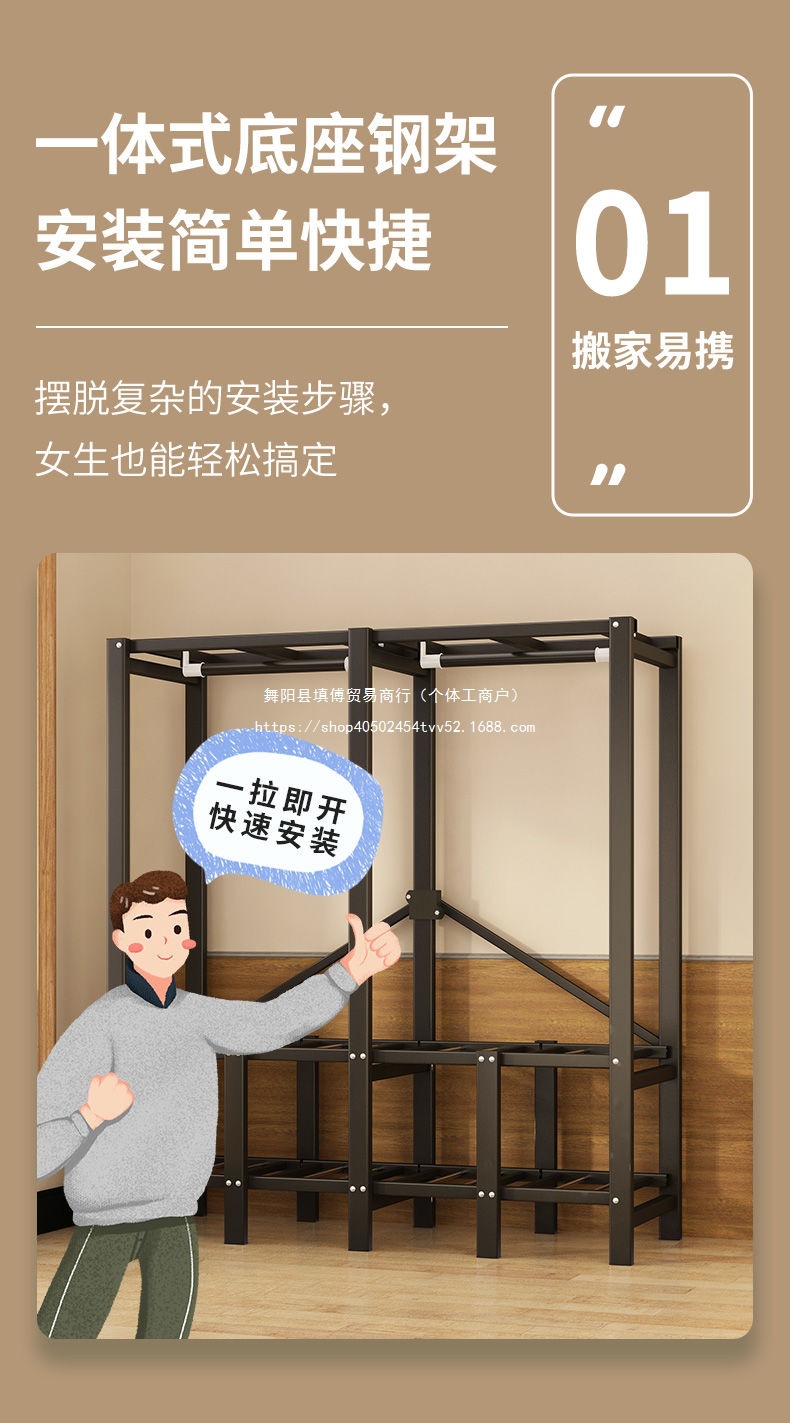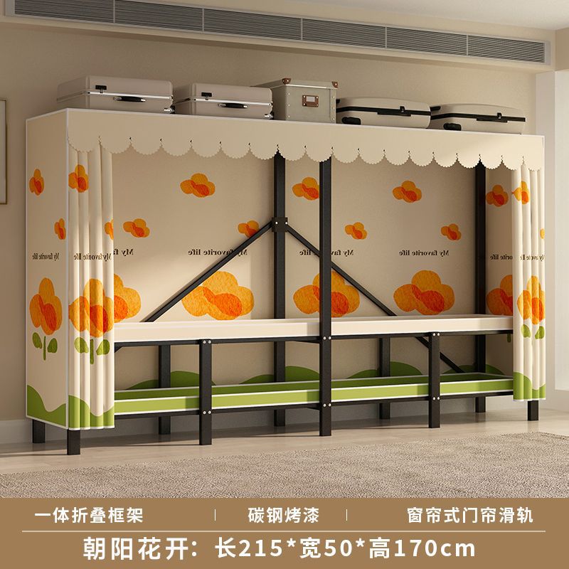 침실 가정용 천 옷장 강철 파이프 두꺼운 강화 접이식 옷장 임대 주택 간단한 옷장