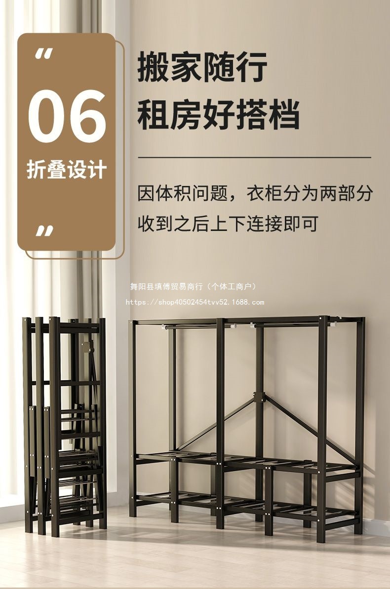 침실 가정용 천 옷장 강철 파이프 두꺼운 강화 접이식 옷장 임대 주택 간단한 옷장스토어 가기