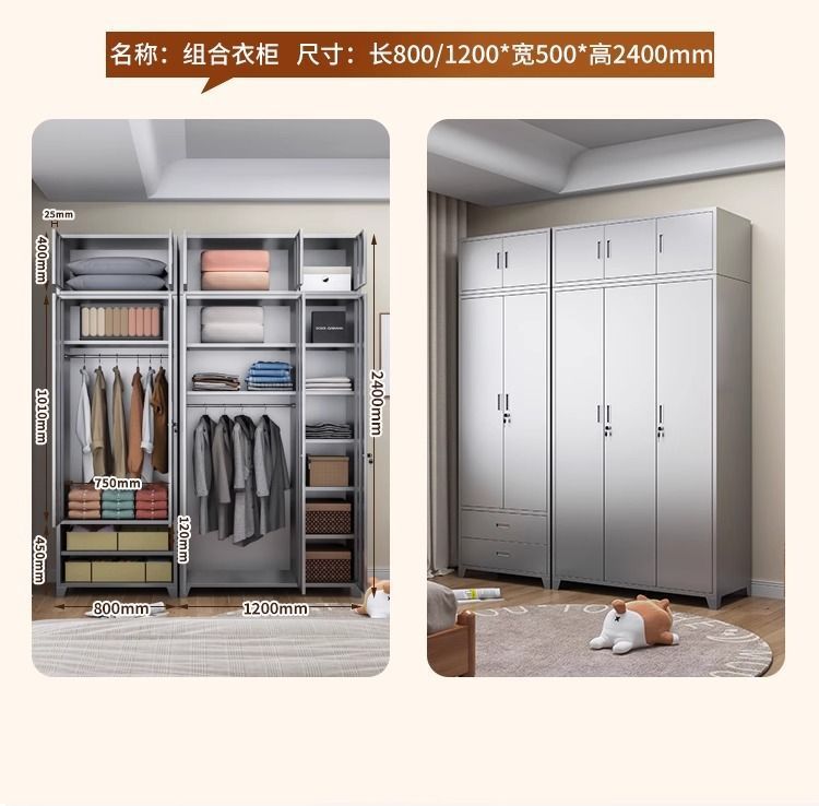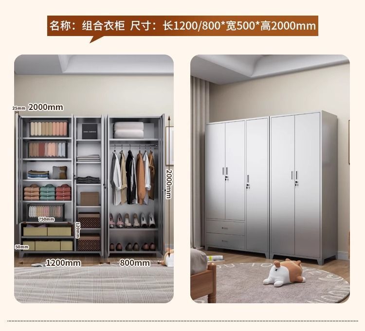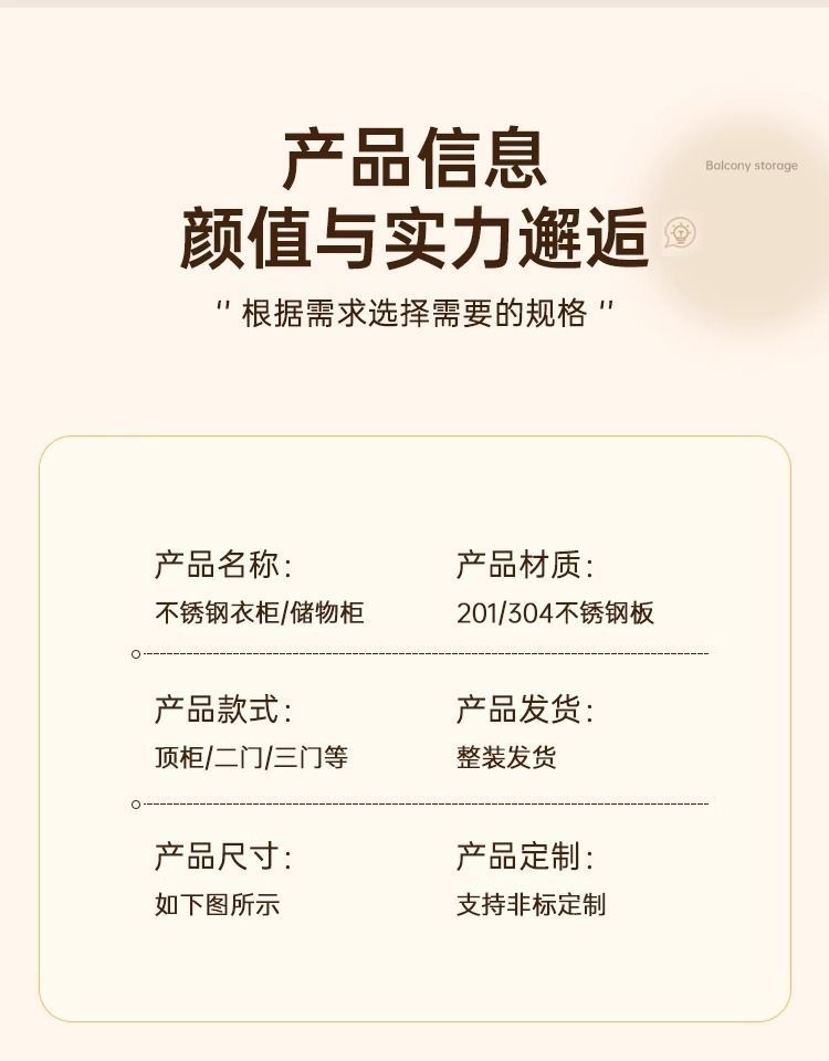 304 두꺼운 스테인레스 스틸 다층 의류 보관 캐비닛 방수 및 태양 보호 발코니 캐비닛 홈 침실 보관 캐비닛