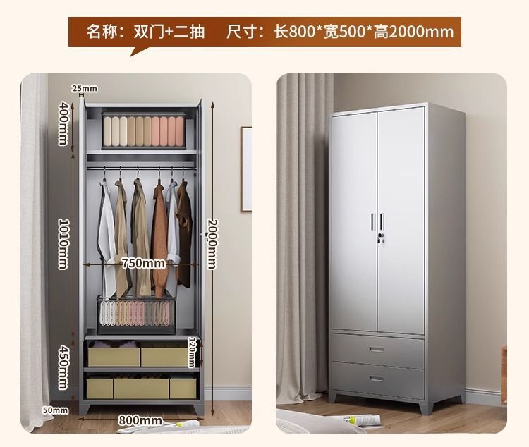 • 매우 두꺼운 2도어 스테인레스 스틸 옷장 2단 보드 304