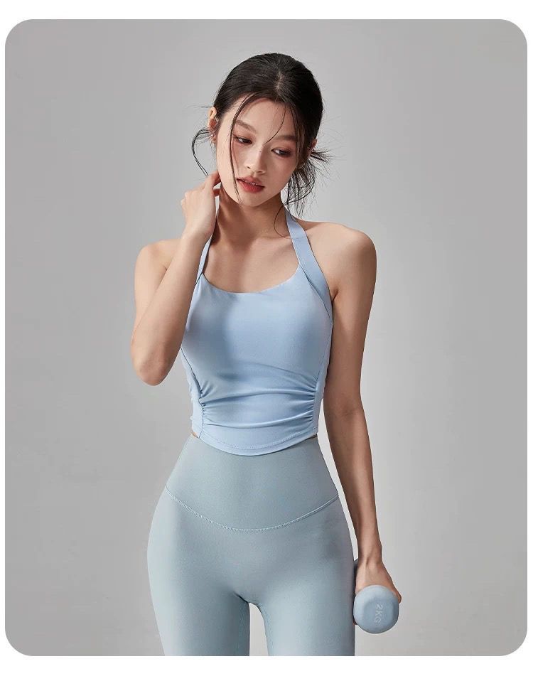 피트니스 소녀 올인원 스포츠 브라, 충격 방지 푸쉬업 아우터 런닝 브라, 아름다운 등 걸이 요가 조끼