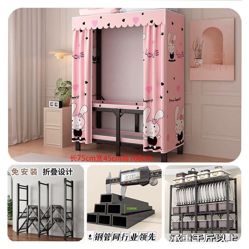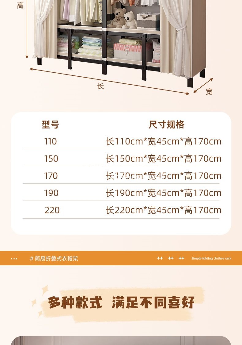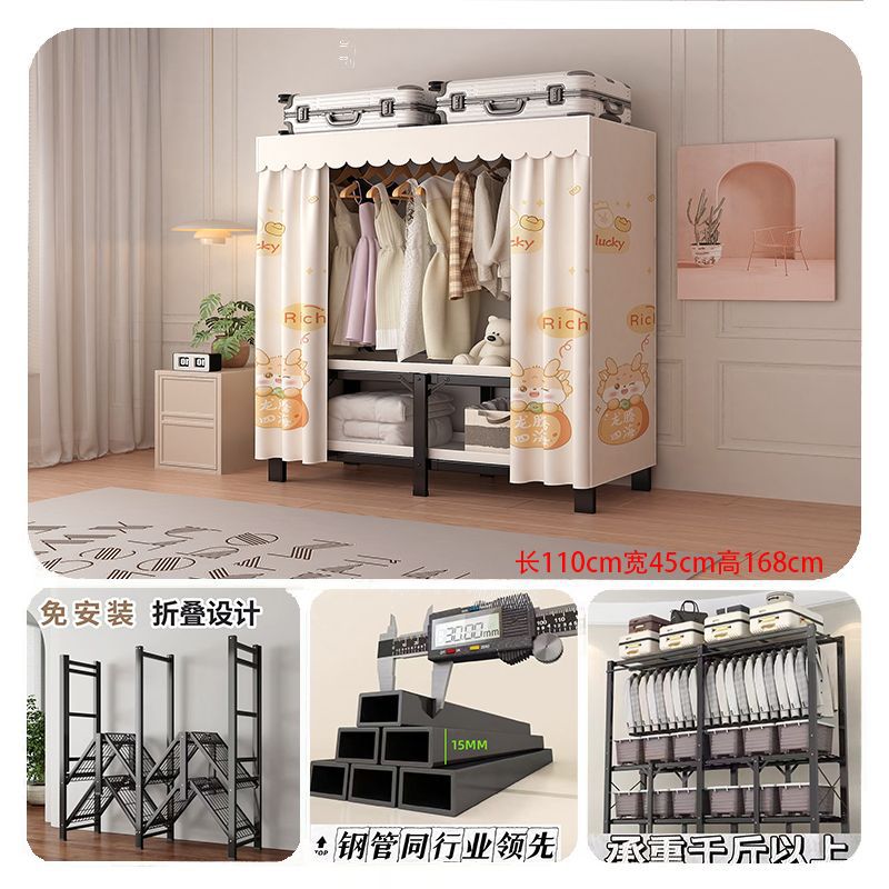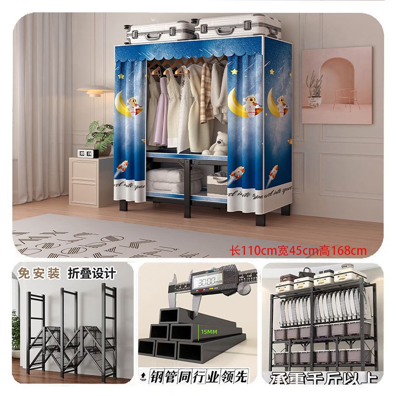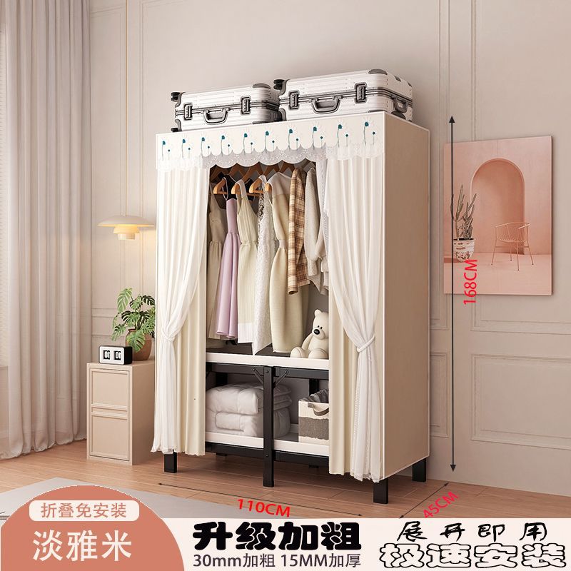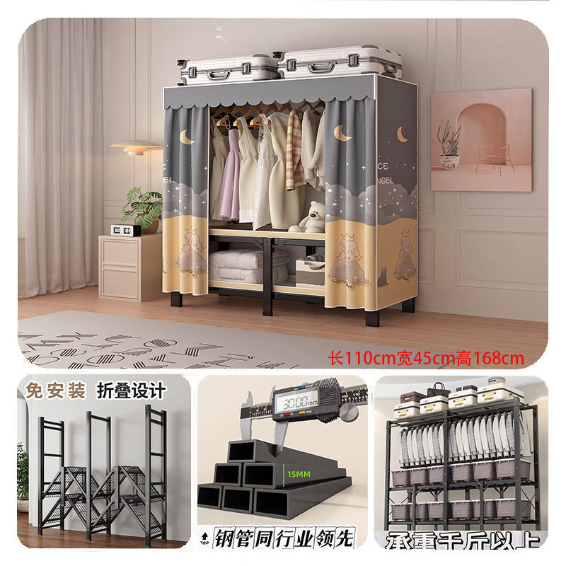 접이식 설치가 필요 없는 옷장, 전체 강철 프레임, 두꺼운 강철 파이프, 두꺼운 강화 지퍼, 완전 밀폐형, 곰팡이 방지 및 방진 침실스토어 가기