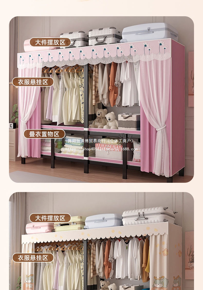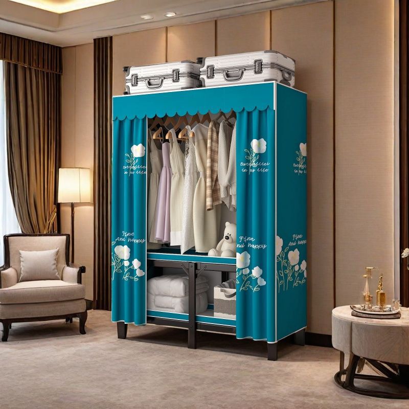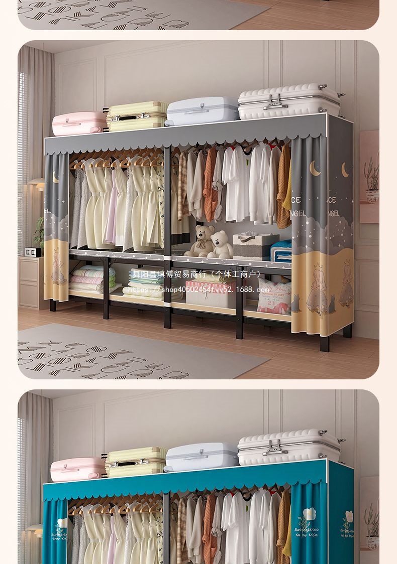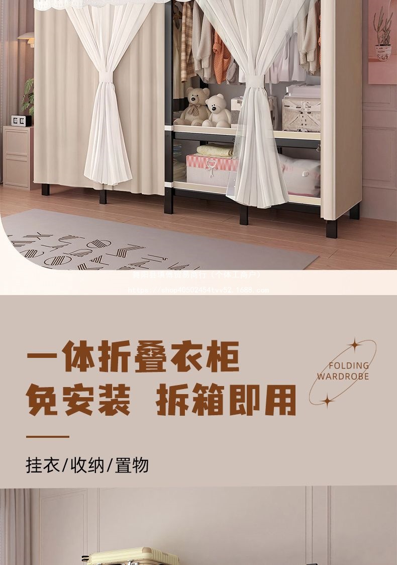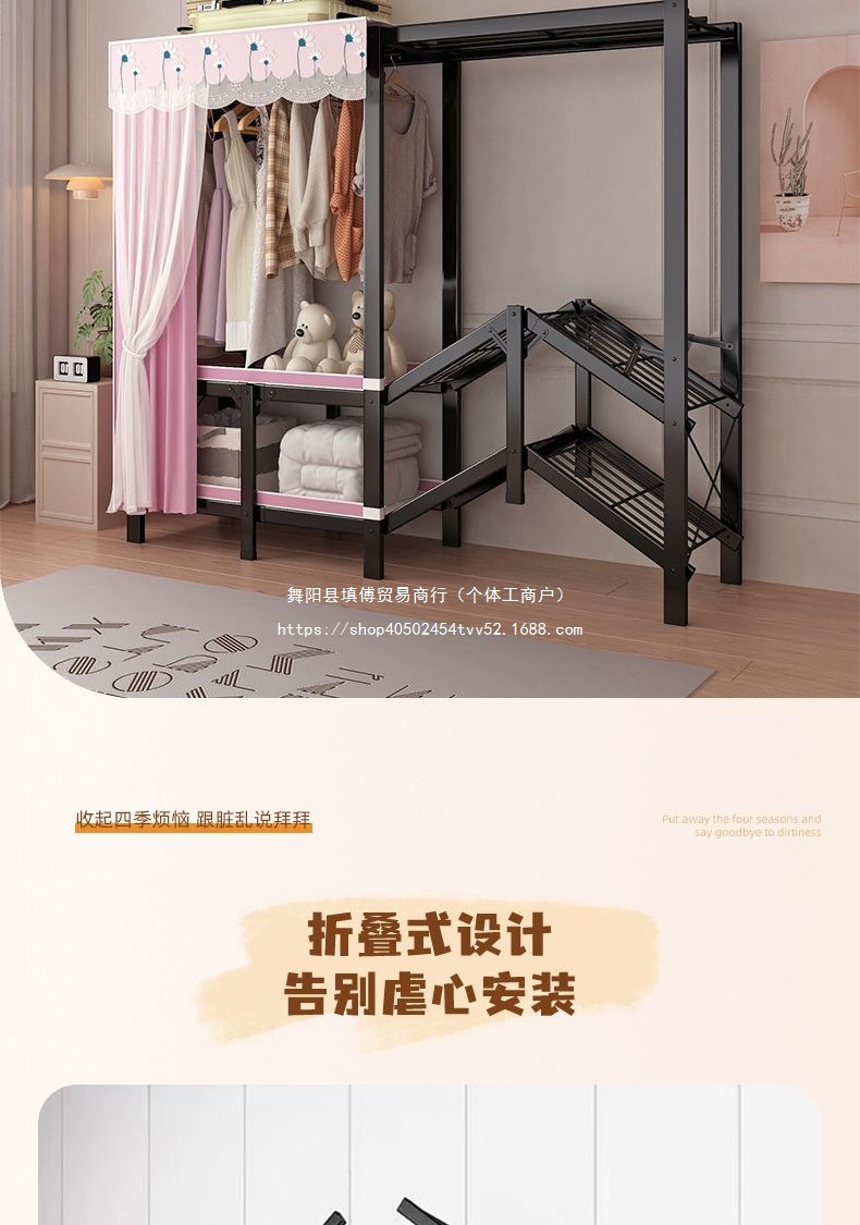 접이식 설치가 필요 없는 옷장, 전체 강철 프레임, 두꺼운 강철 파이프, 두꺼운 강화 지퍼, 완전 밀폐형, 곰팡이 방지 및 방진 침실스토어 가기