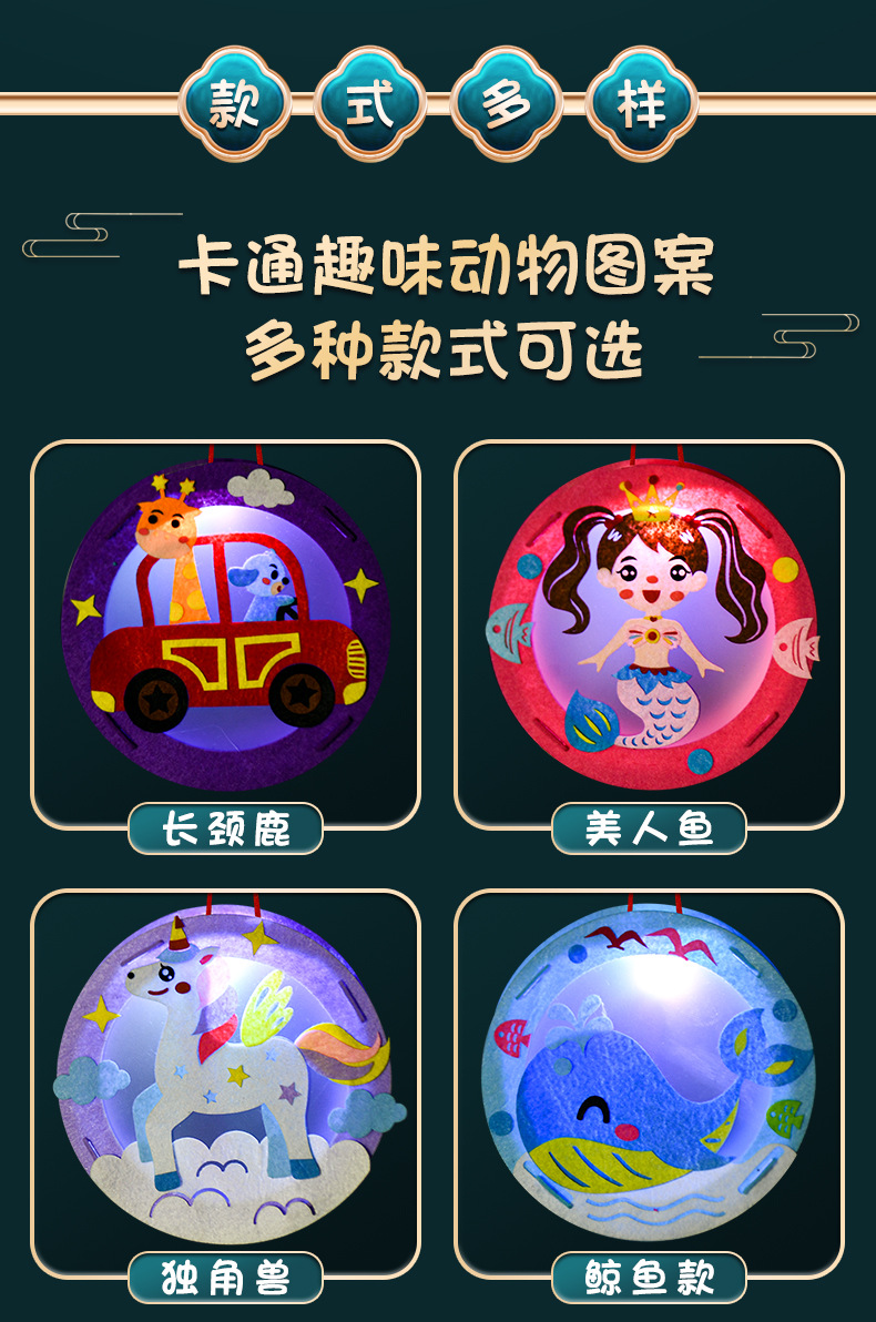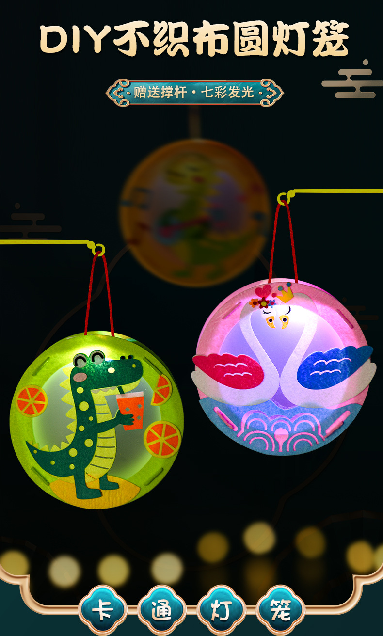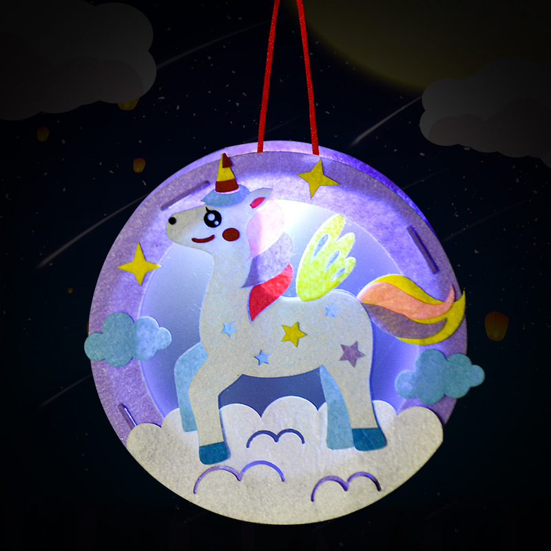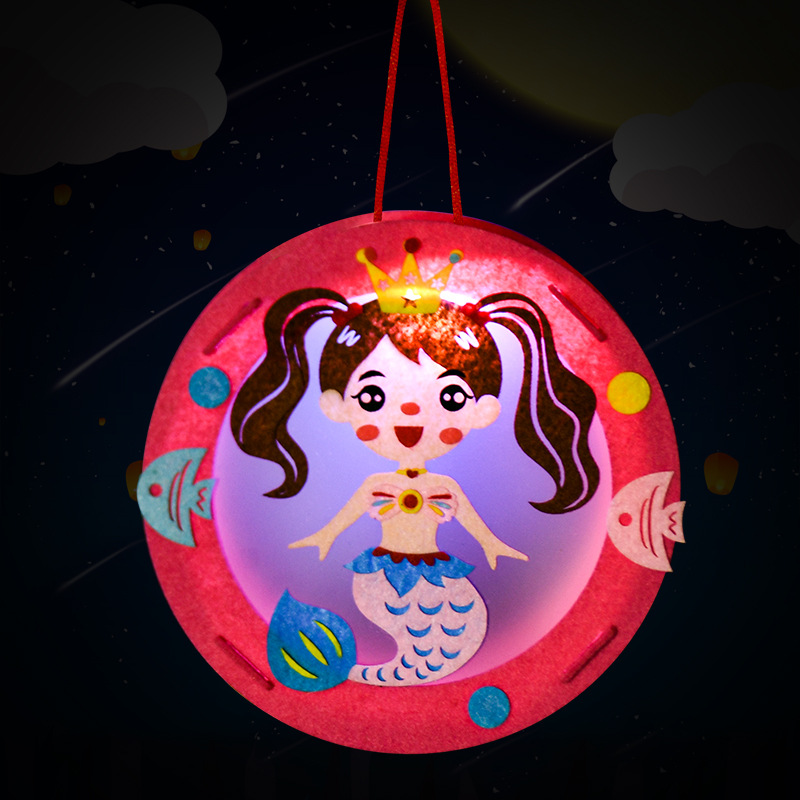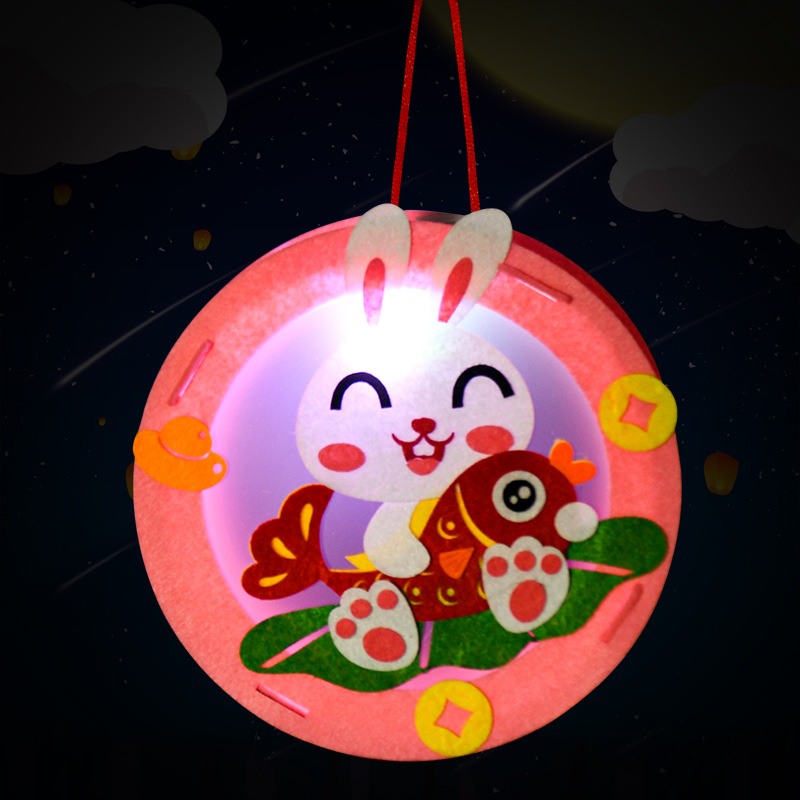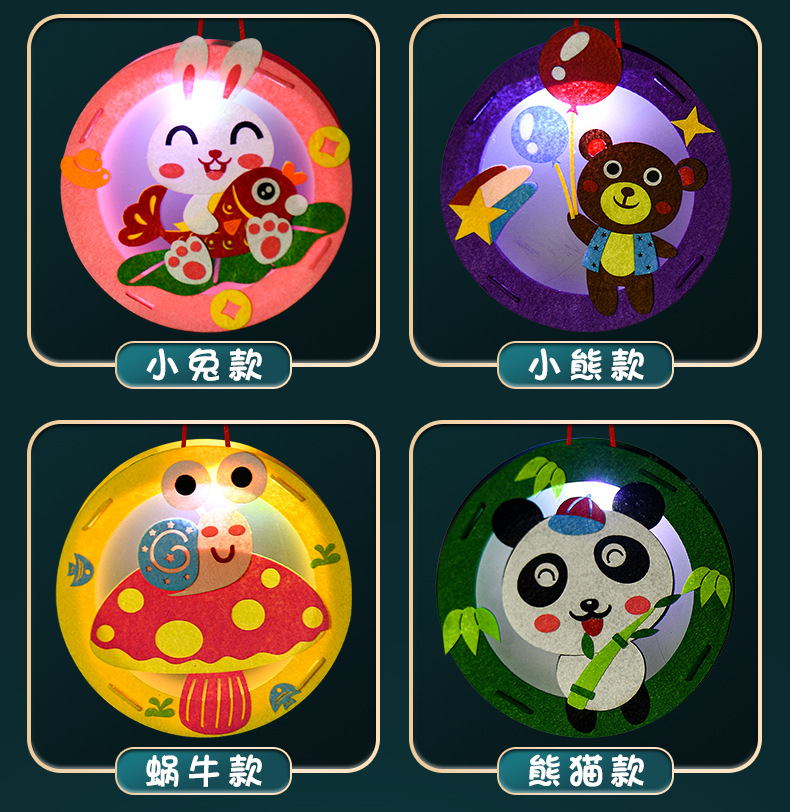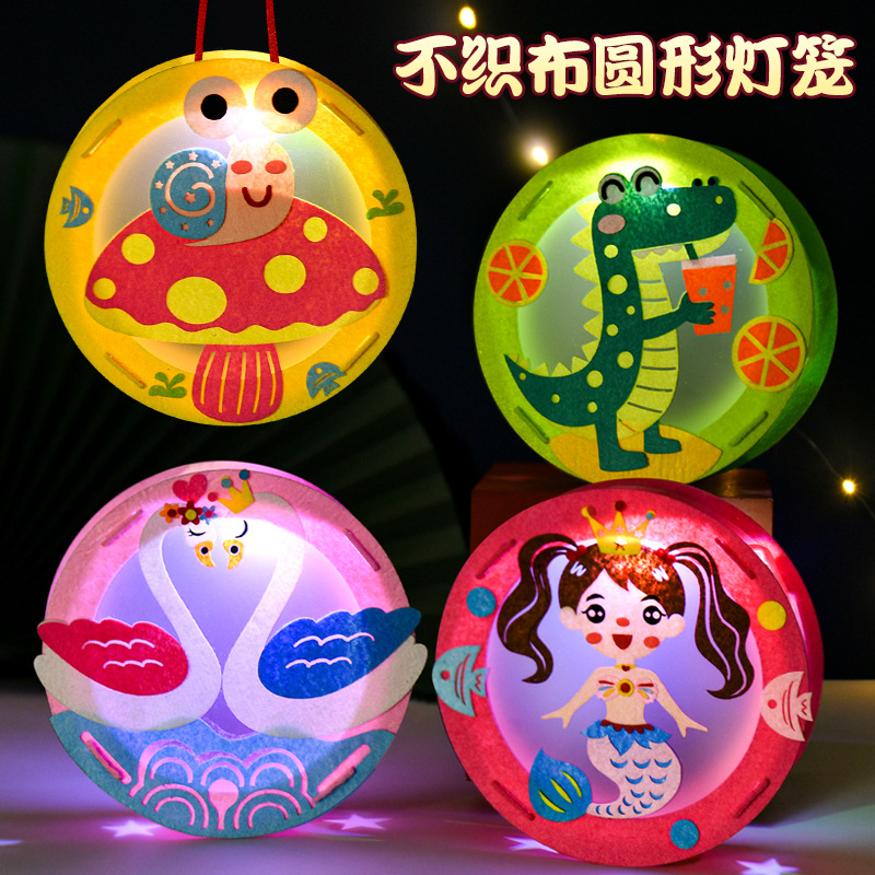 새로운 중추절 랜턴 어린이 만화 부직포 diy 수제 유치원 빛나는 휴대용 랜턴 재료 패키지