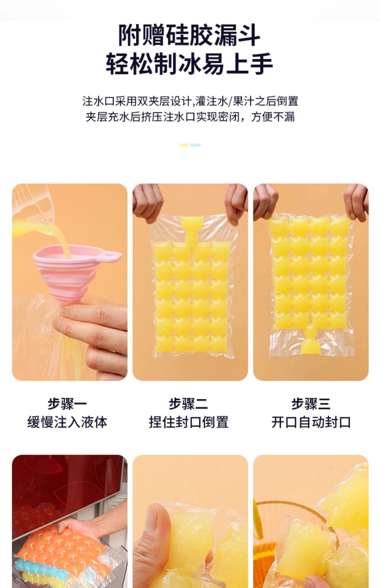 • 자체 밀봉 찢을 수 있는 얼음 트레이 백 [2400 그리드] 100개 + 깔때기 1개