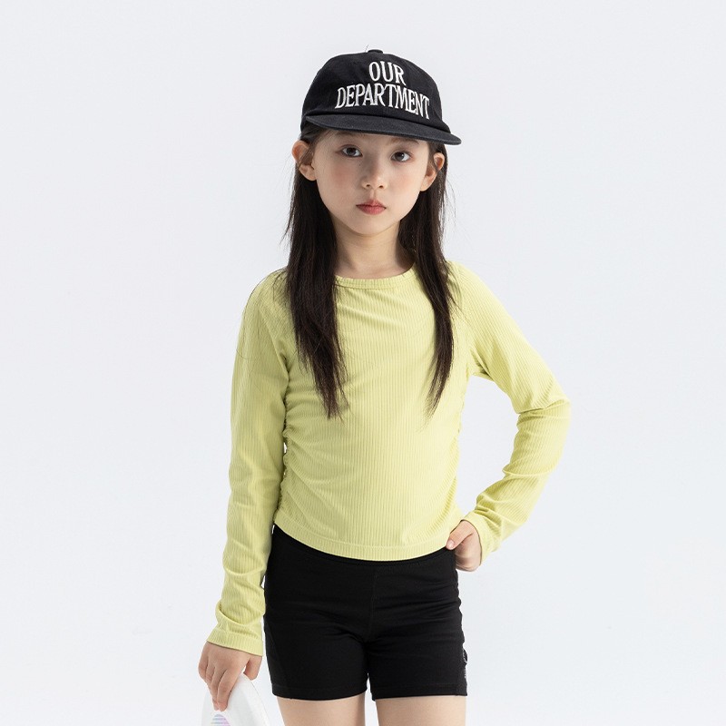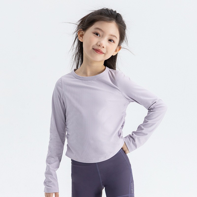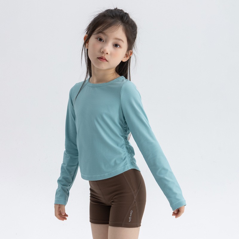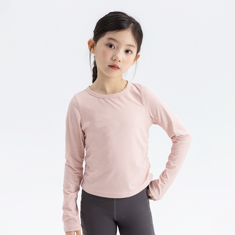 여자 스트레치 스포츠 긴팔 티셔츠 2025 가을 새로운 어린이 룰루 스타일 슬림 라운드 넥 바닥 셔츠 탑