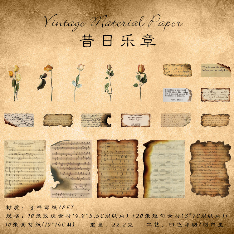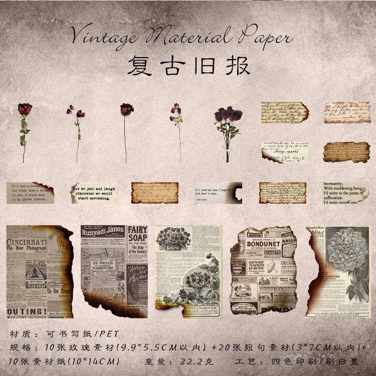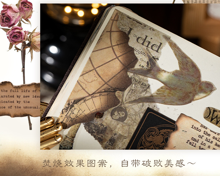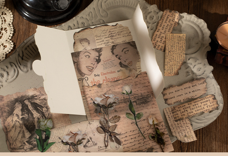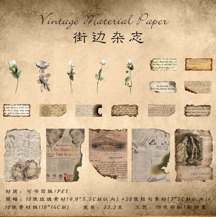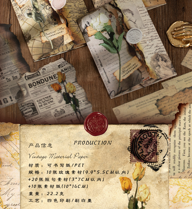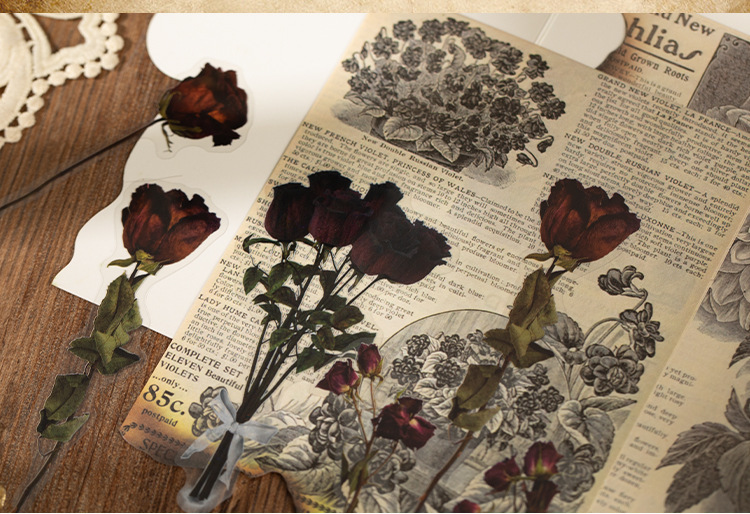 고대의 낭만적인 빈티지 소재 종이 장미 영어 수첩 배경 장식으로 메모를 쓸 수 있는 메모지스토어 가기