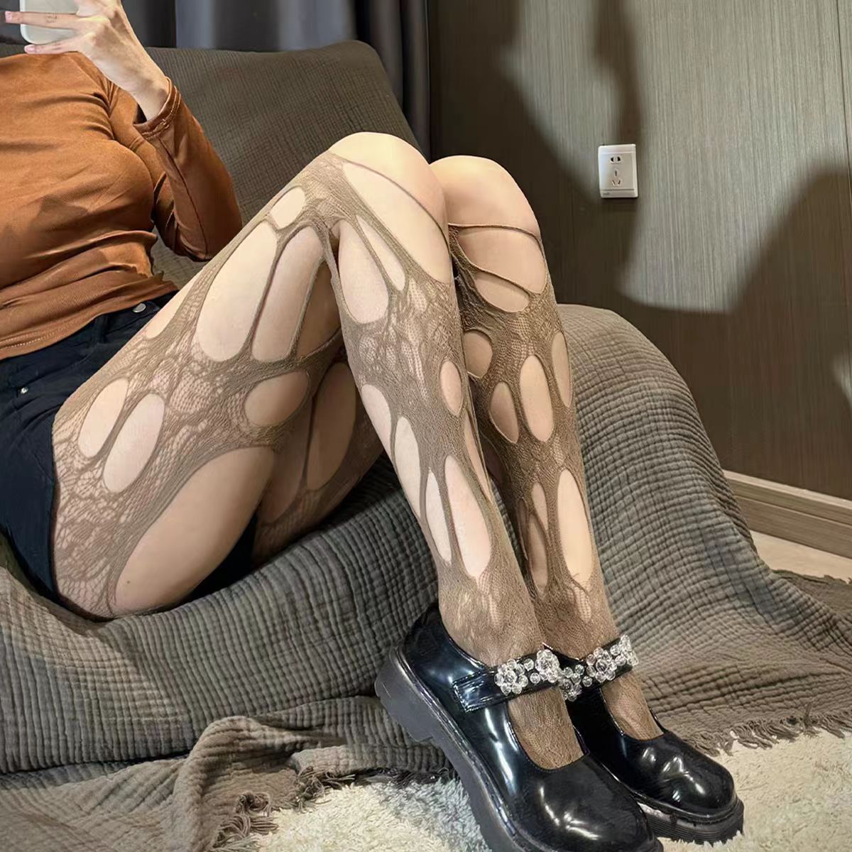 Y2k 하위 문화 중공 찢어진 스타킹 블랙 고딕 할로윈 Fishnet 양말 밀레니엄 핫 소녀 팬티 스타킹 여성용