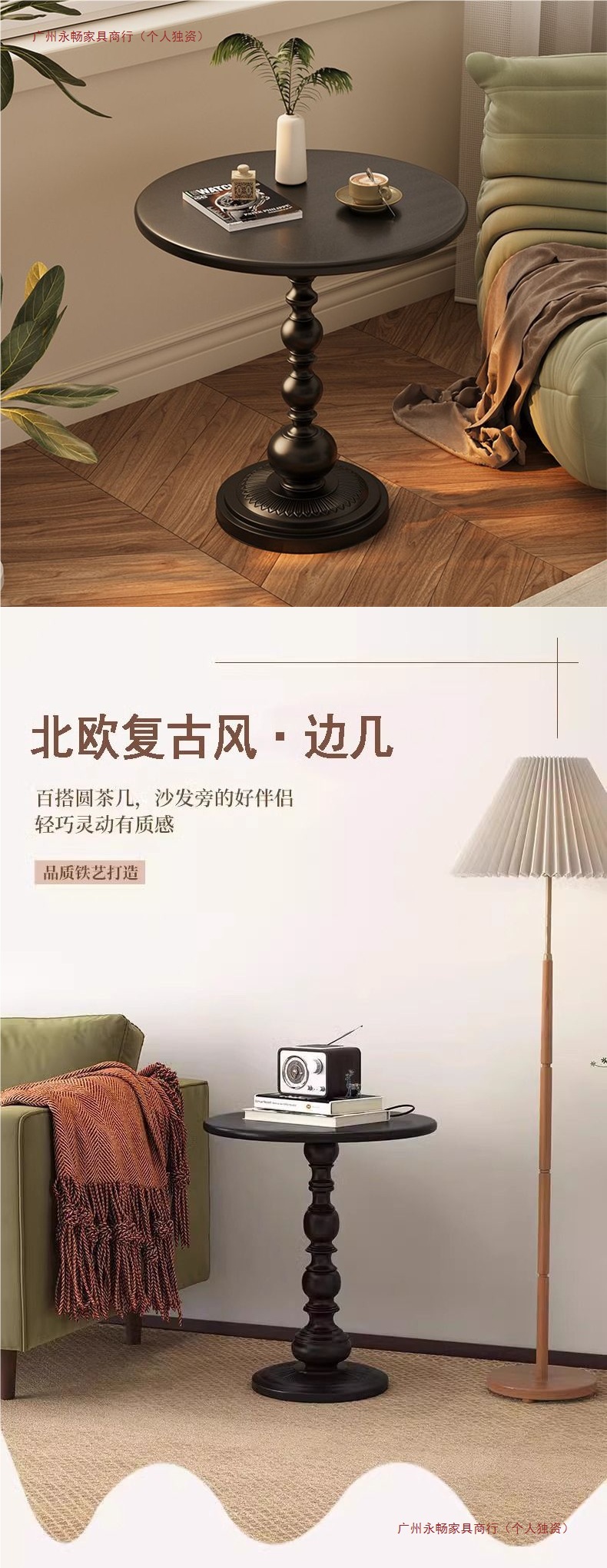 거실 홈 작은 커피 테이블 사이드 테이블 복고풍 코너 테이블 철제 침대 옆 발코니 작은 원형 테이블 복고풍 침대 옆 테이블 사이드 테이블