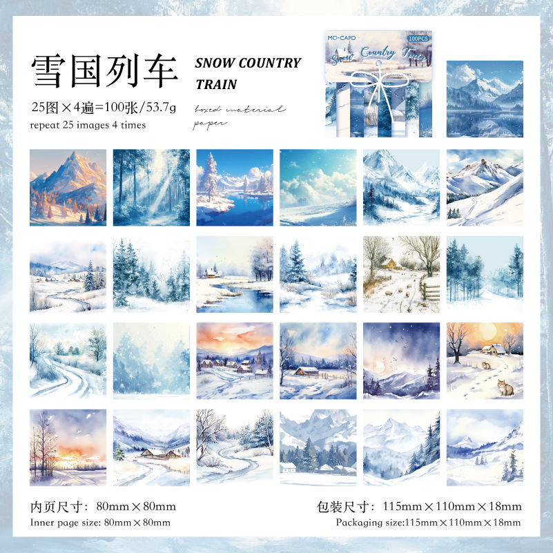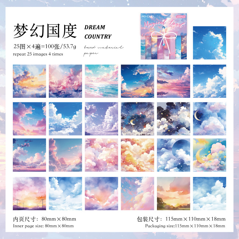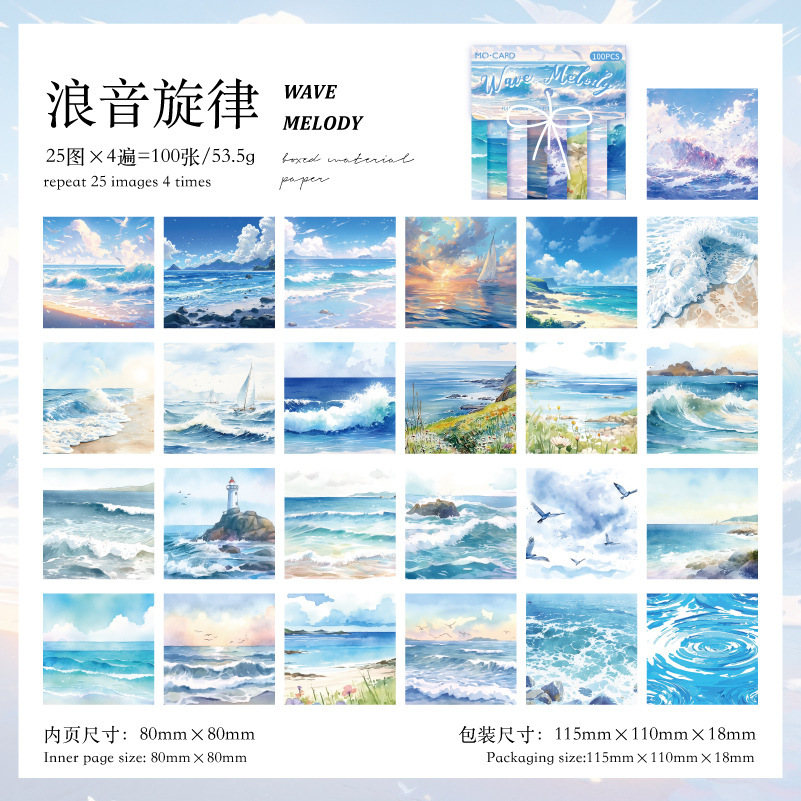 모모 자연 조경 매뉴얼 시리즈 박스형 재료 종이 자연 풍경 핸드북 장식 재료 100장 6가지 스타일