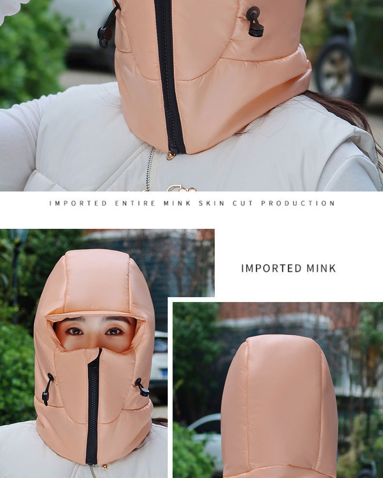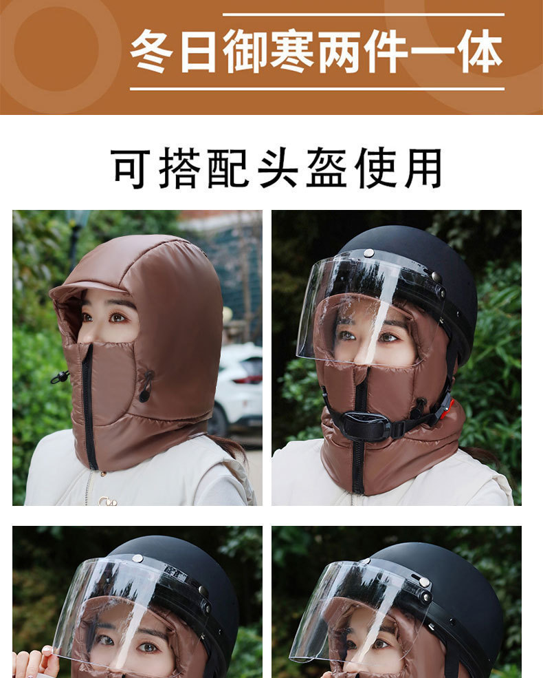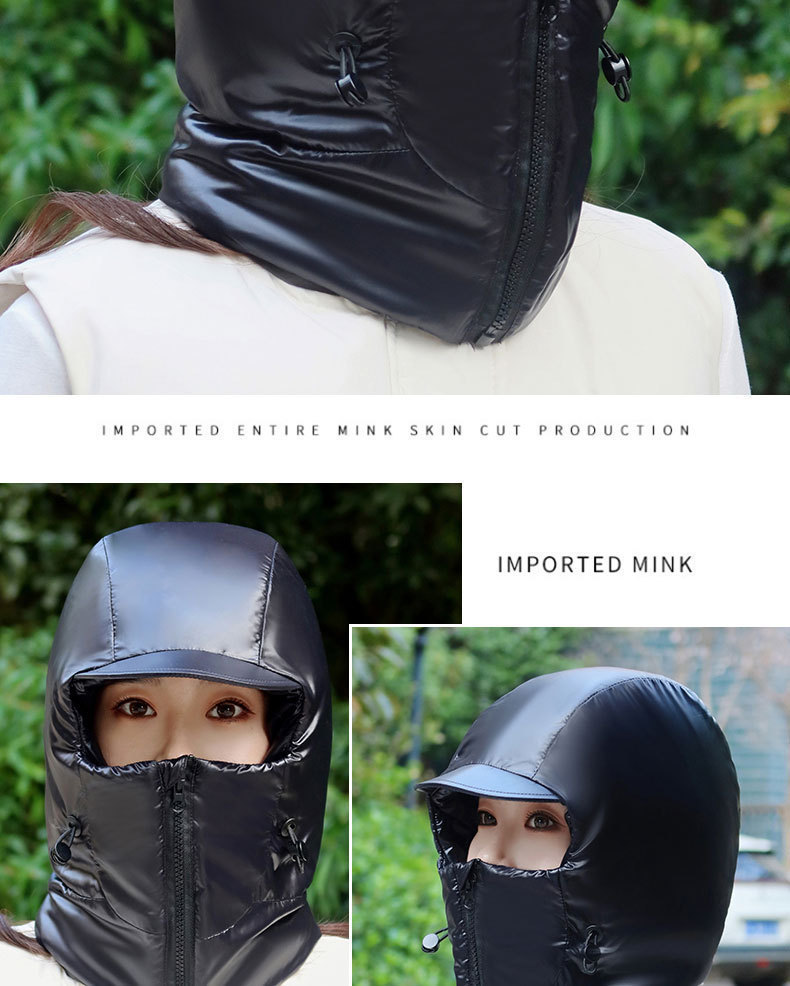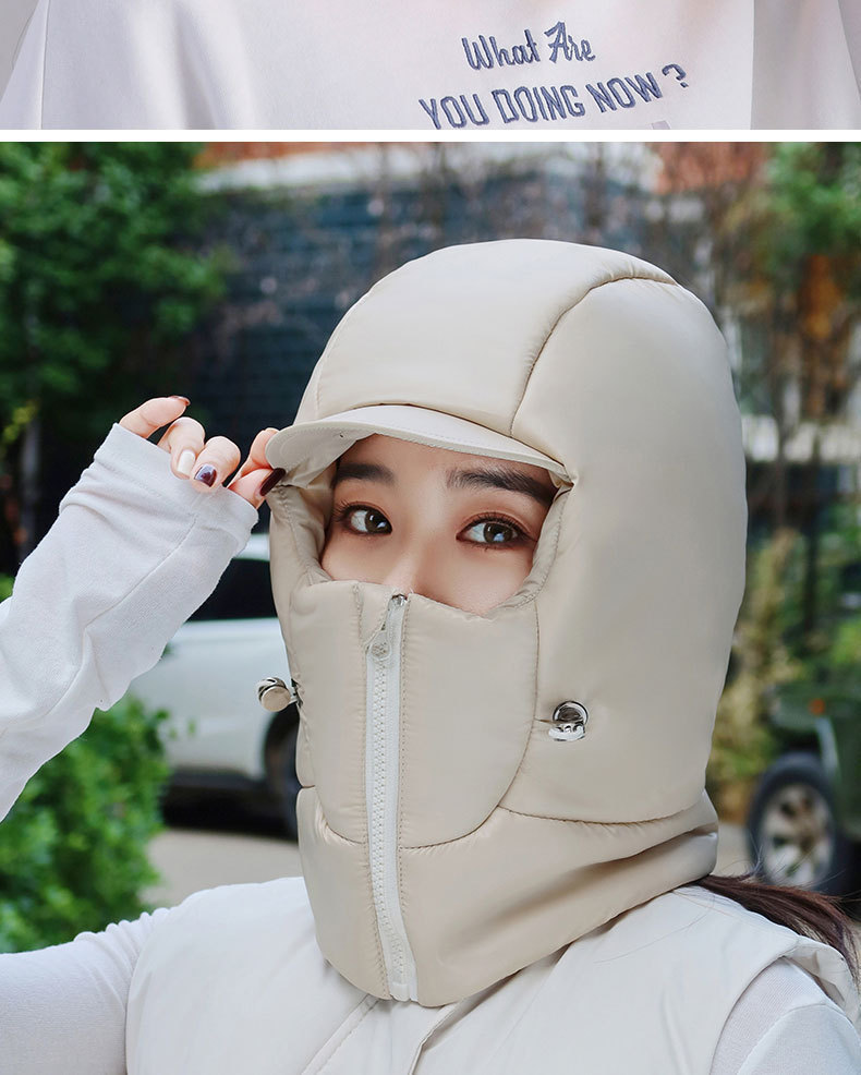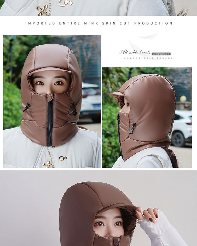 여성용 겨울 따뜻한 모자, 전기 자전거 타기, 얼굴 보호 및 귀 보호, 두꺼운 레이펑 모자, 야외 방한 및 방수 다운 모자스토어 가기