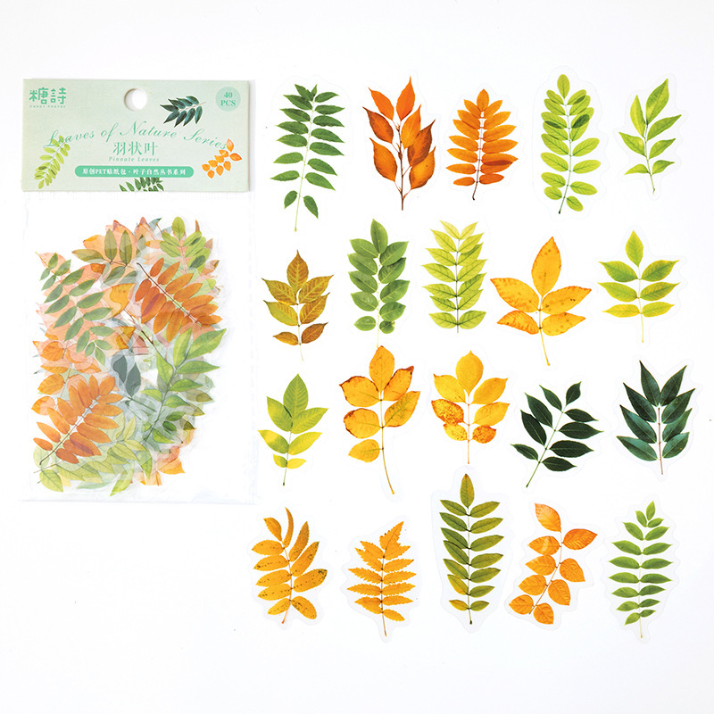 설탕시 나뭇잎 식물 자연 시리즈 시리즈 한 잎으로 가을을 알 수 있는 스티커 팩 INS 핸드북 소재 40개 6가지 스타일스토어 가기