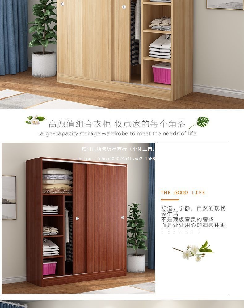 슬라이딩 도어 옷장 홈 침실 간단한 조립 임대 집 경제적이고 실용적인 나무 어린이 작은 캐비닛 옷장 옷스토어 가기