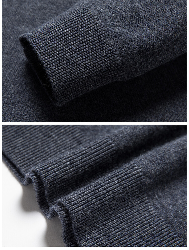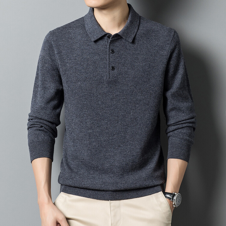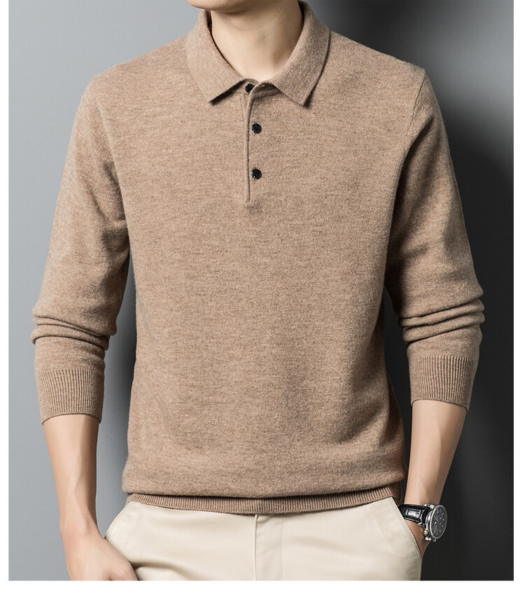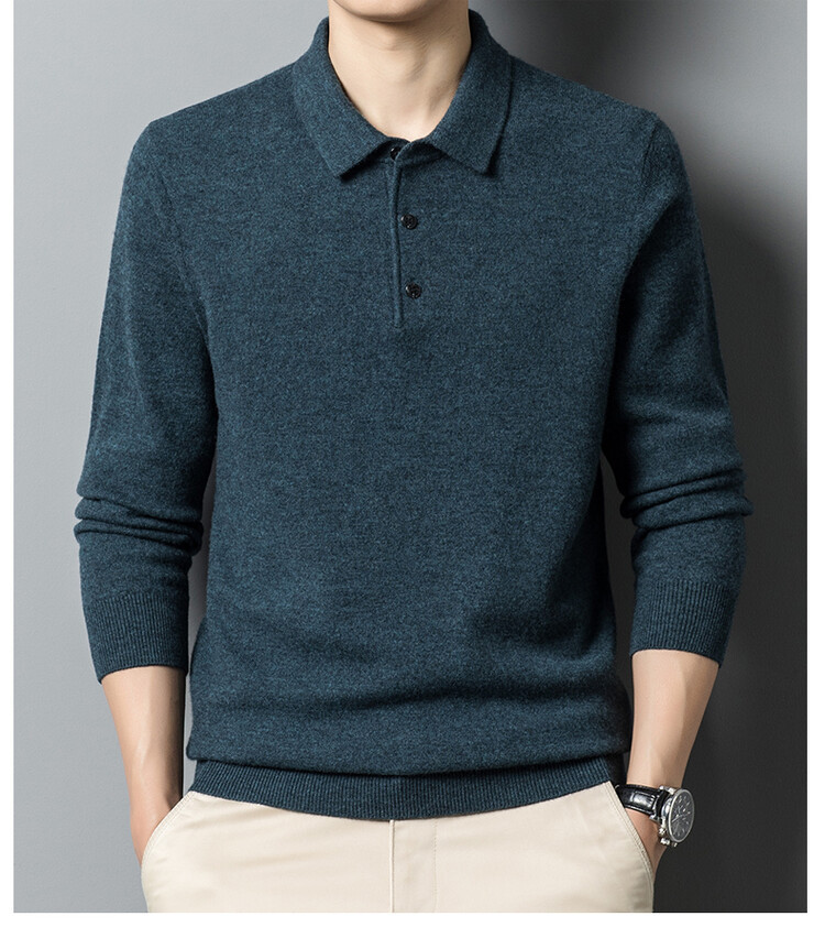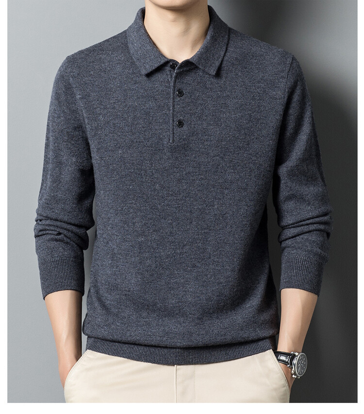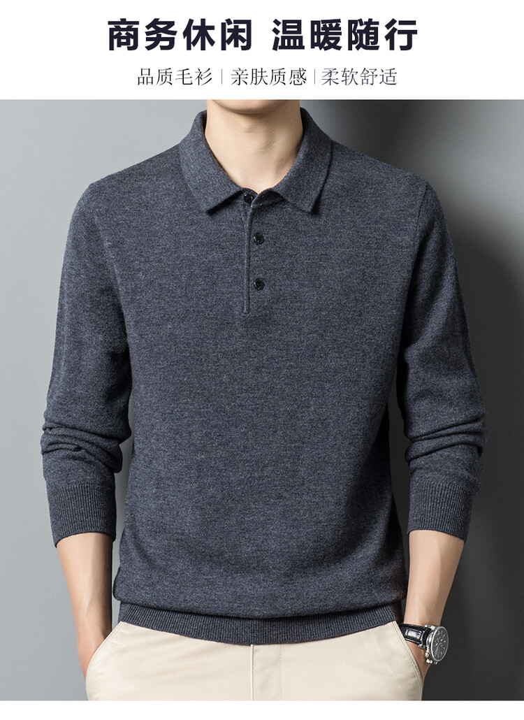 정품 가을 겨울 남성용 100% 순모 스웨터 두꺼운 스웨터 고급 비즈니스 단색 라펠 니트 베이스 셔츠