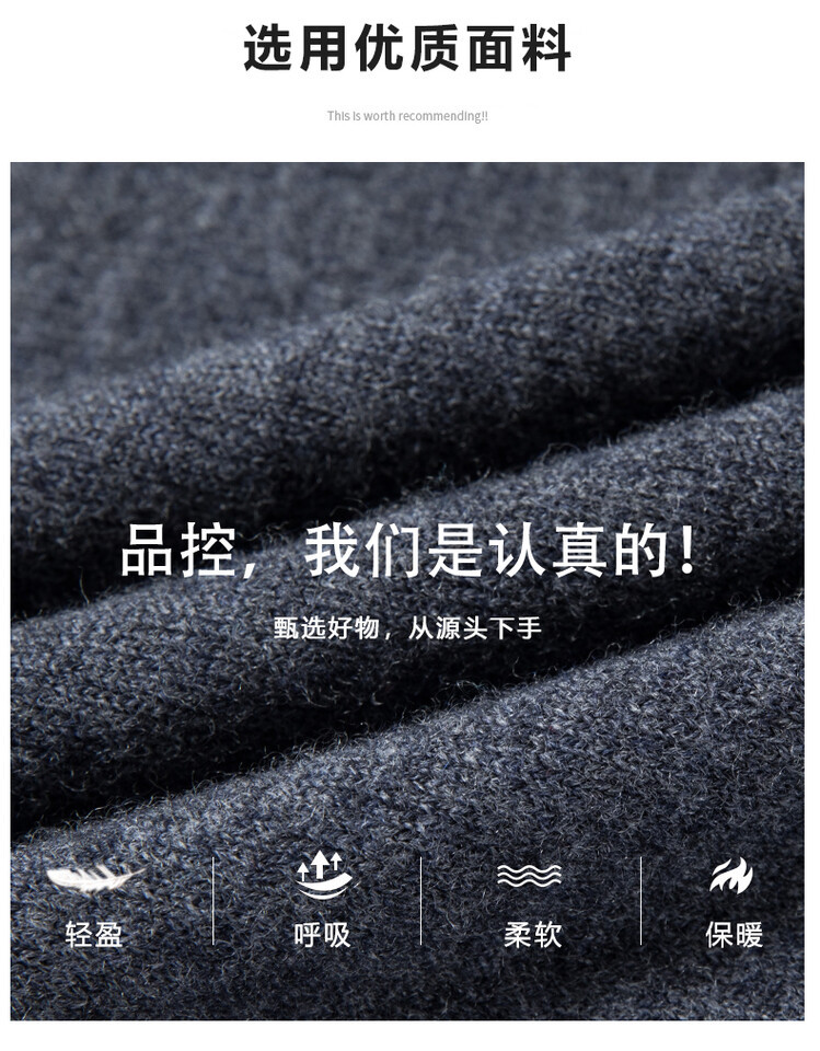 정품 가을 겨울 남성용 100% 순모 스웨터 두꺼운 스웨터 고급 비즈니스 단색 라펠 니트 베이스 셔츠스토어 가기