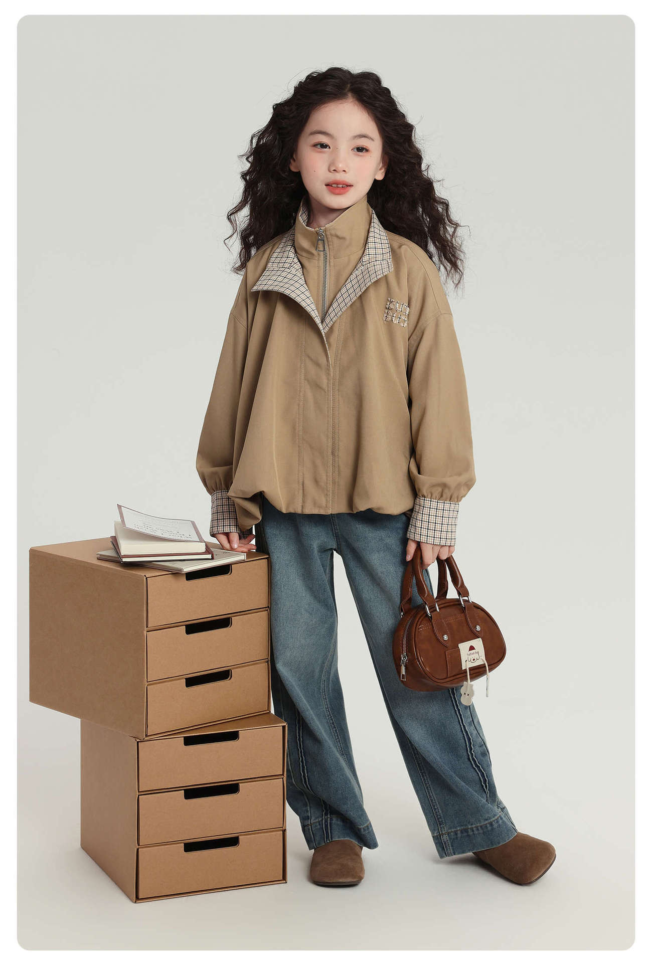 Pudding Haru 아동용 재킷 소녀 대비 색상 탑 2025 가을 신작 아동용 다용도 스탠드 칼라 아메리칸 재킷스토어 가기