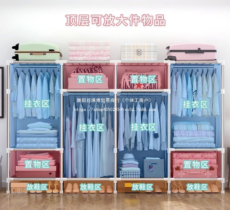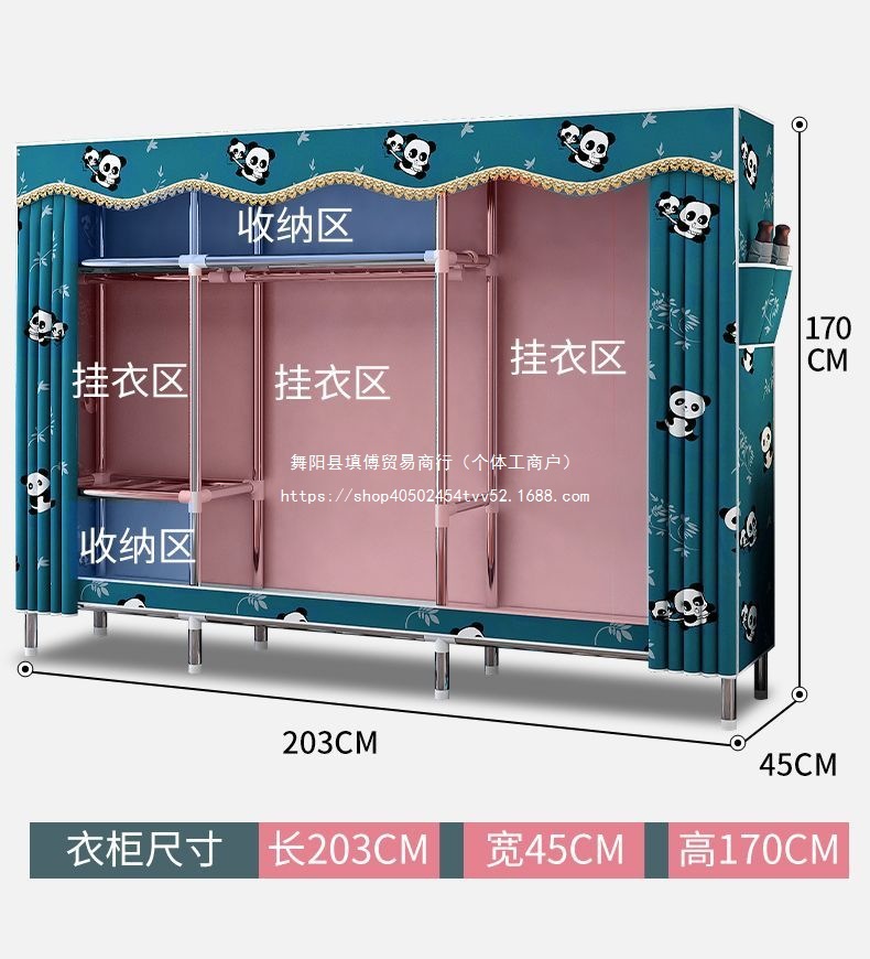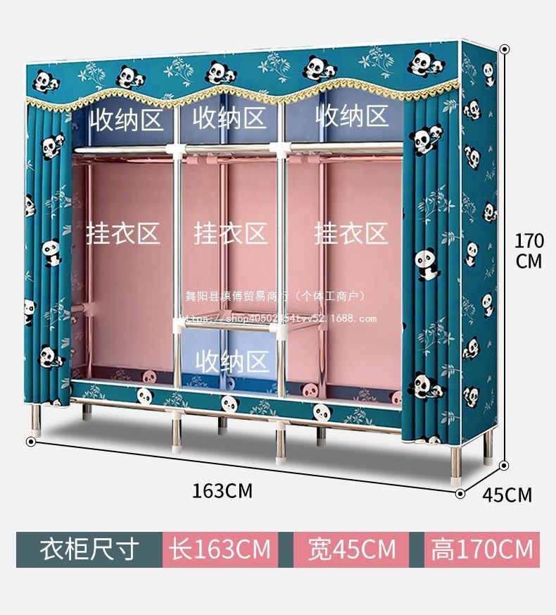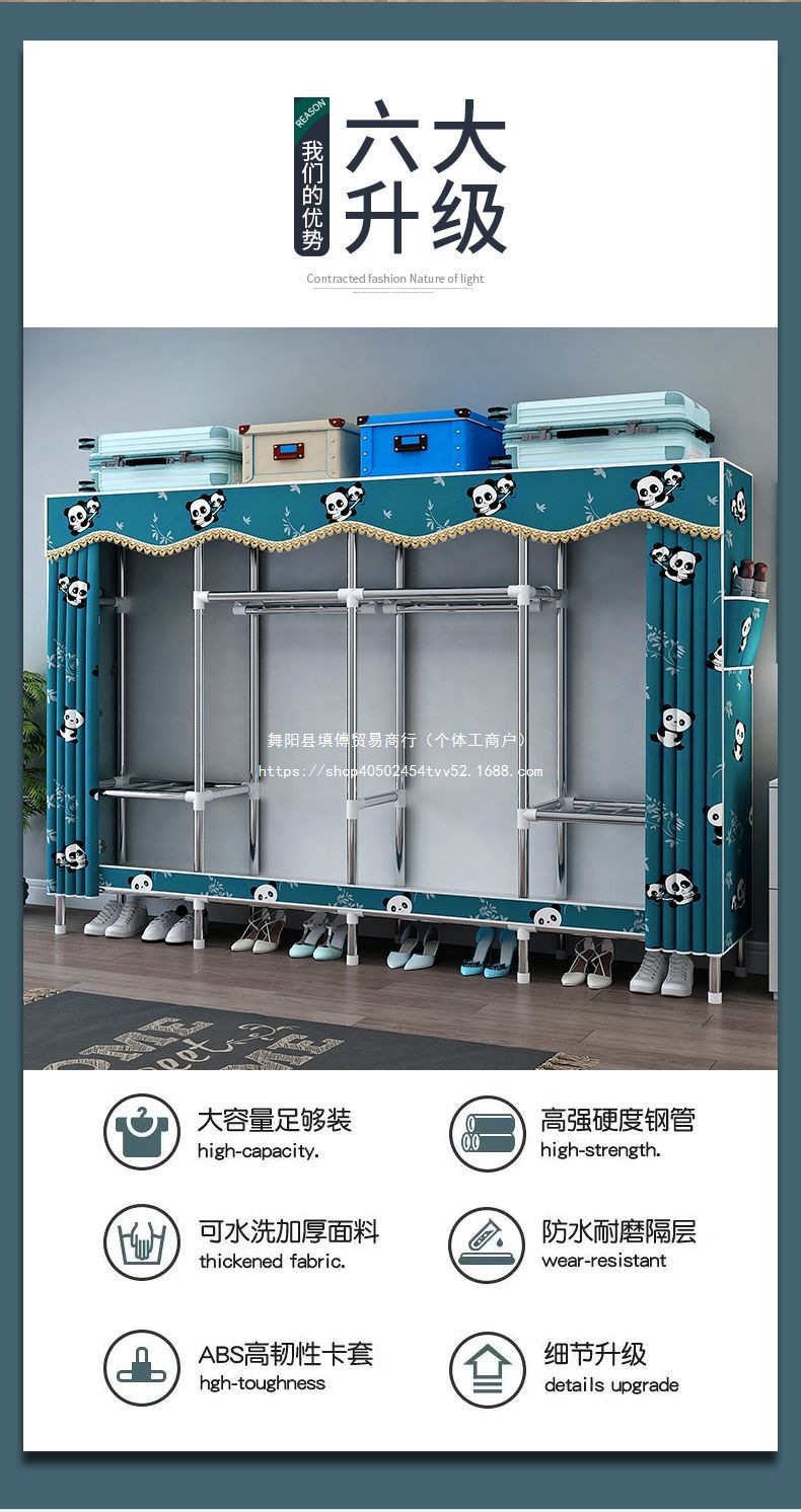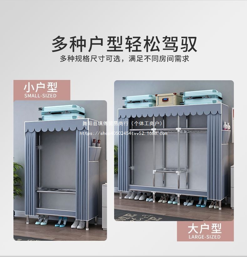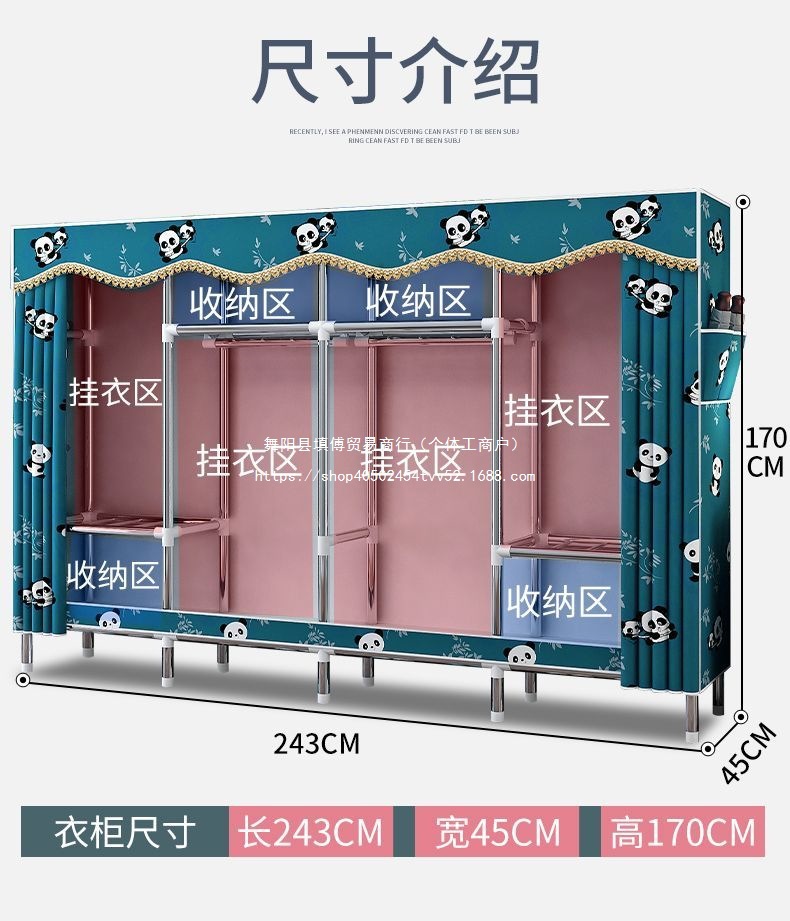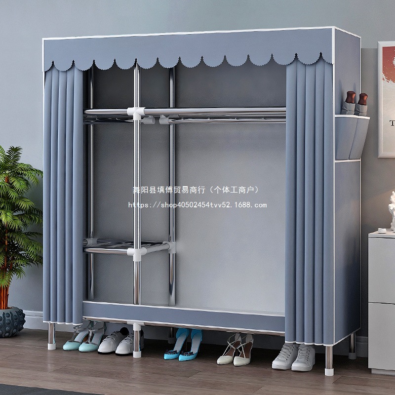 옷장 철제 옷장 침실 조립식 가정용 옷장 임대실 옷걸이 수납 선반 대용량