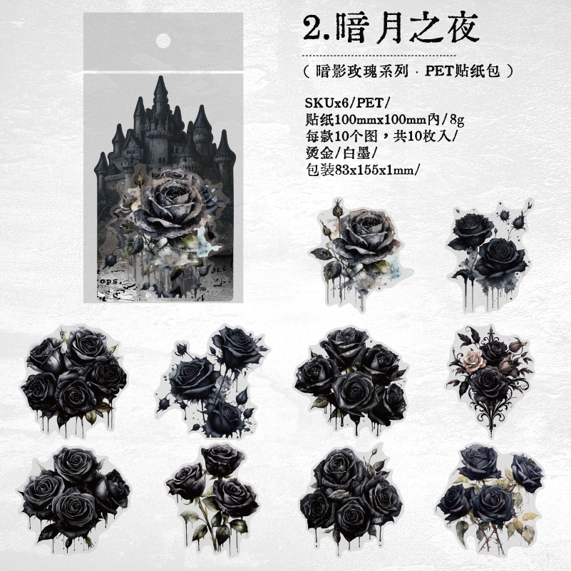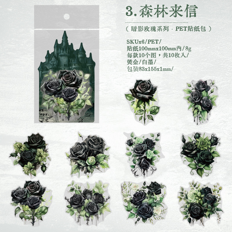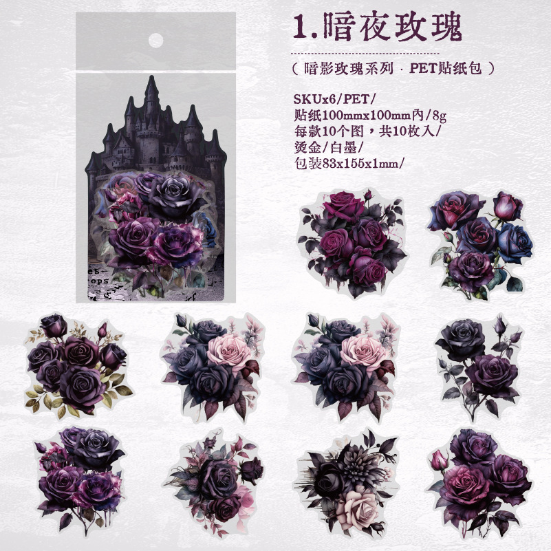 Yanji Shadow Rose 시리즈 PET 스티커 팩 복고풍 핸드북 장식 재료 6가지 옵션으로 10개 포함스토어 가기