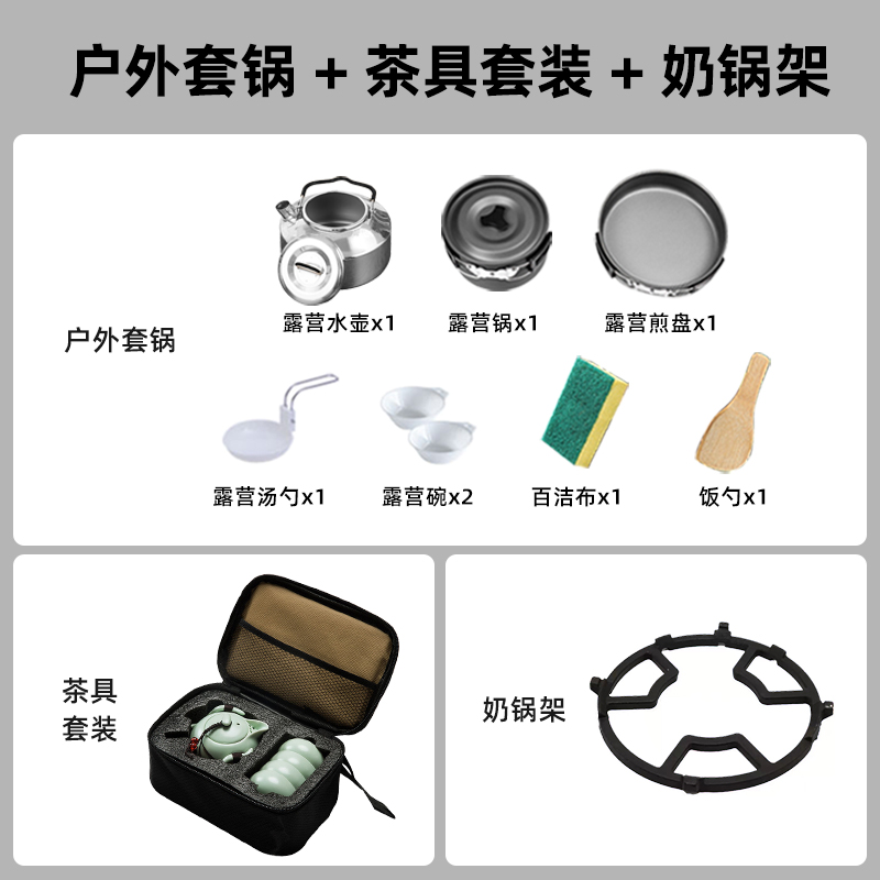 • [스토브 미포함] 야외용 냄비세트 + 티세트 + 우유포트홀더