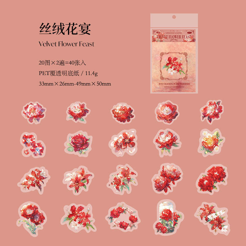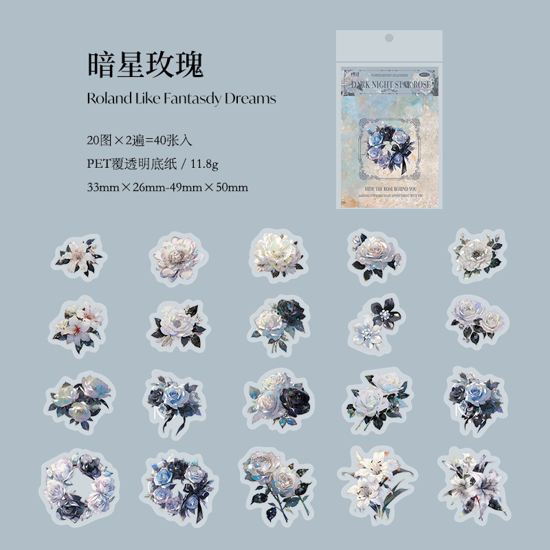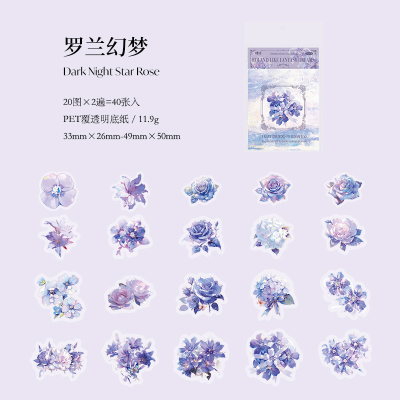 설탕시 꽃 판타지 일러스트 시리즈 PET 스티커 팩 핸드북 장식 베이스 콜라주 소재 8종