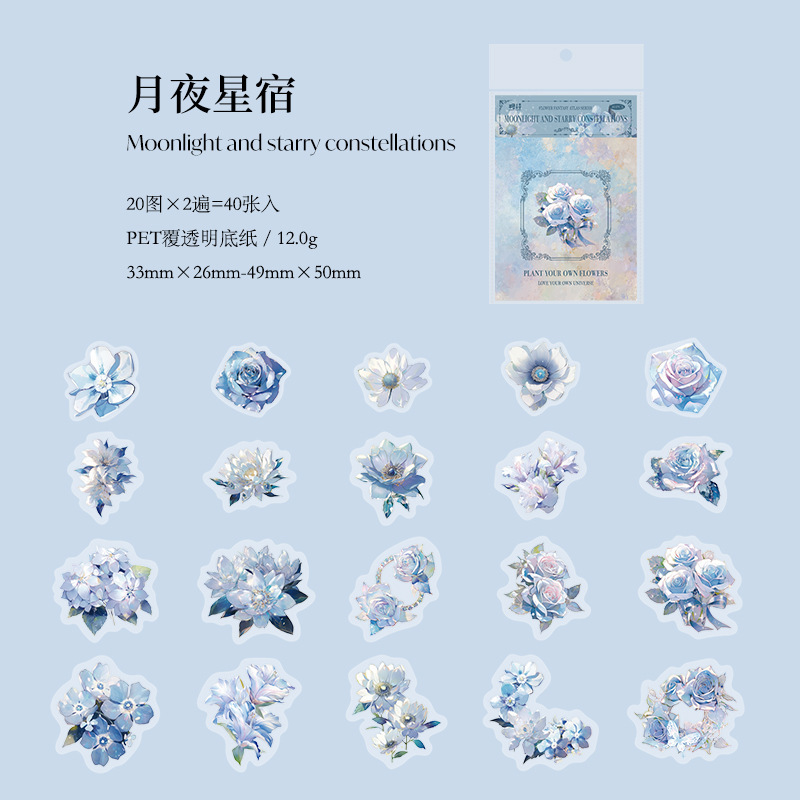 설탕시 꽃 판타지 일러스트 시리즈 PET 스티커 팩 핸드북 장식 베이스 콜라주 소재 8종스토어 가기