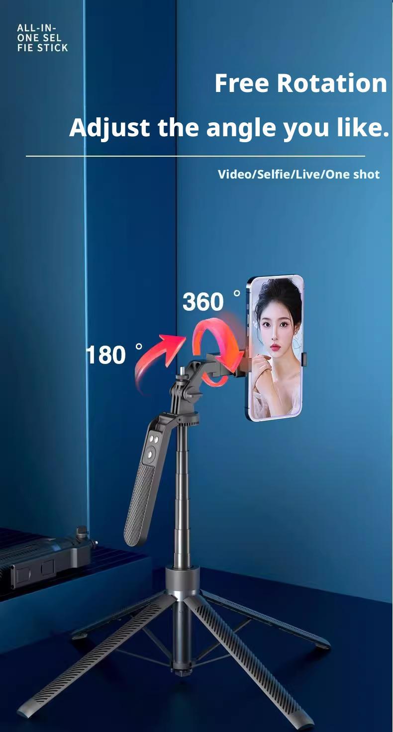 A14 알루미늄 합금 휴대폰 블루투스 셀카봉 원클릭 팝업 4피트 스탠드 360 ° 회전식 PTZ 라이브 스트리밍 스탠드