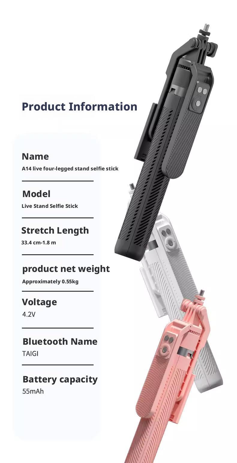 A14 알루미늄 합금 휴대폰 블루투스 셀카봉 원클릭 팝업 4피트 스탠드 360 ° 회전식 PTZ 라이브 스트리밍 스탠드스토어 가기