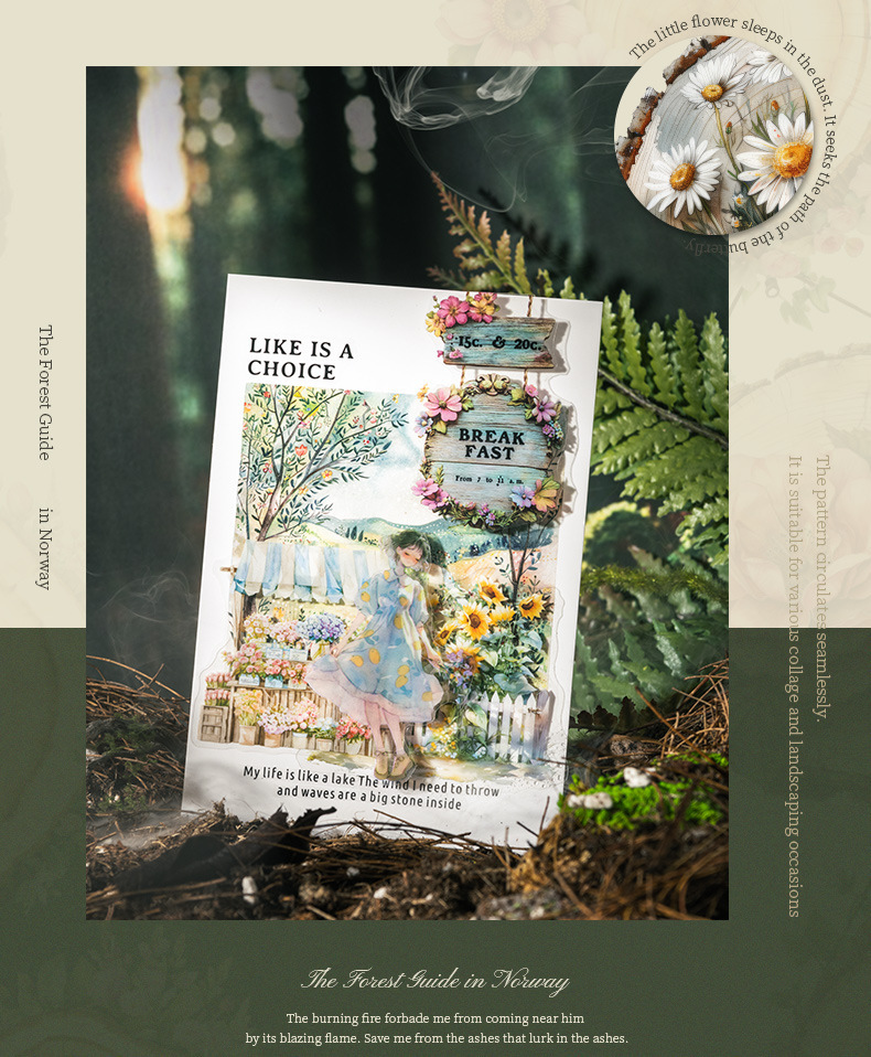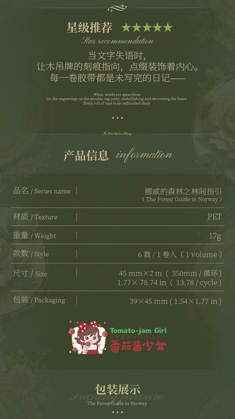 토마토 소스 조경 테이프 노르웨이의 숲 안내 창의적인 패턴 어린이 핸드북 장면 콜라주