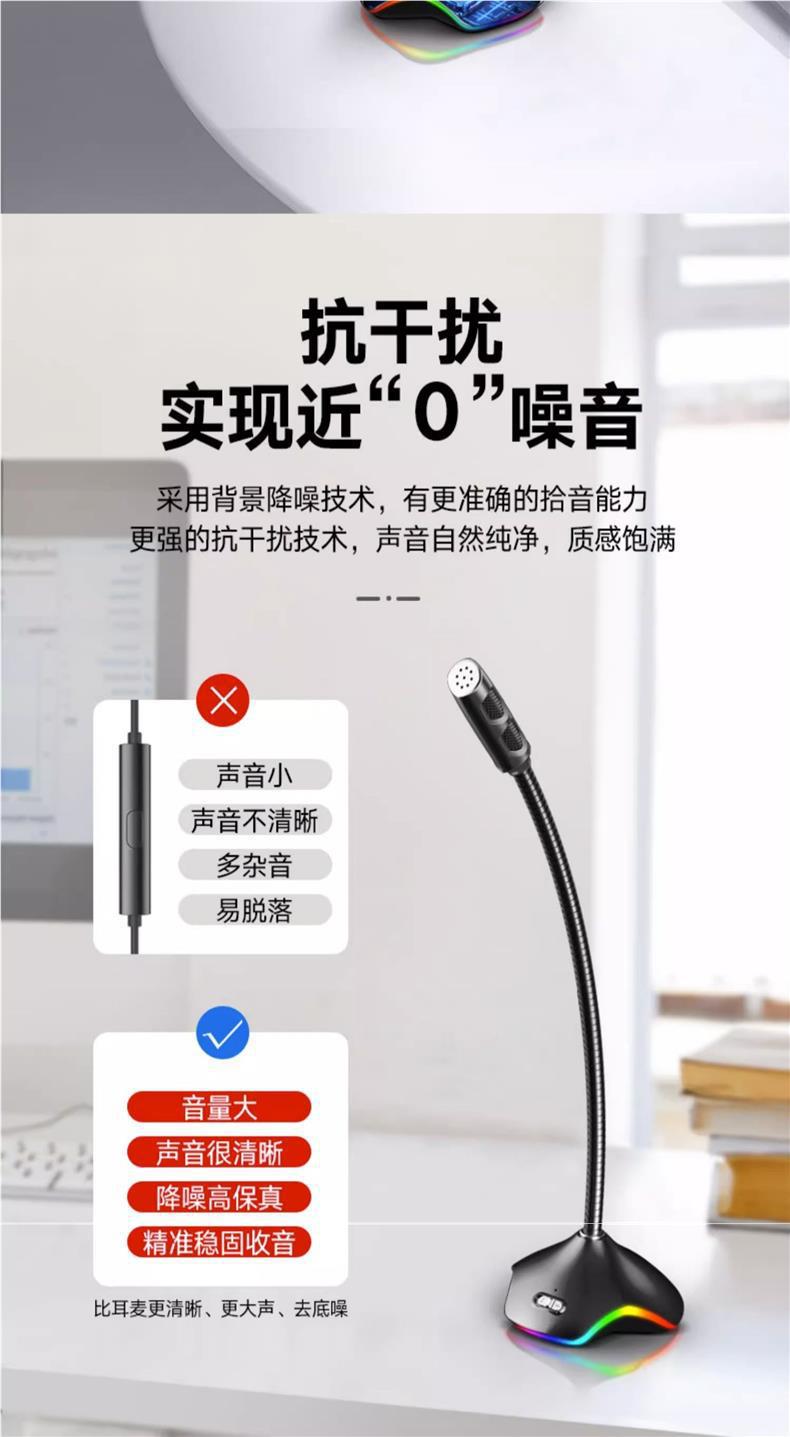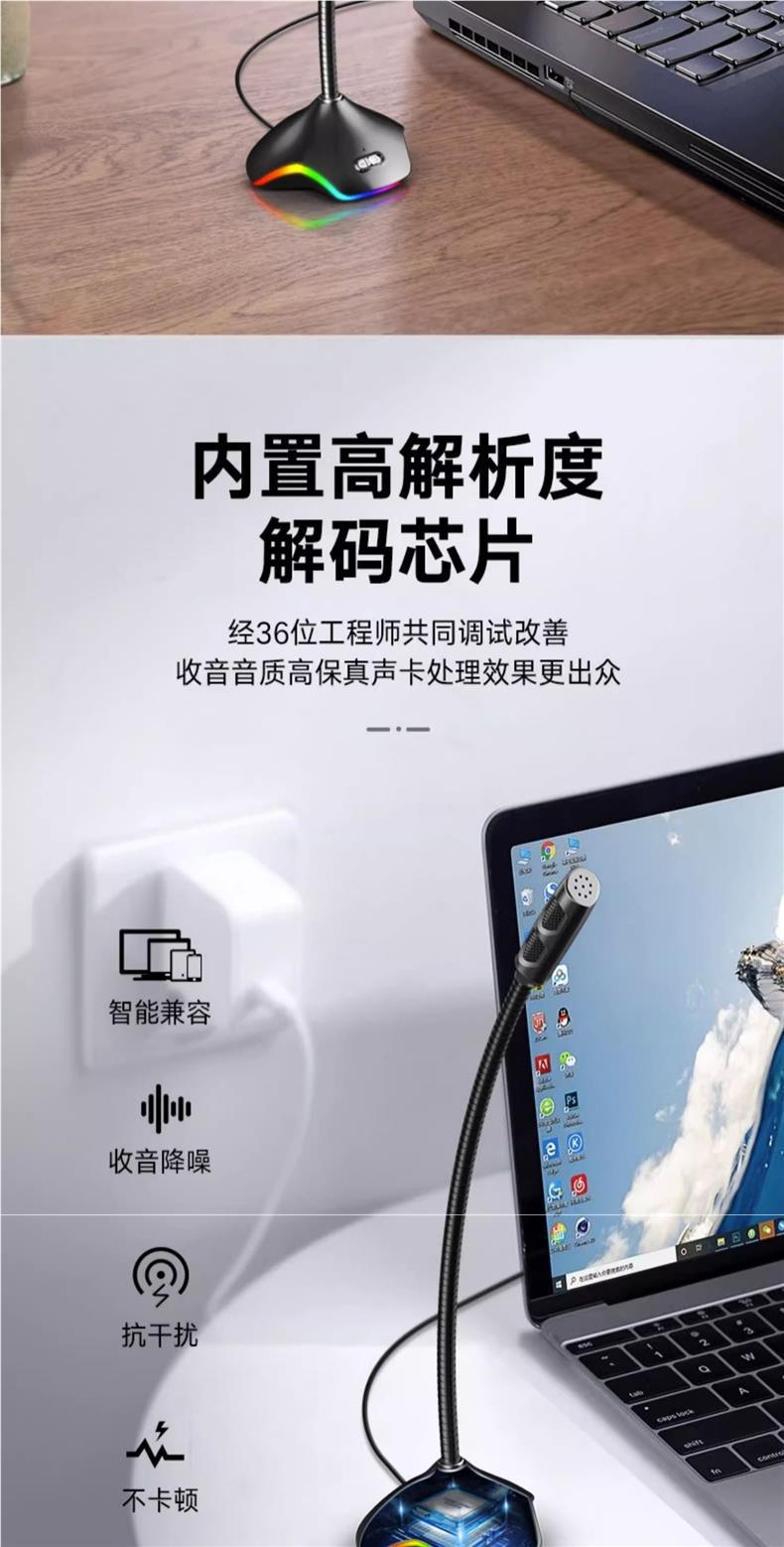 마이크 마이크 오디오 통합 컴퓨터 데스크탑 라이브 게임 음성 회의 콘덴서 마이크 앵커 소음 감소 외부스토어 가기