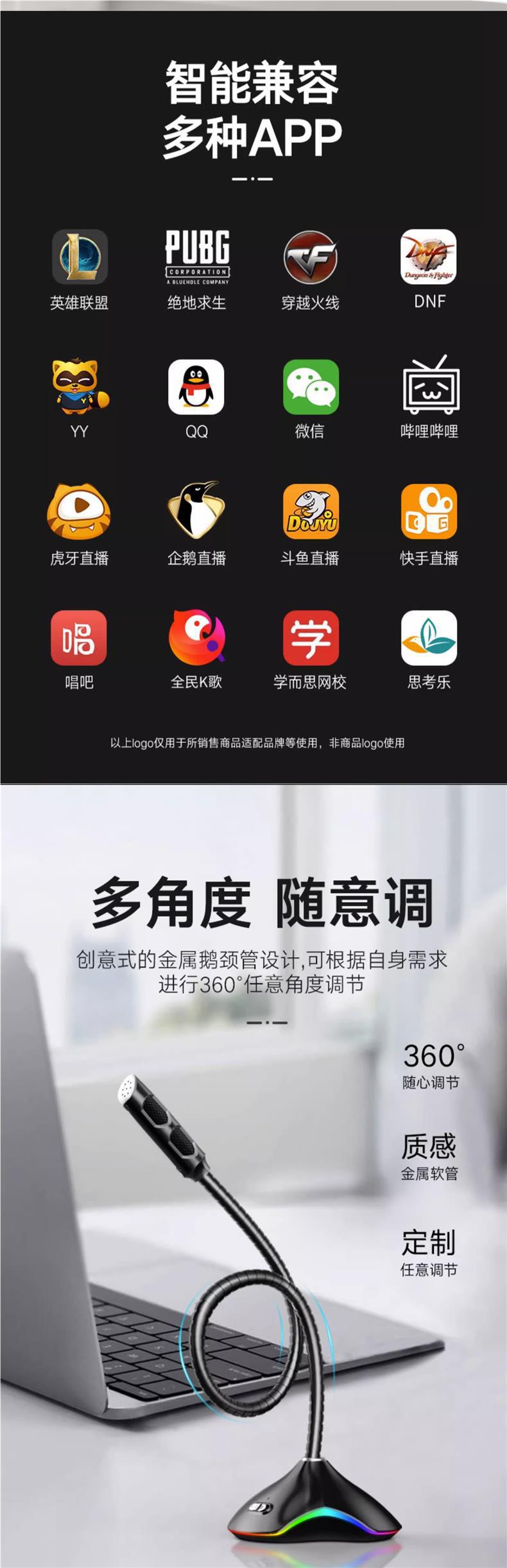 마이크 마이크 오디오 통합 컴퓨터 데스크탑 라이브 게임 음성 회의 콘덴서 마이크 앵커 소음 감소 외부