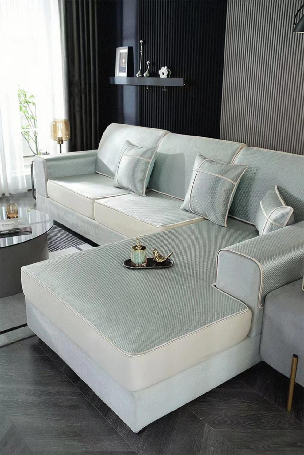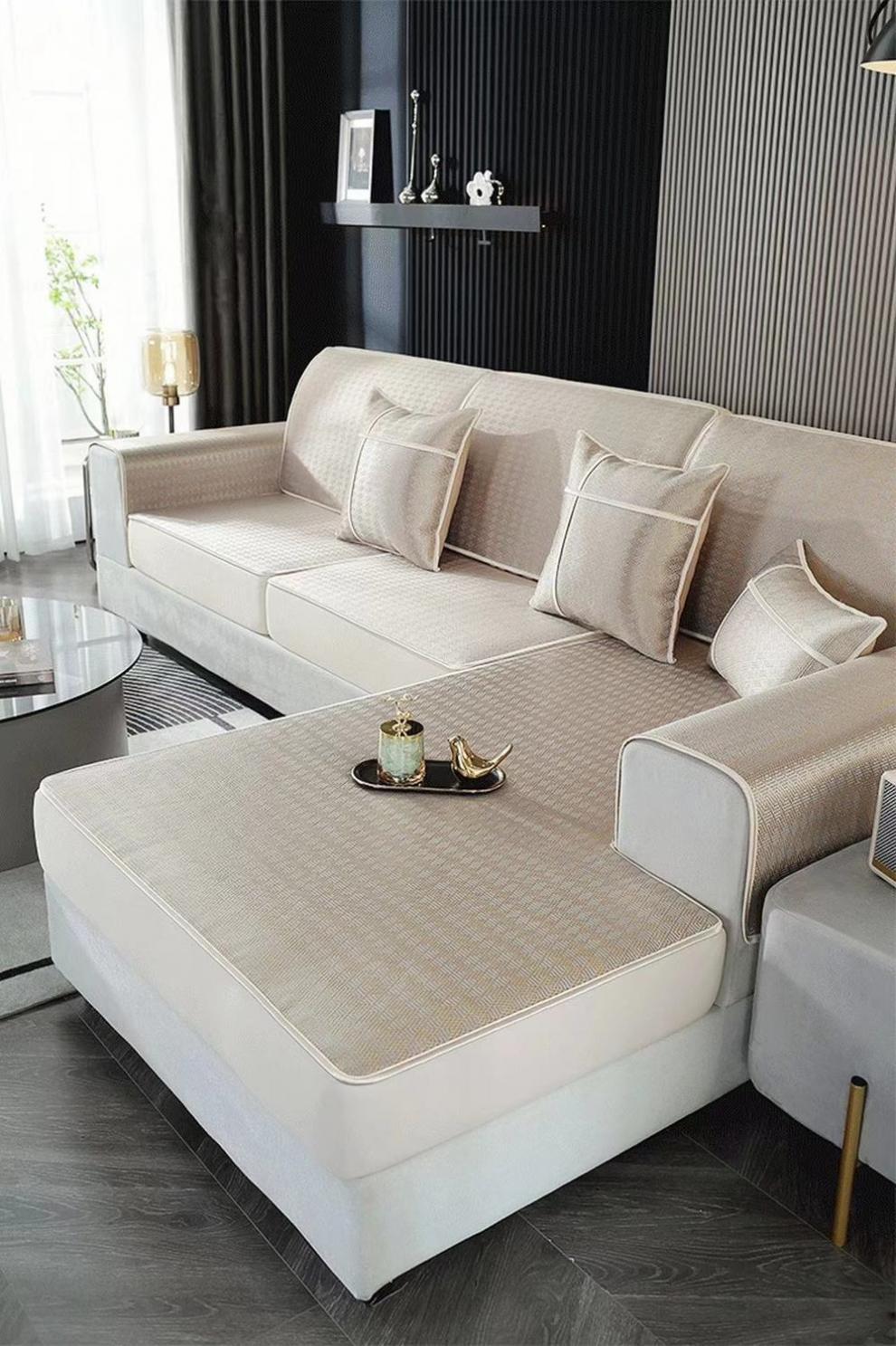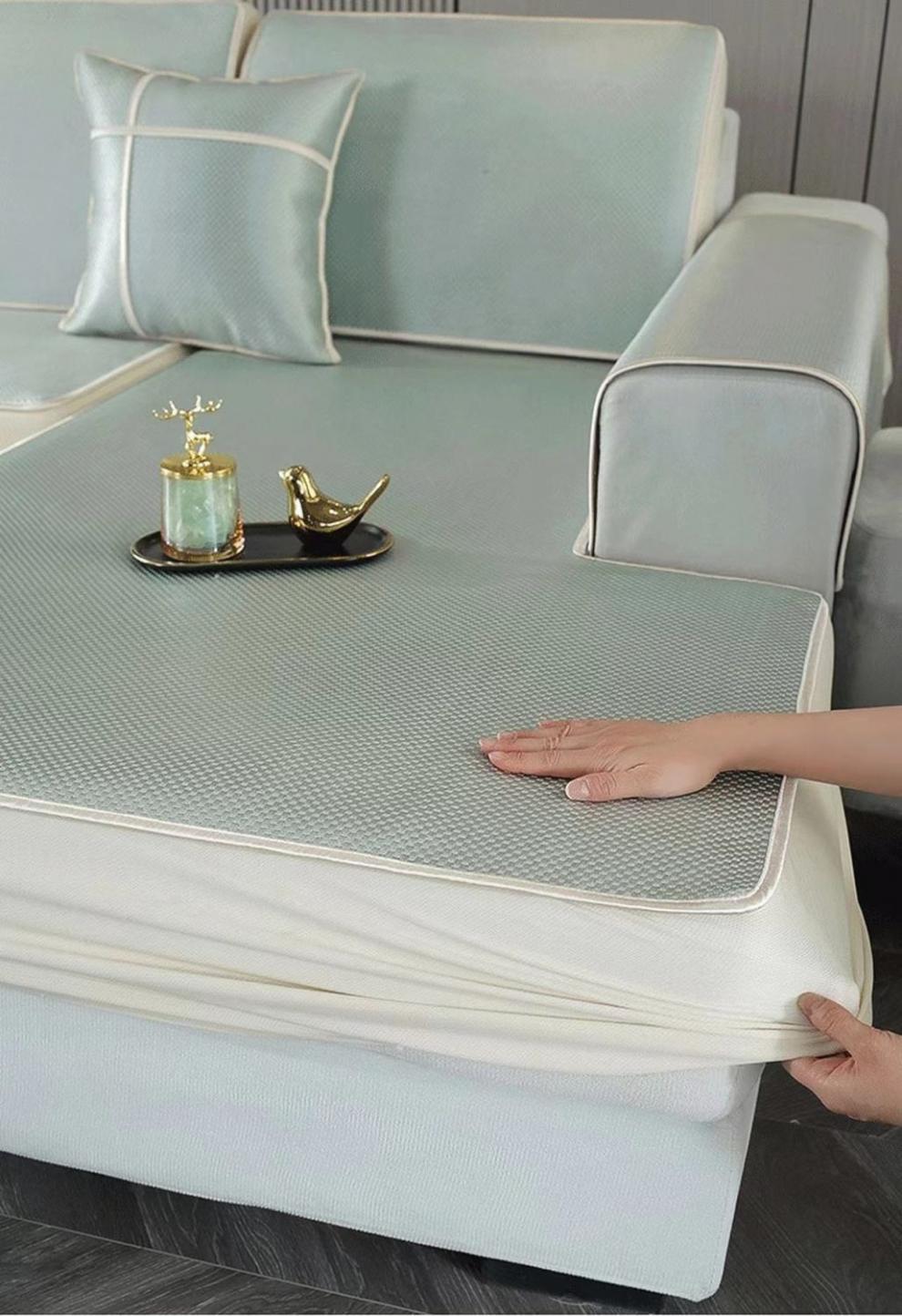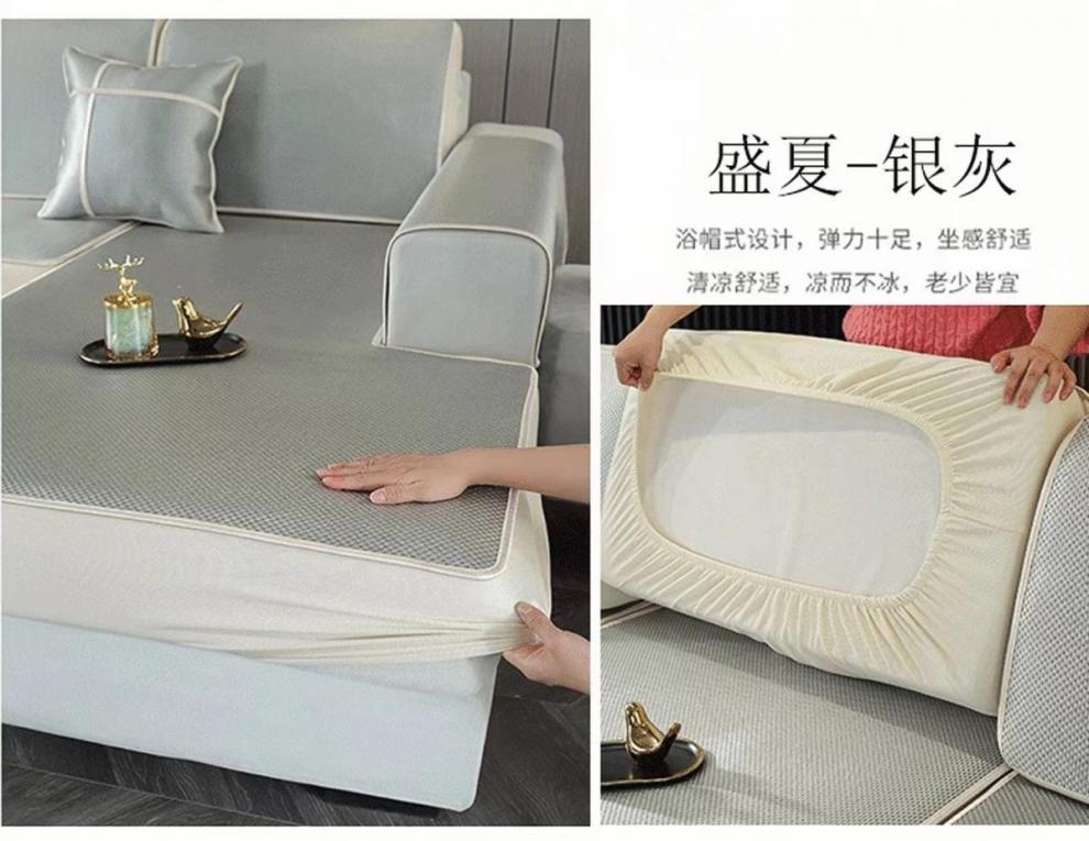 새로운 여름 매트 얼음 등나무 소파 커버 유니버설 모든 항목을 포함하는 얼음 실크 소파 커버 솔리드 컬러 미끄럼 방지 긴 의자스토어 가기