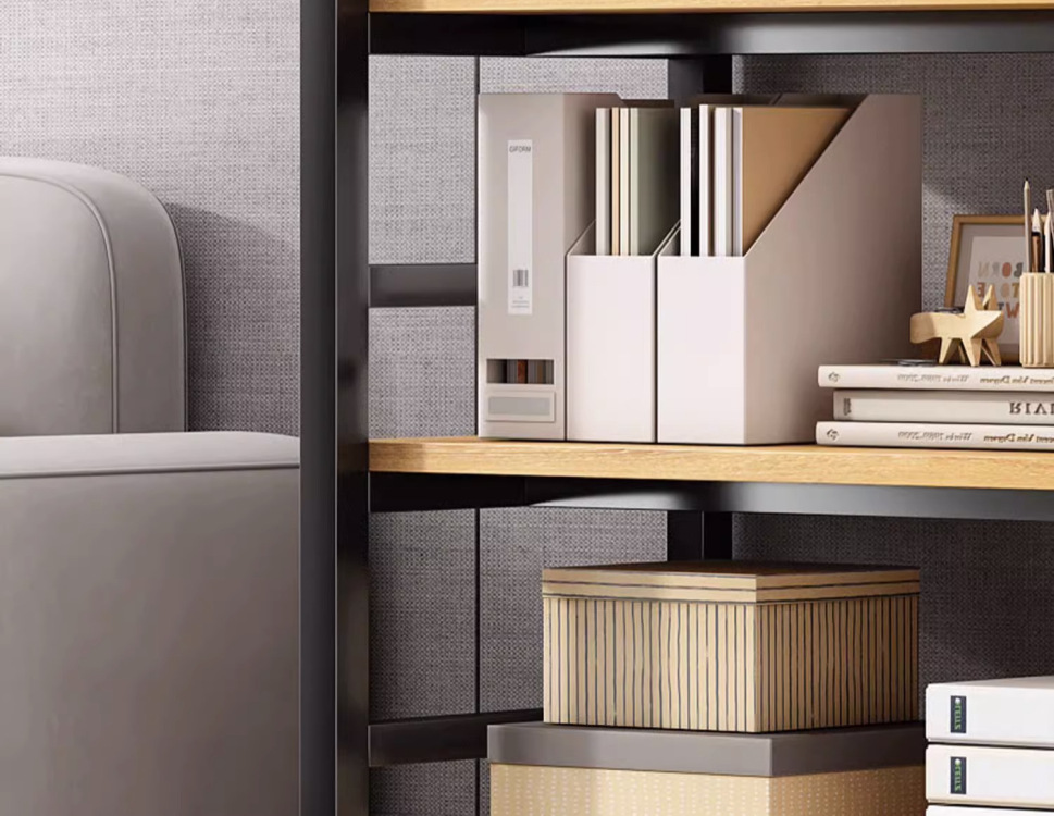 단철 책장 보관 랙 바닥에서 천장까지 가정용 간단한 보관 선반 다층 강철 목재 책장 거실 디스플레이 보관 랙